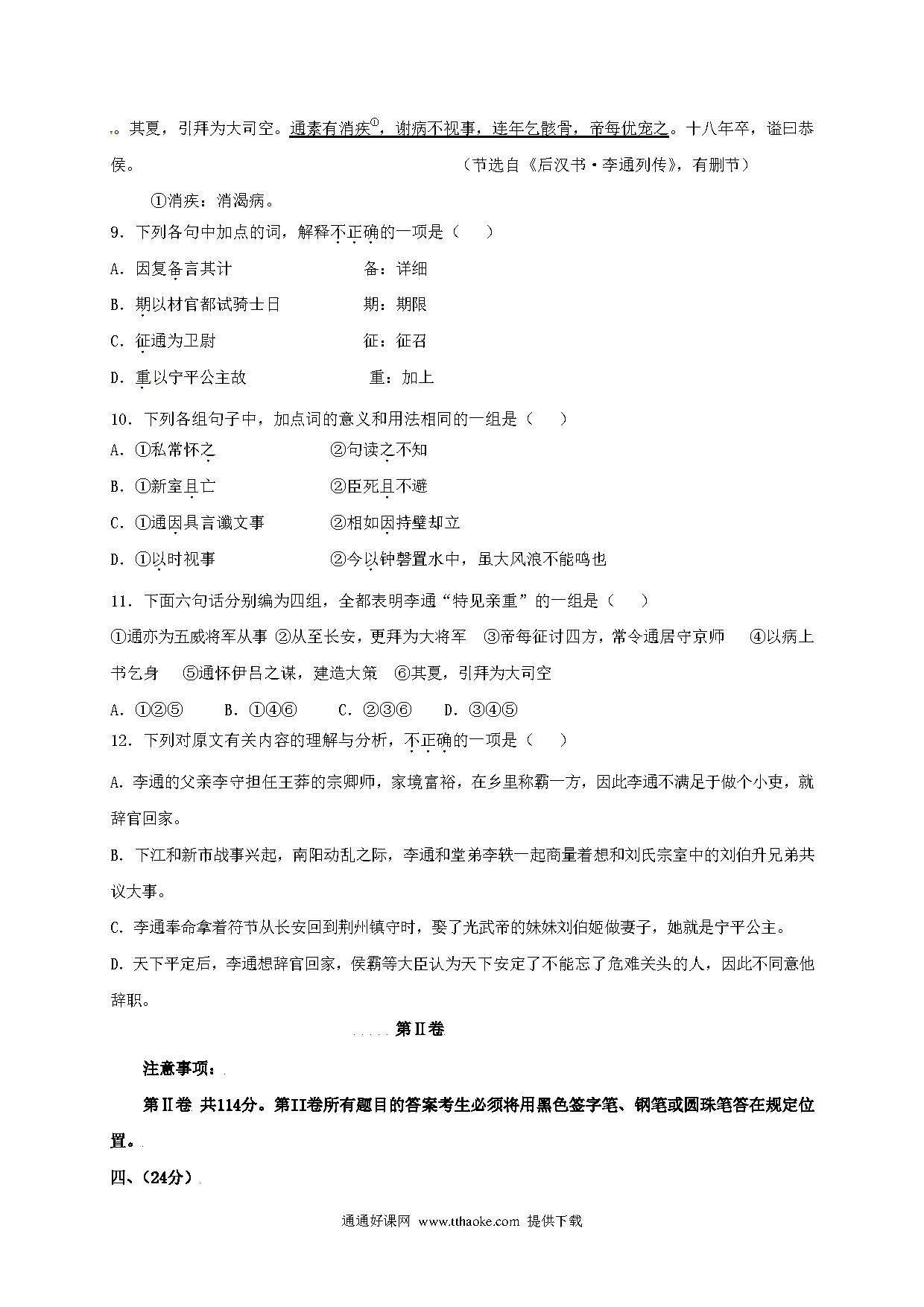 桓台二中2017年1月高三语文上学期期末试卷及答案