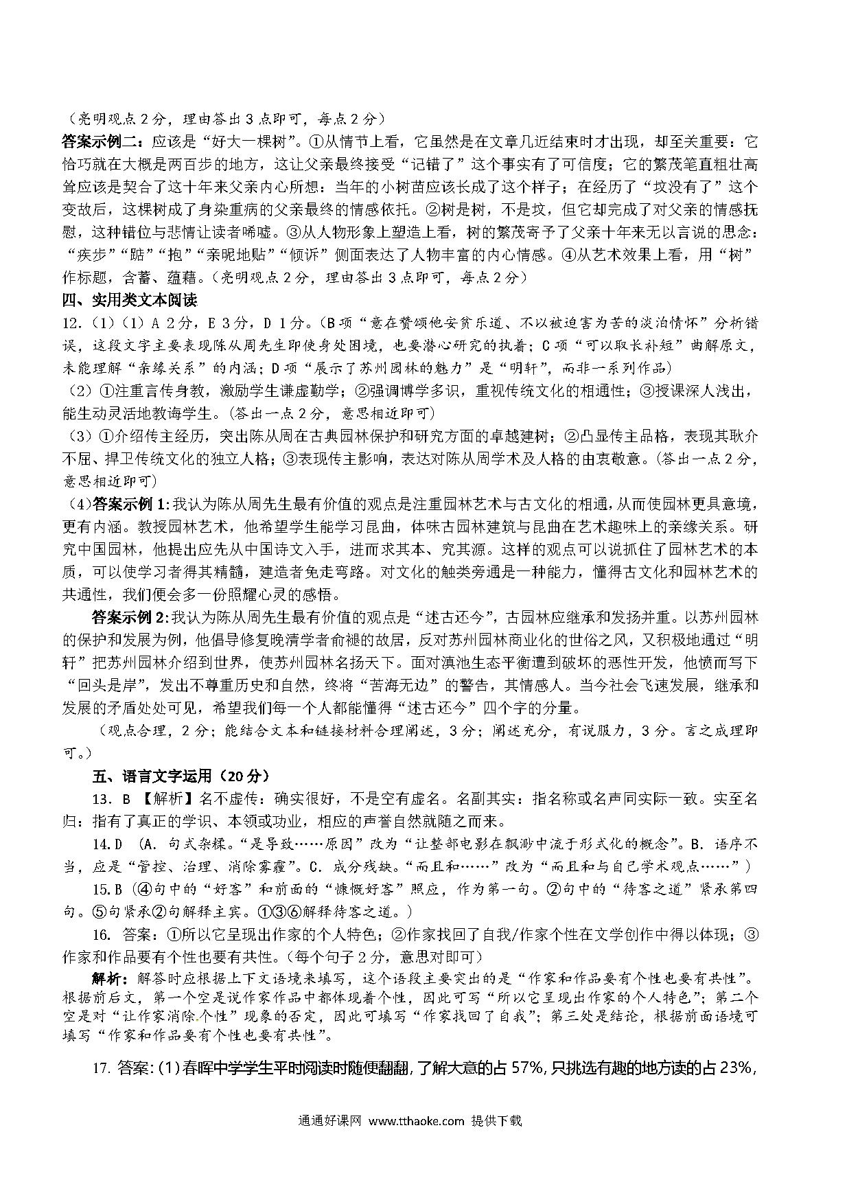 贵阳市2014-2015年高三语文期末试卷及答案