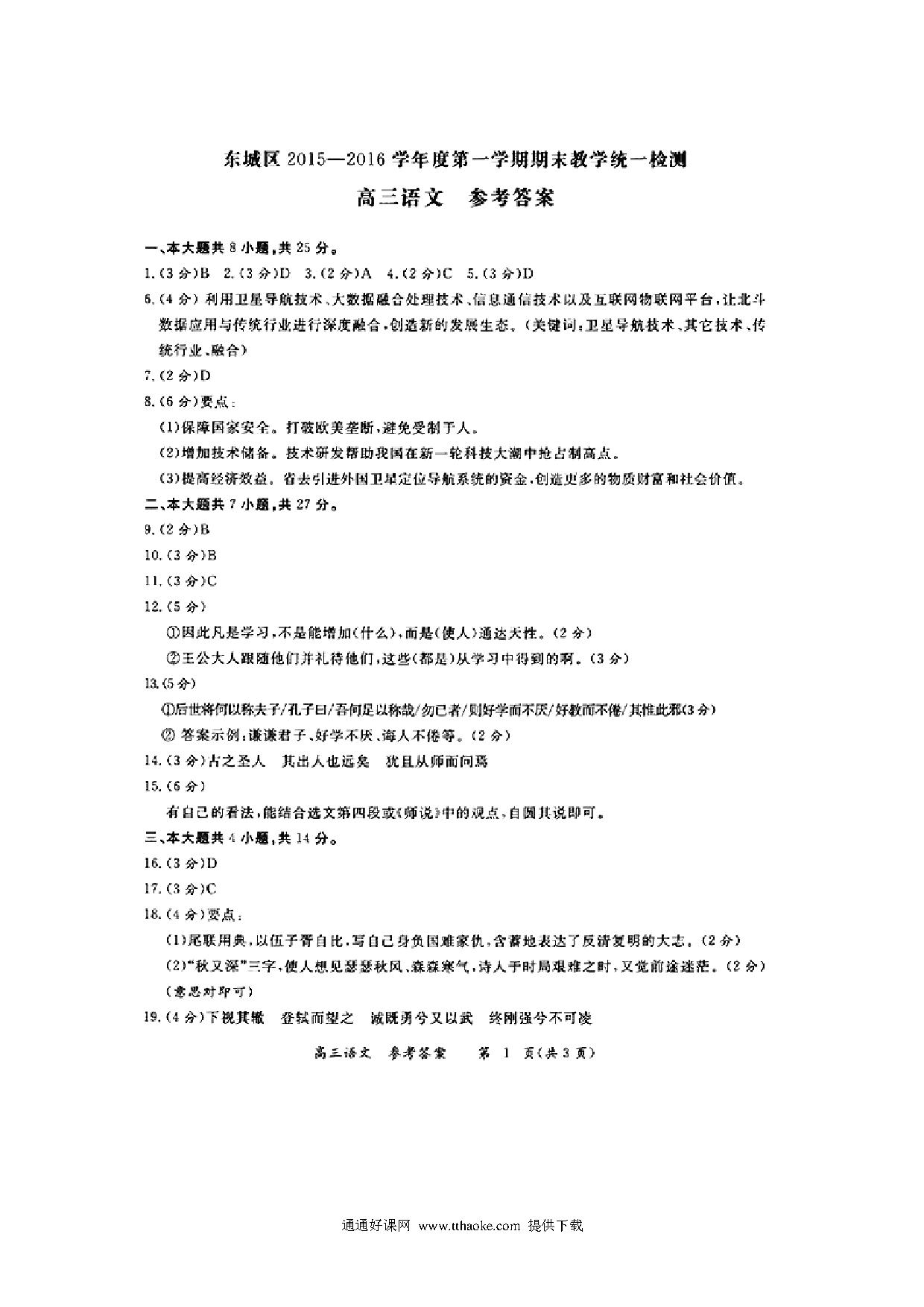 2016东城区高三语文期末试题及答案