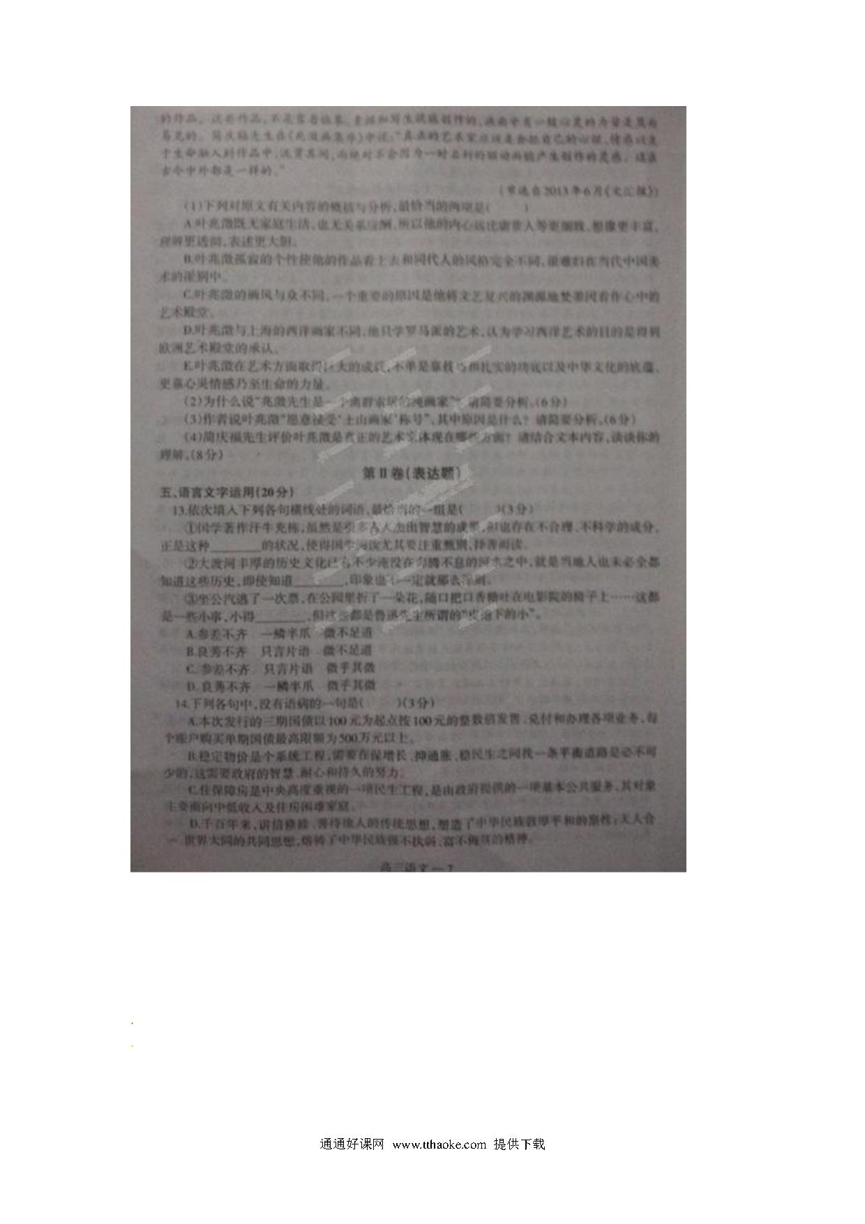赣州市2014—2015学年第二学期高三语文期中试题及答案