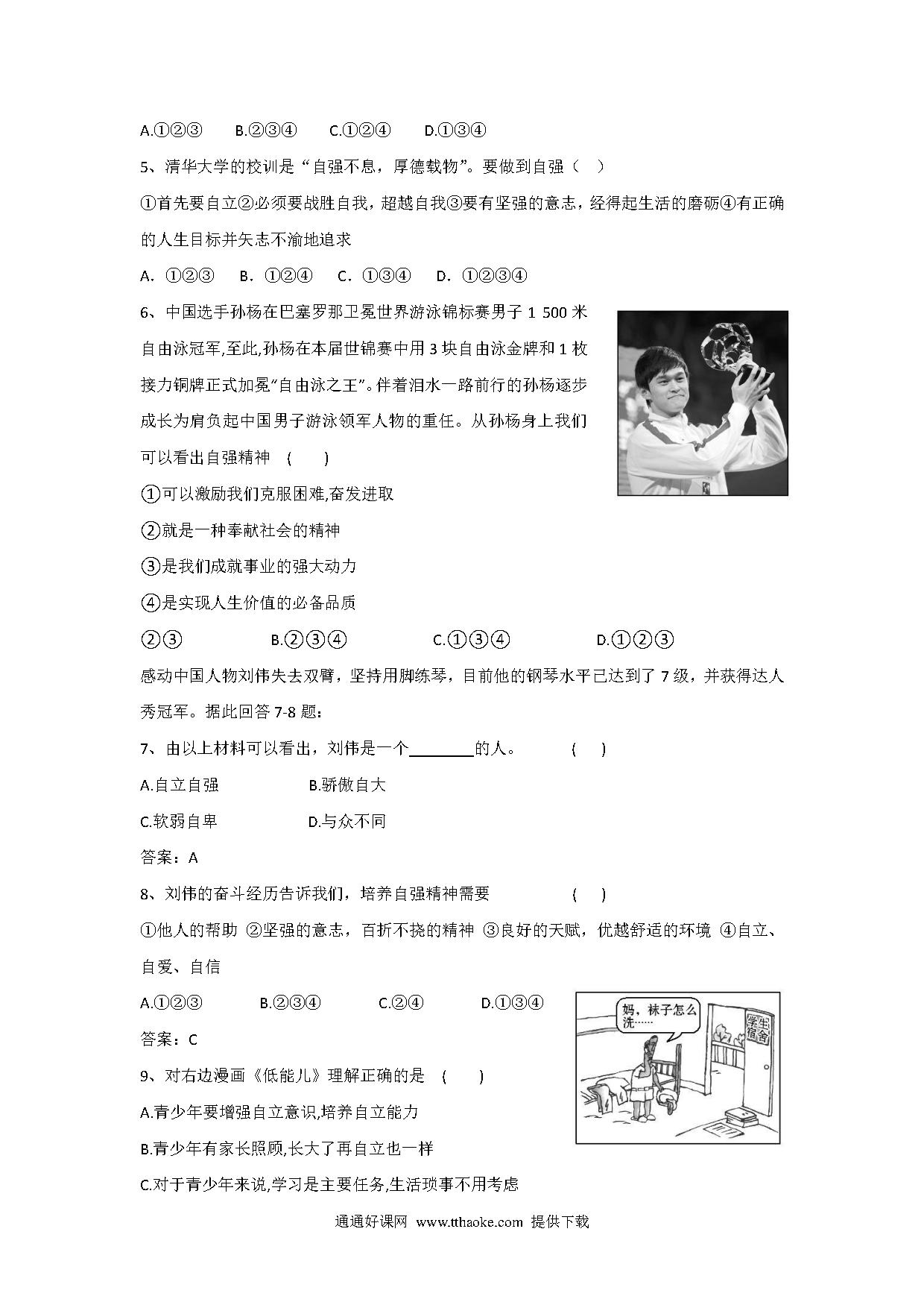 6.2 走自立自强之路练习题及答案