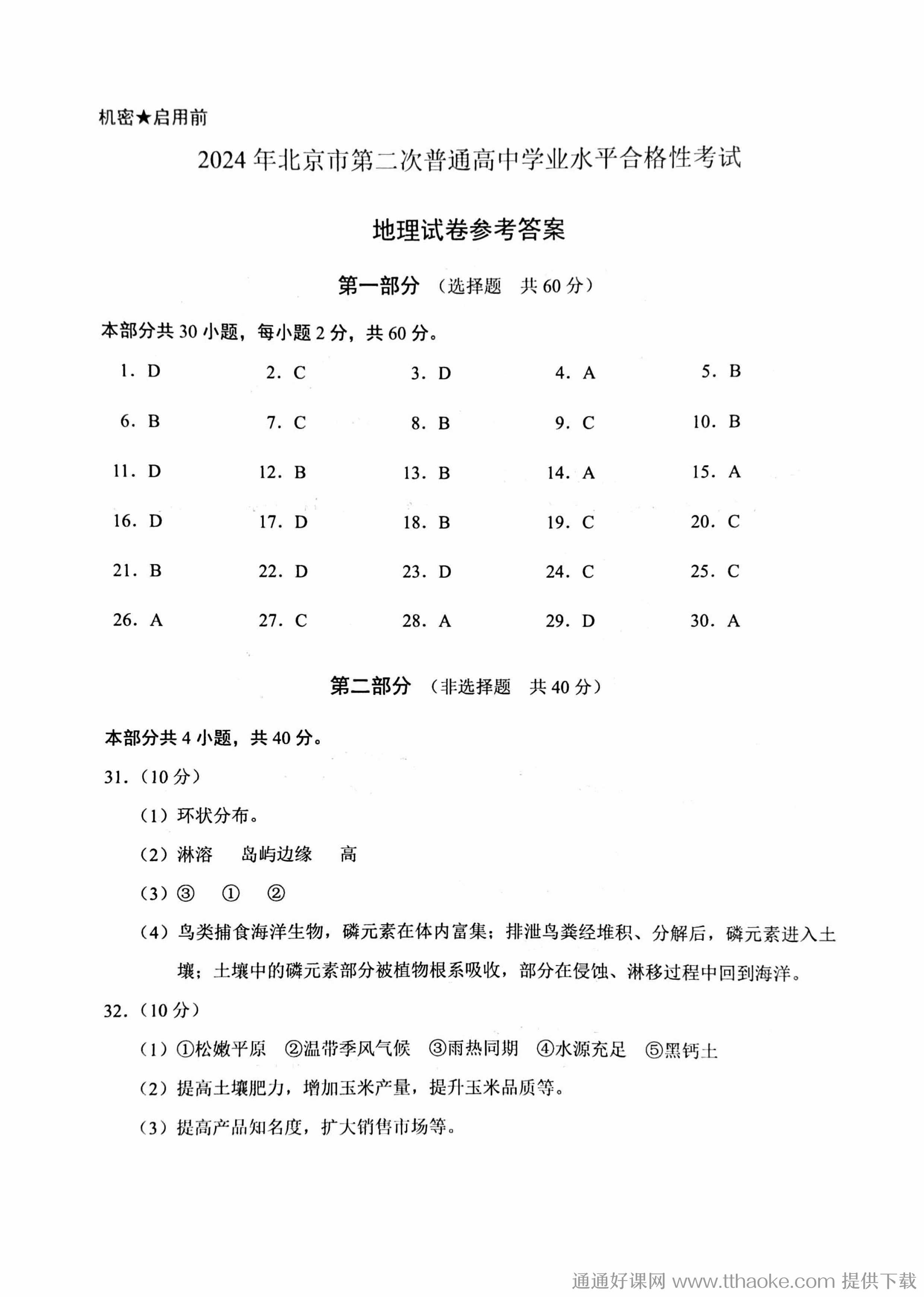 2024年北京市第一次普通高中学业水平合格性考试地理试题及答案