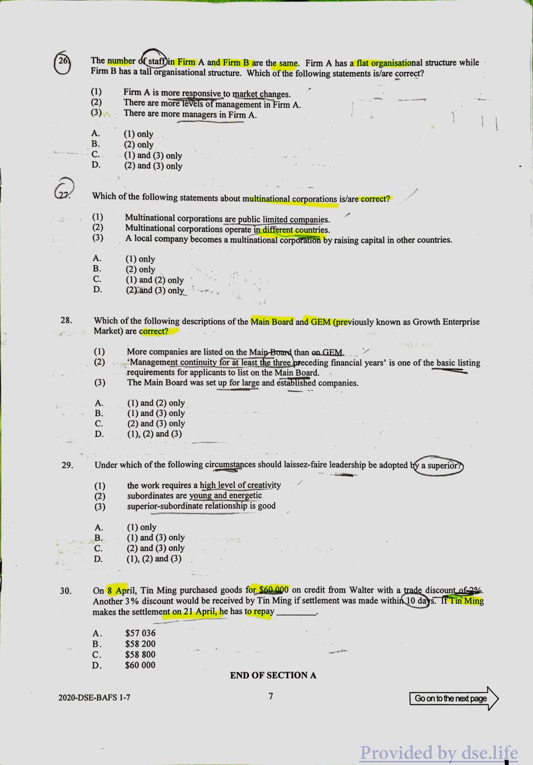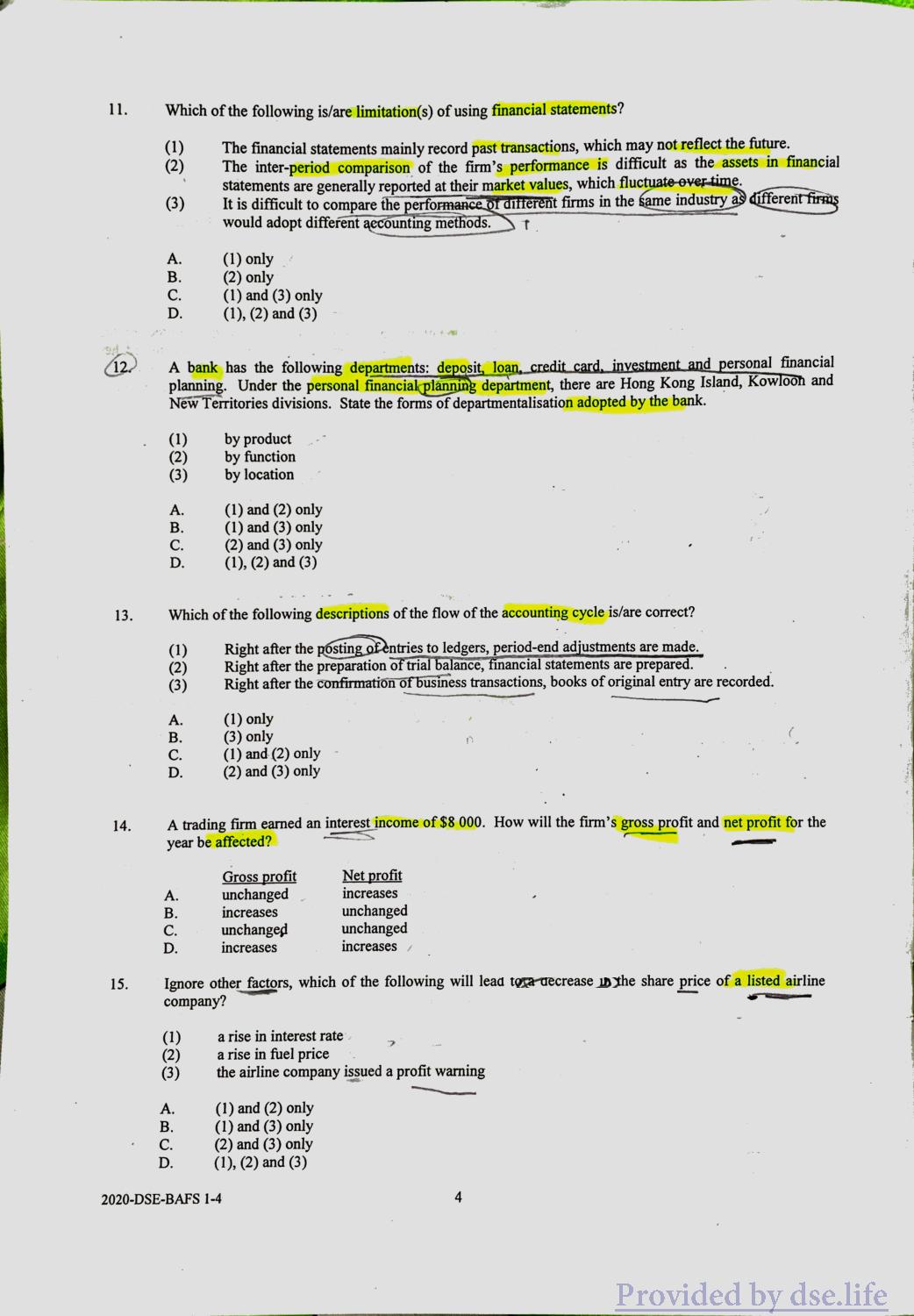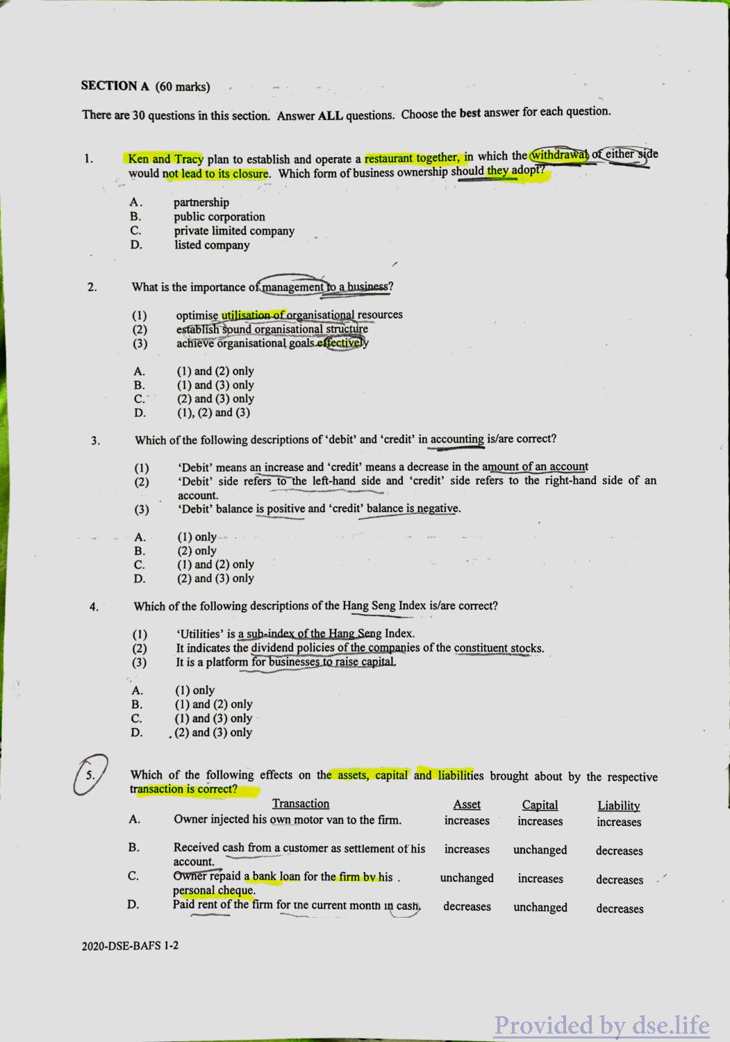 企业、会计与财务概论 DSE(中) Practice Paper