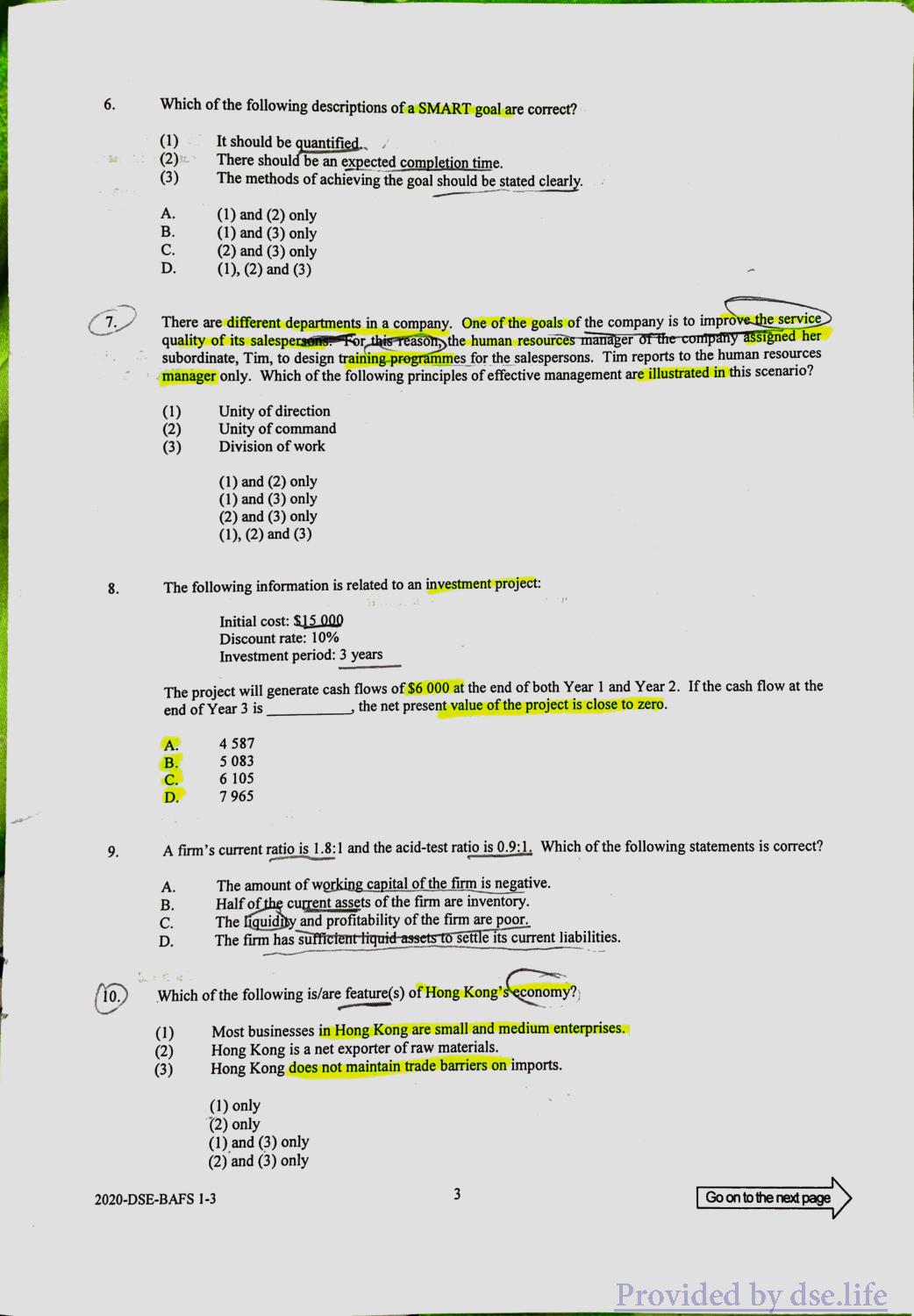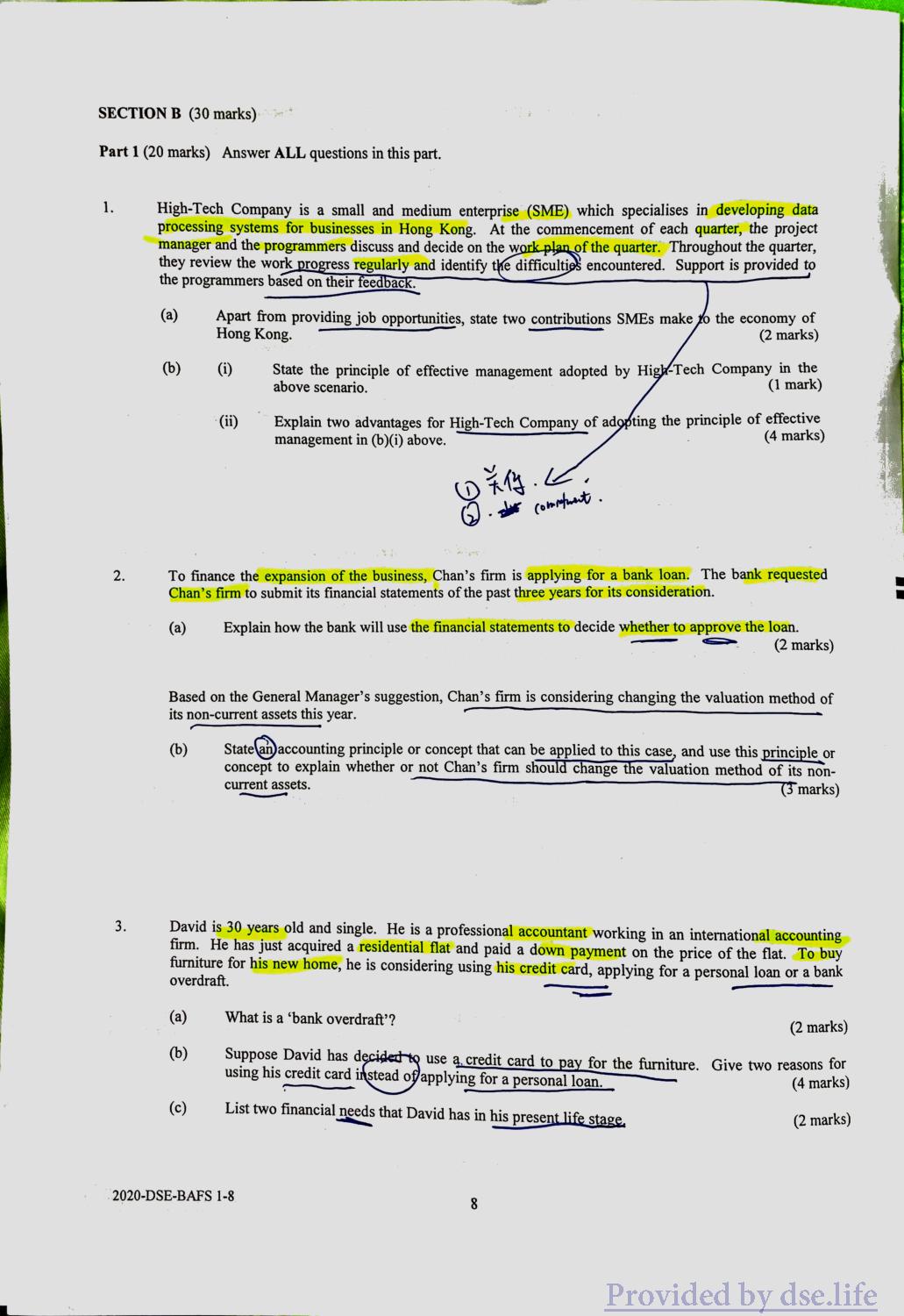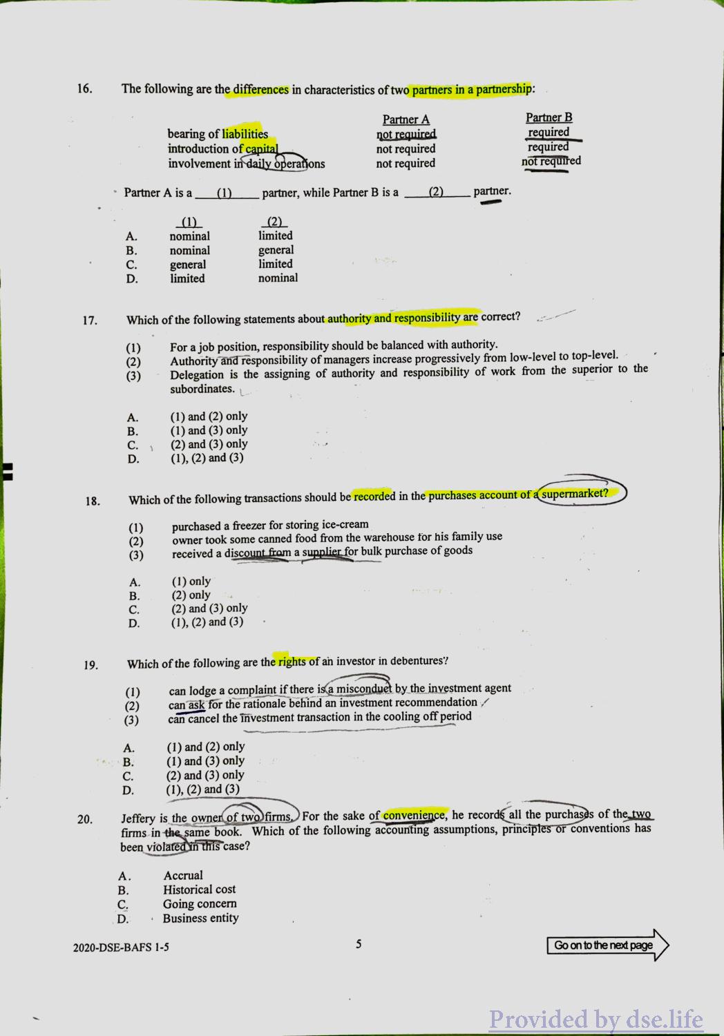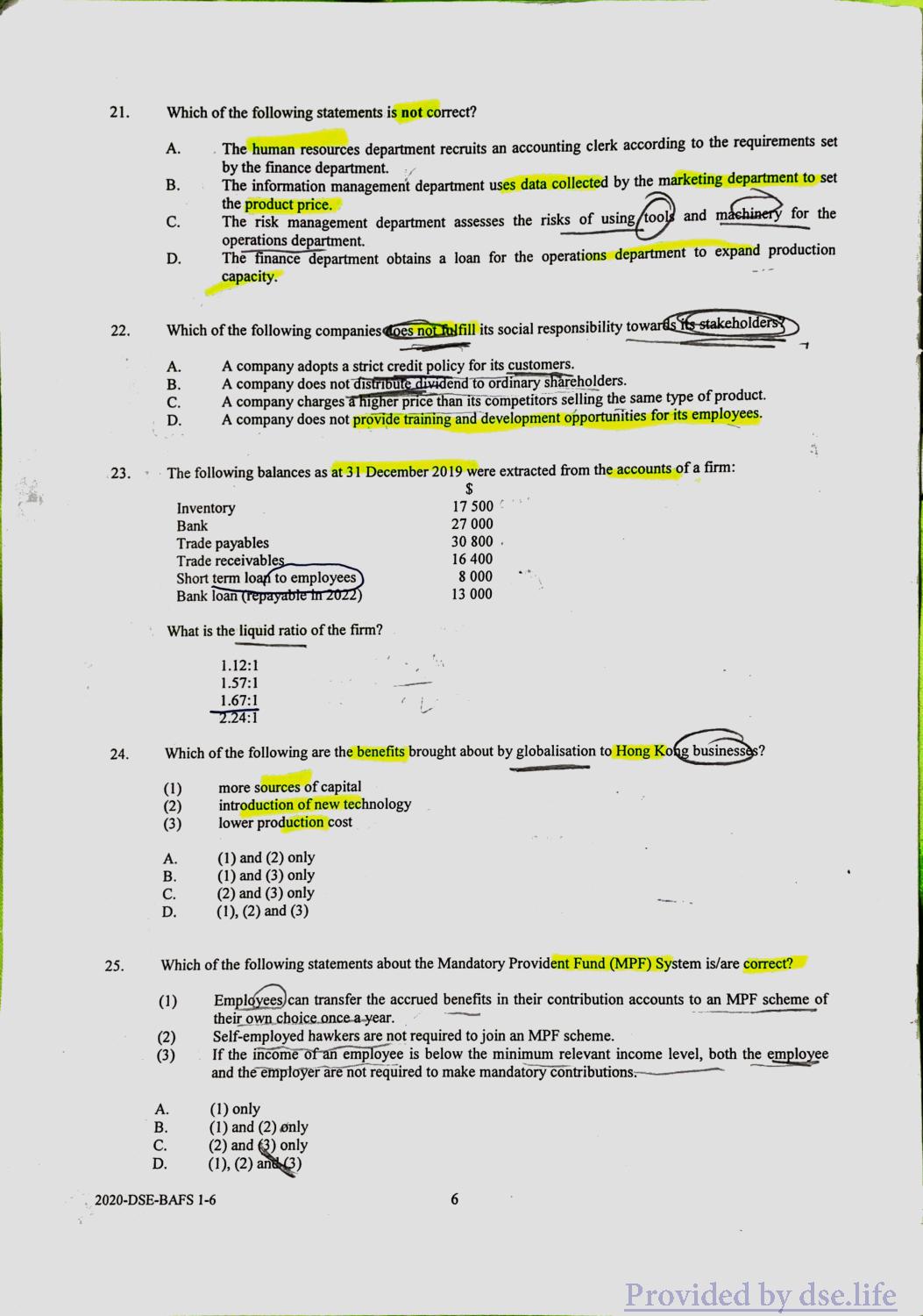 企业、会计与财务概论 DSE(中) Practice Paper