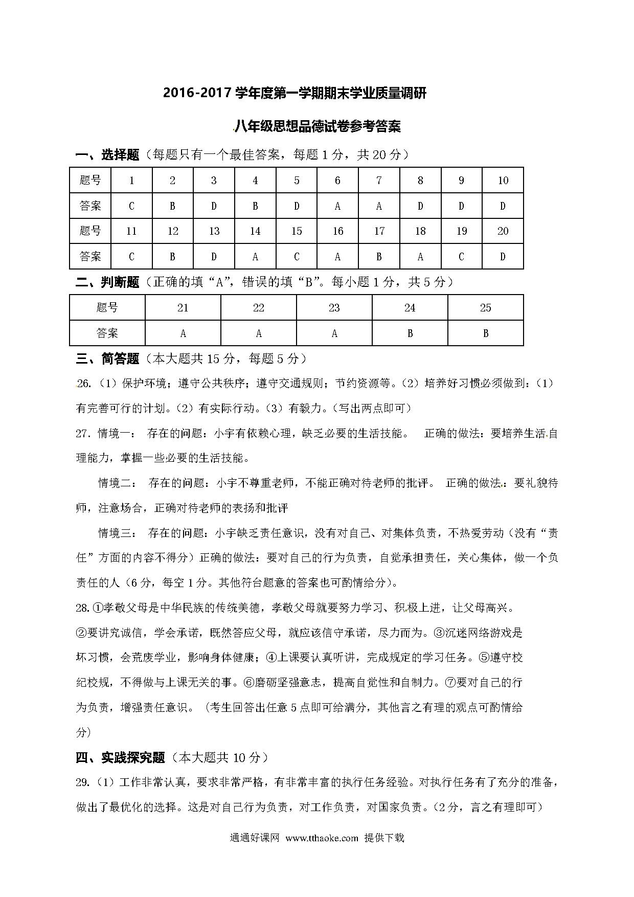 兴化市顾庄学区秋学期八年级政治期末试卷及答案