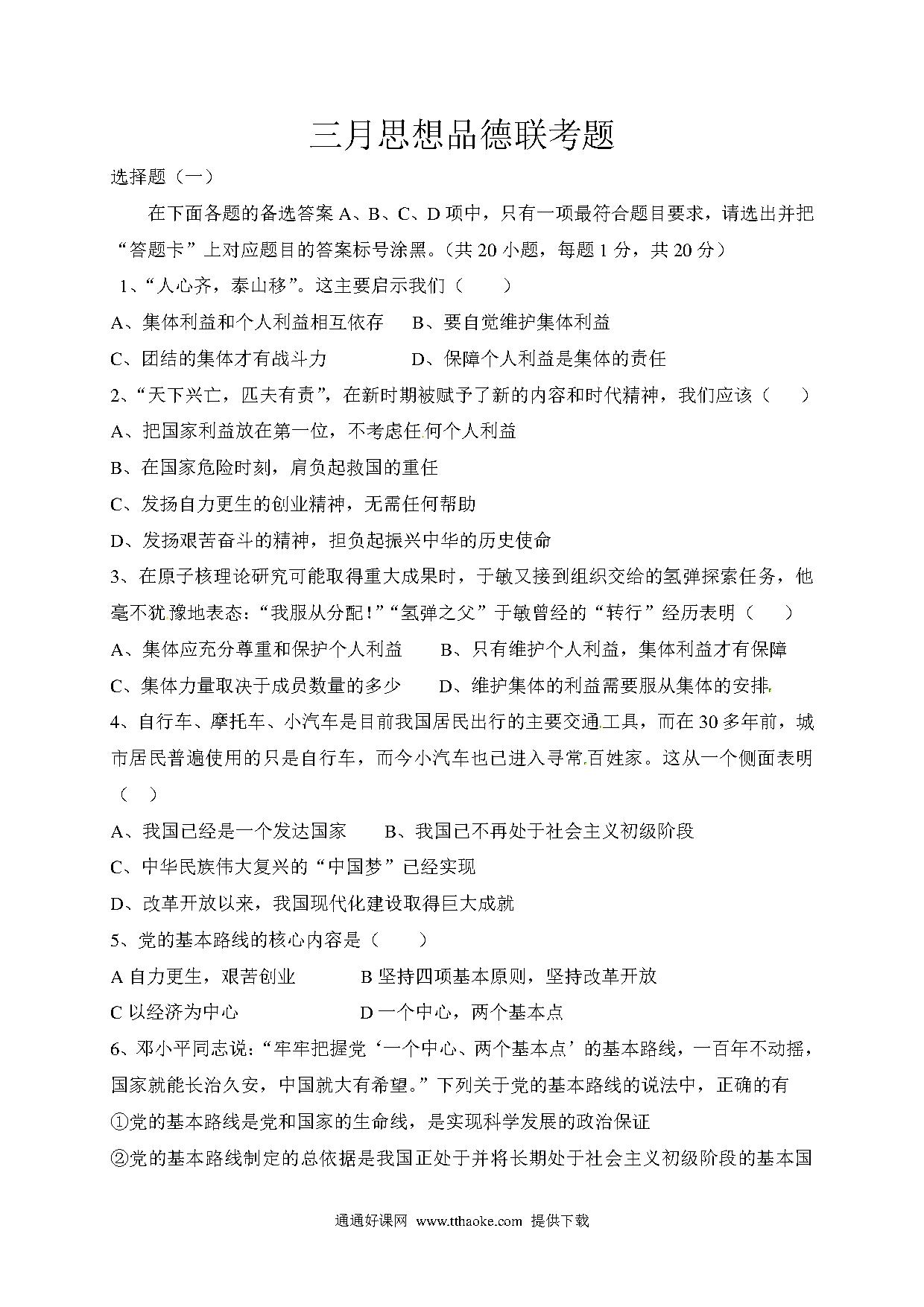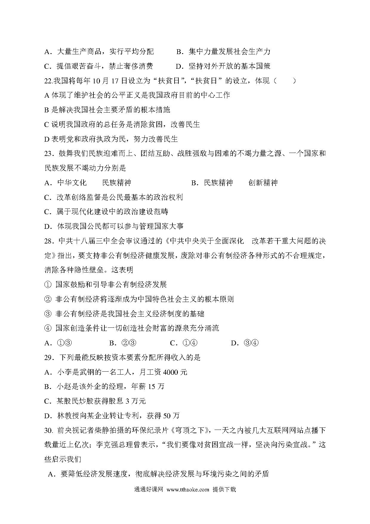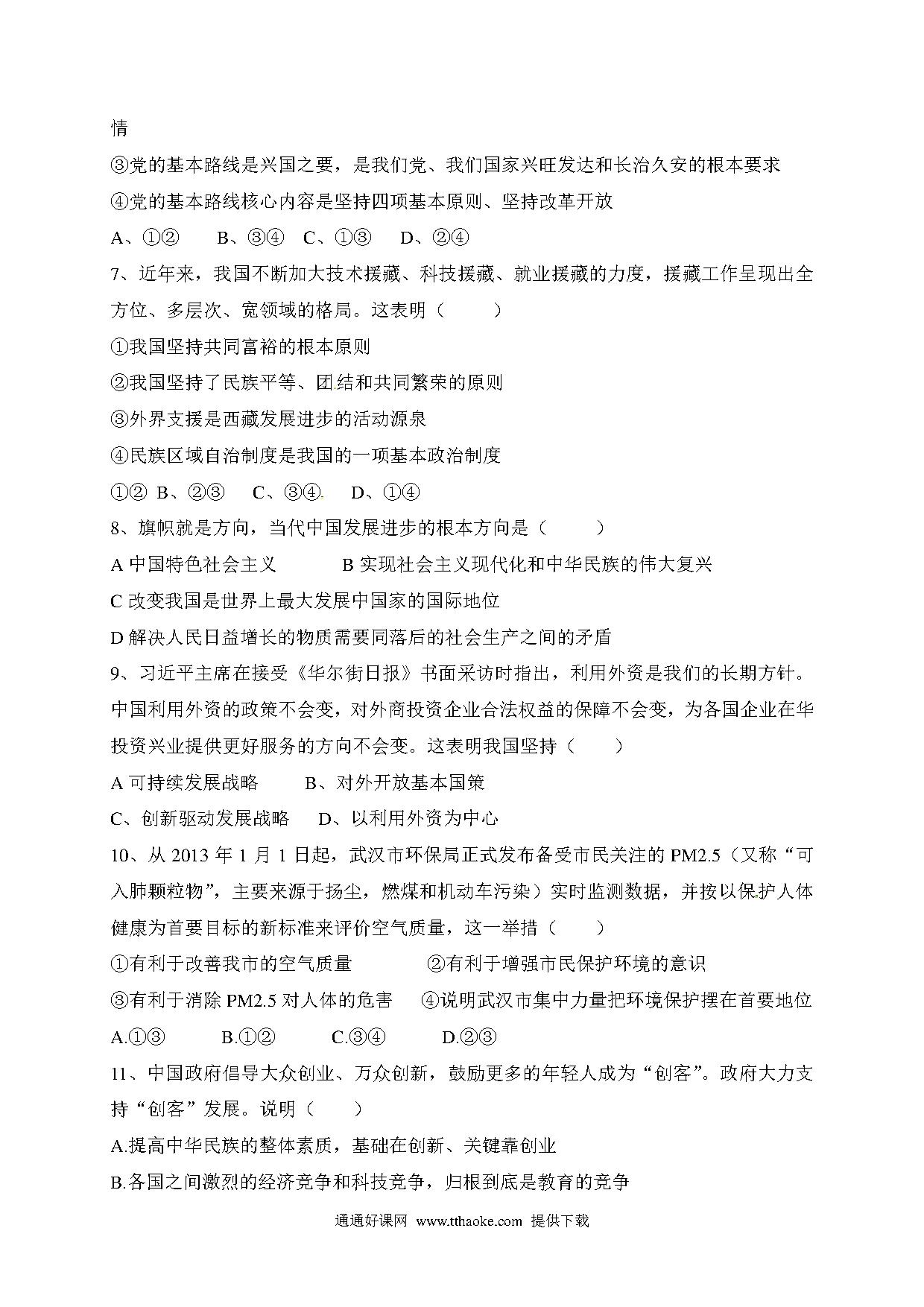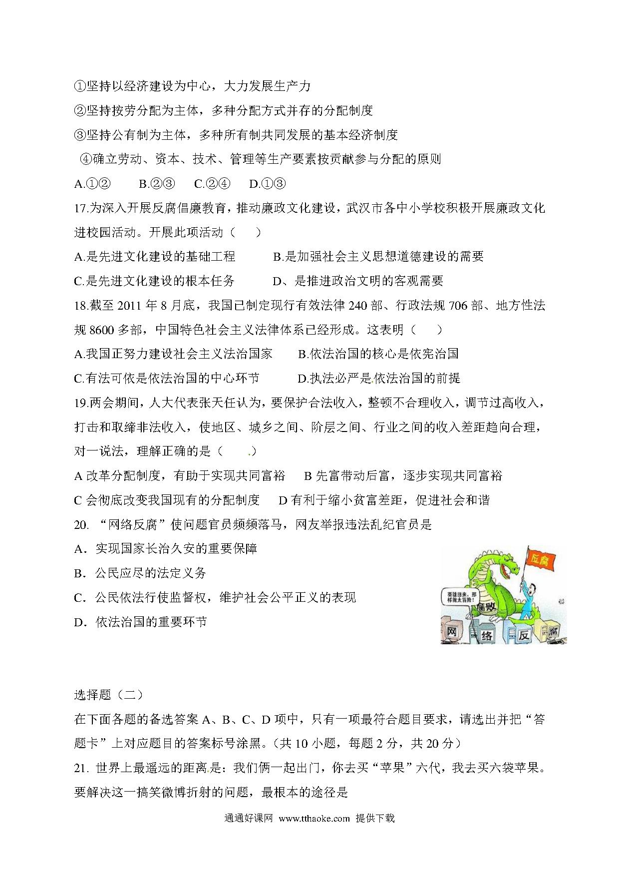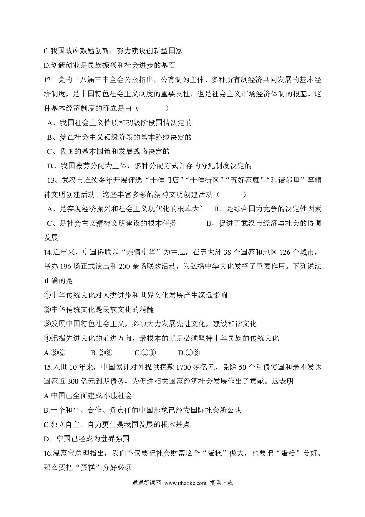 武汉市黄陂区3月九年级政治试卷及答案.pdf