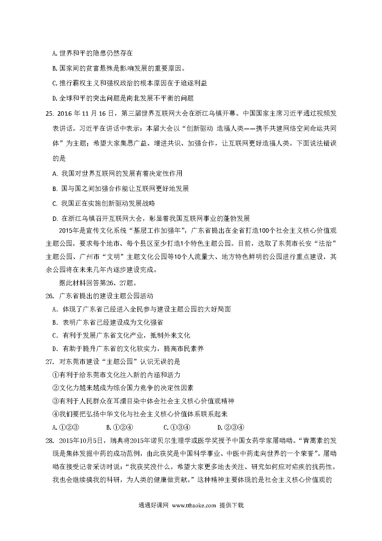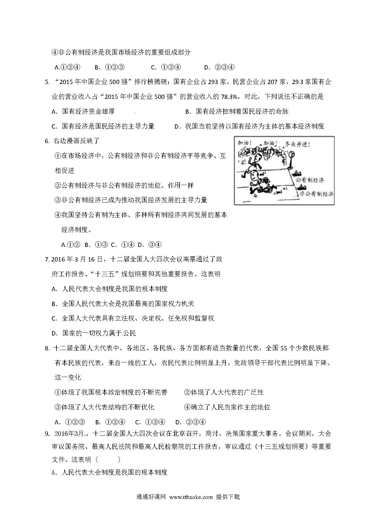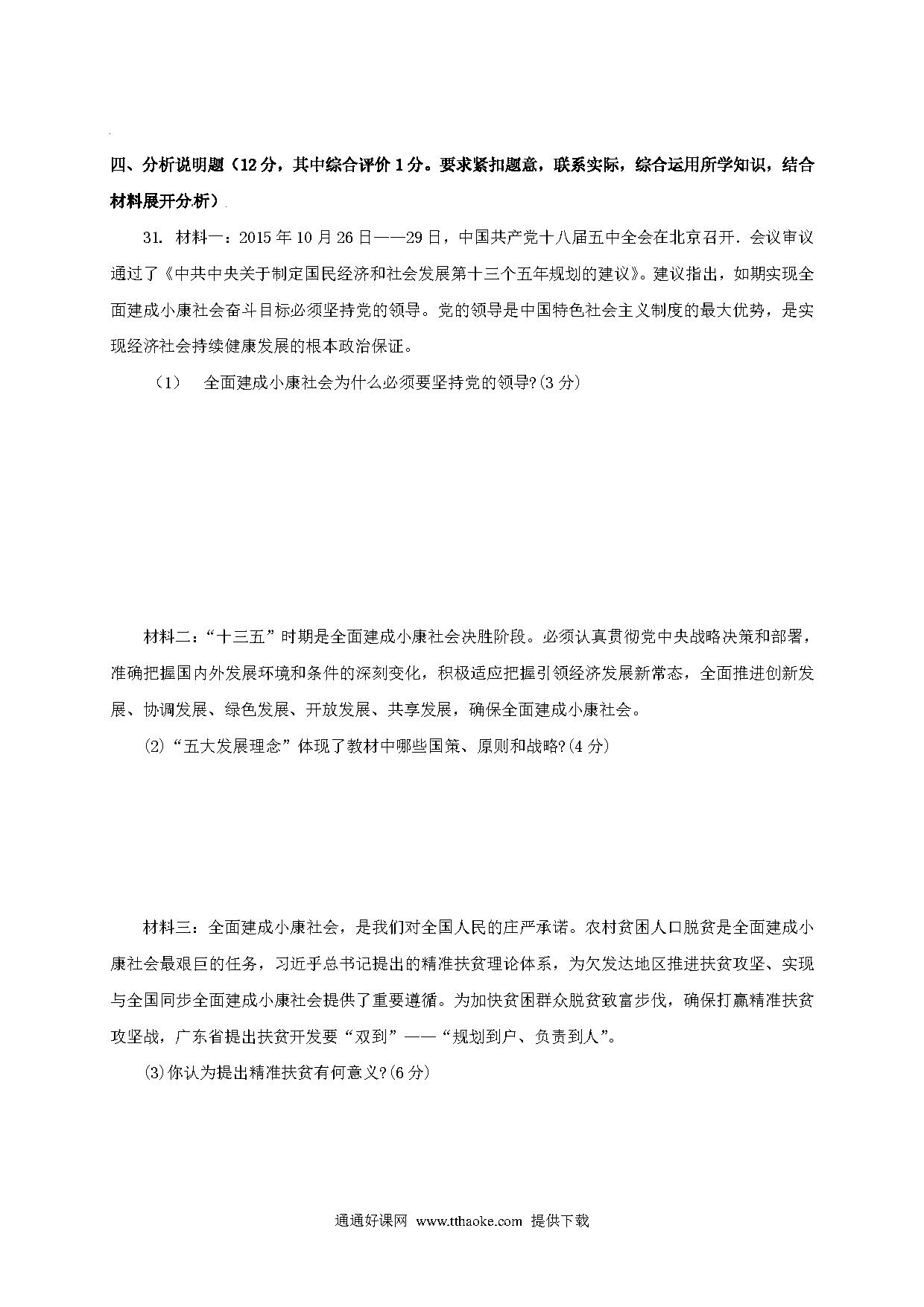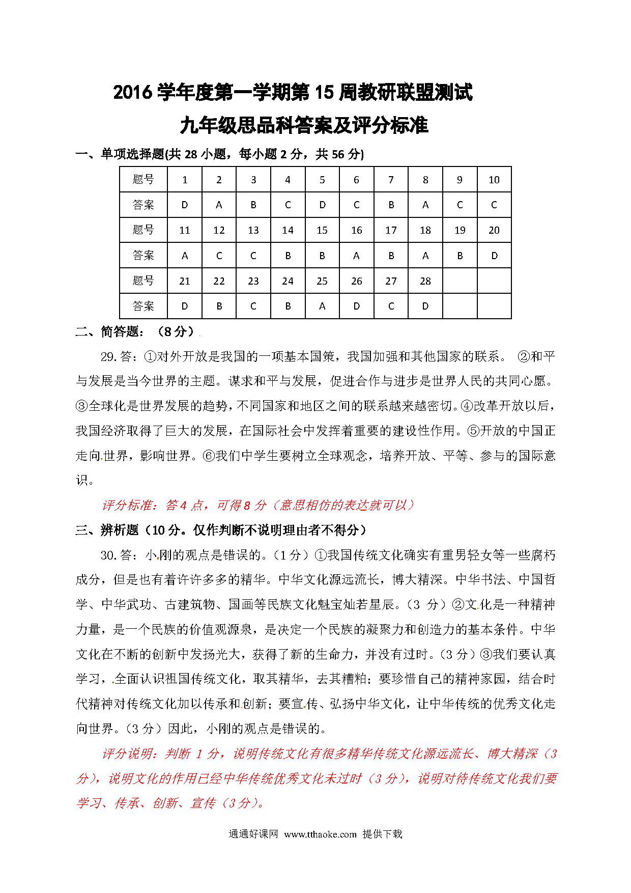 佛山市顺德区初三政治12月月考试题及答案.pdf