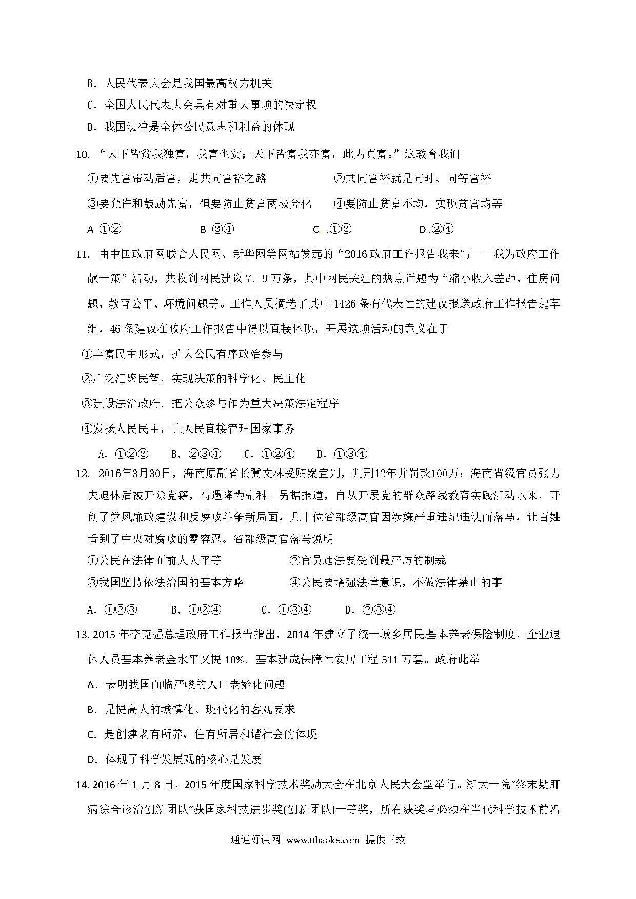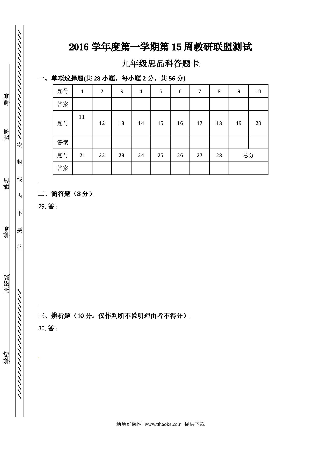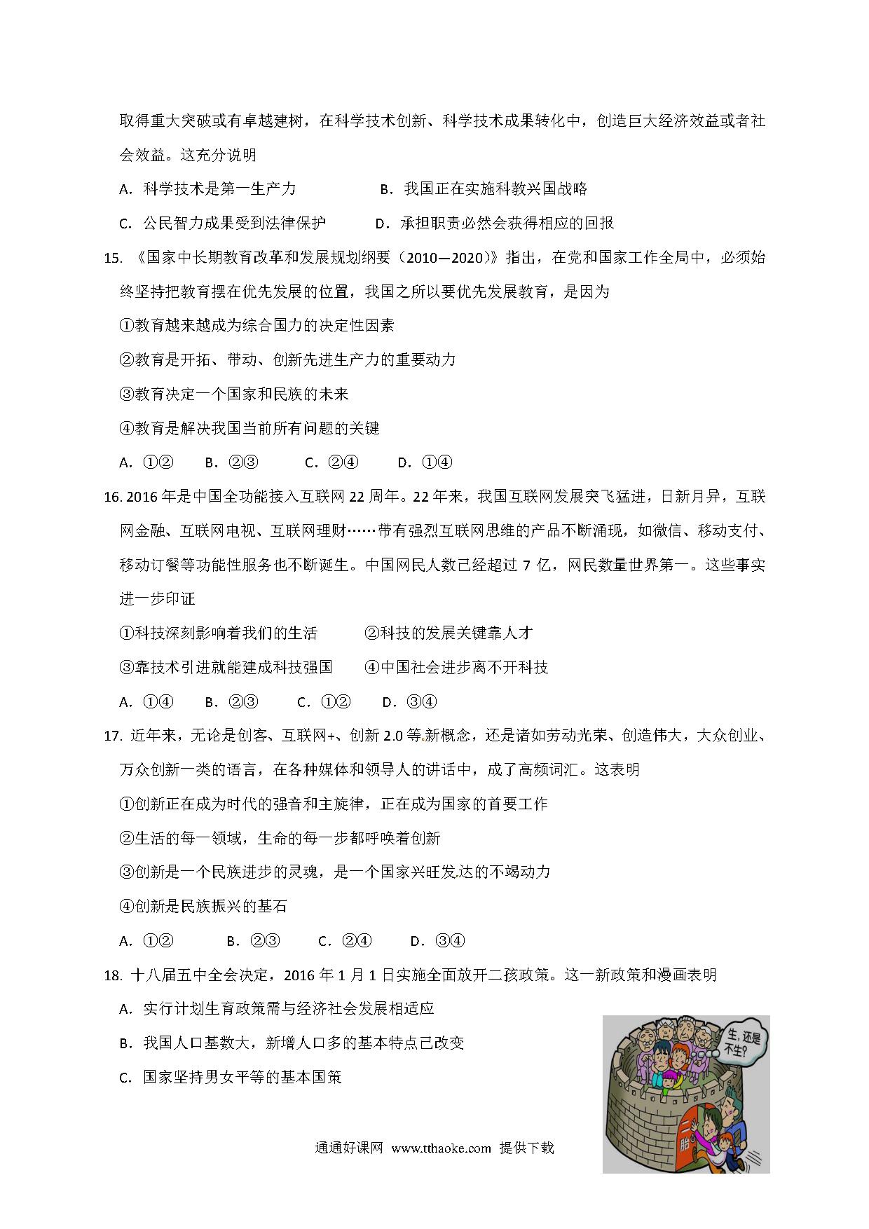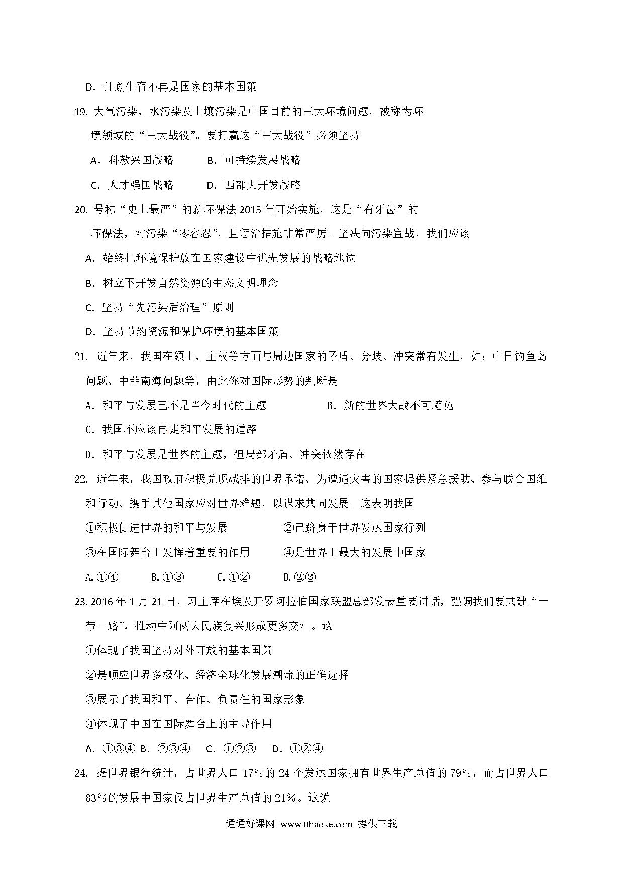 佛山市顺德区初三政治12月月考试题及答案.pdf