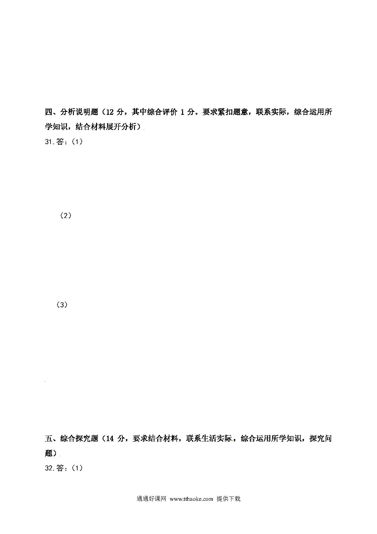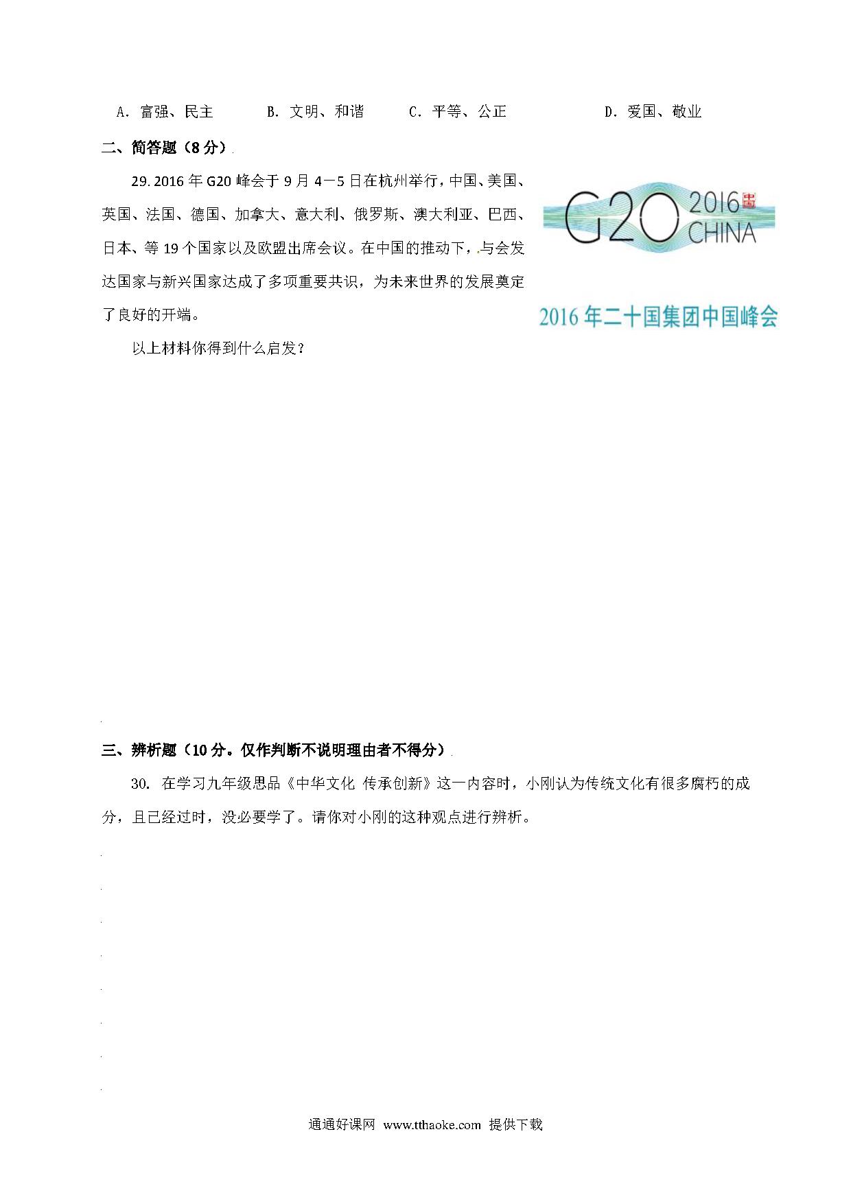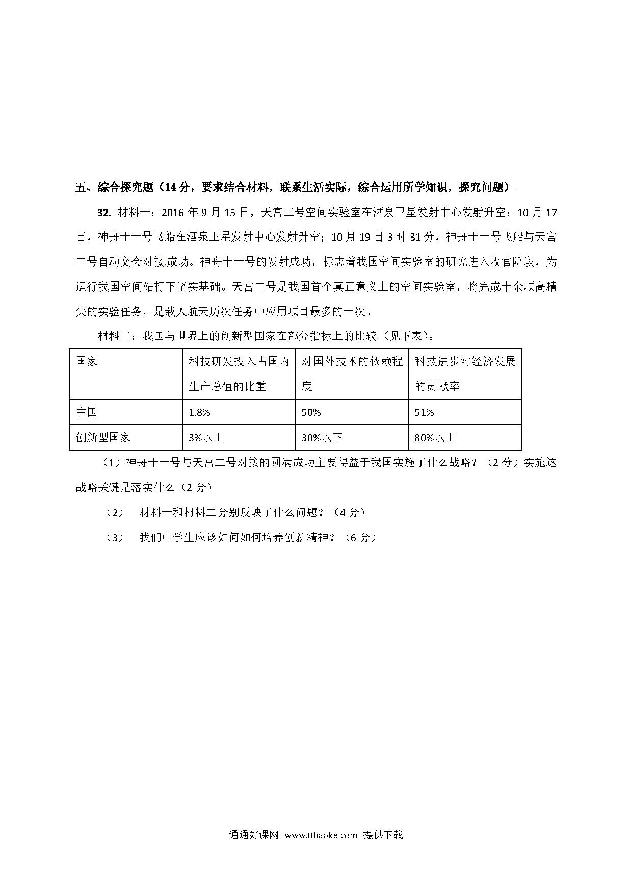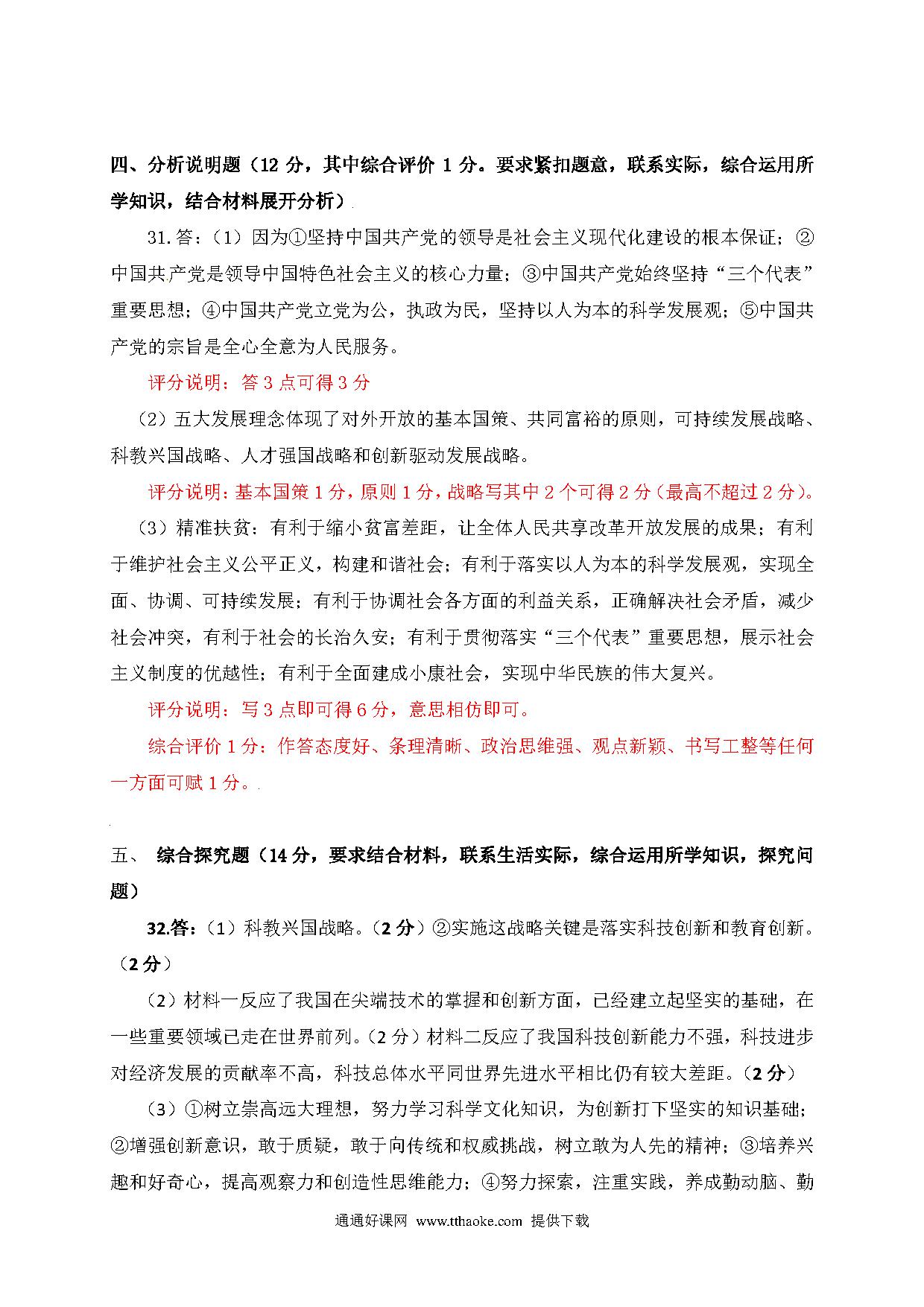 佛山市顺德区初三政治12月月考试题及答案.pdf
