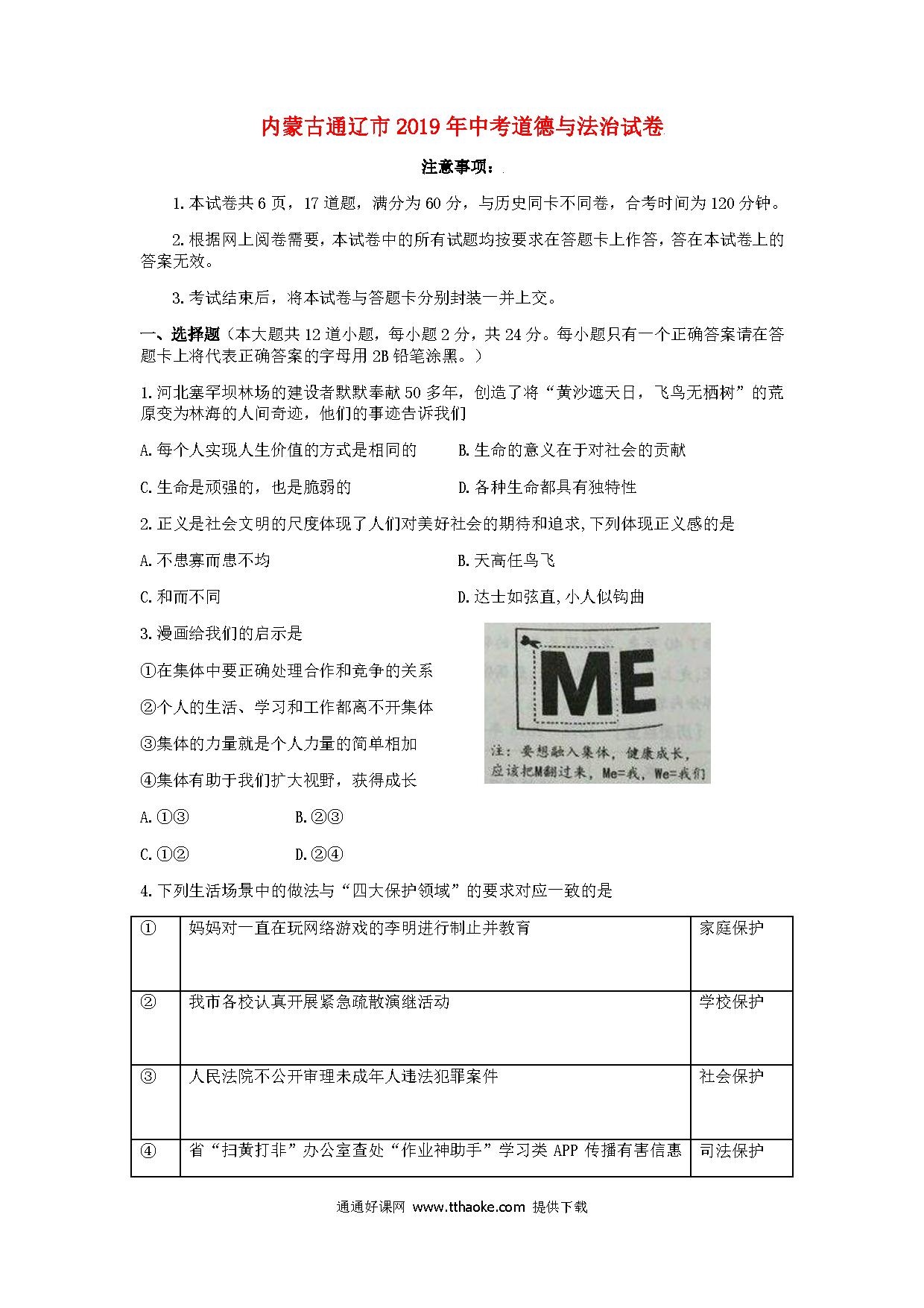 内蒙古通辽市2019年中考道德与法治真题试题(含解析).pdf