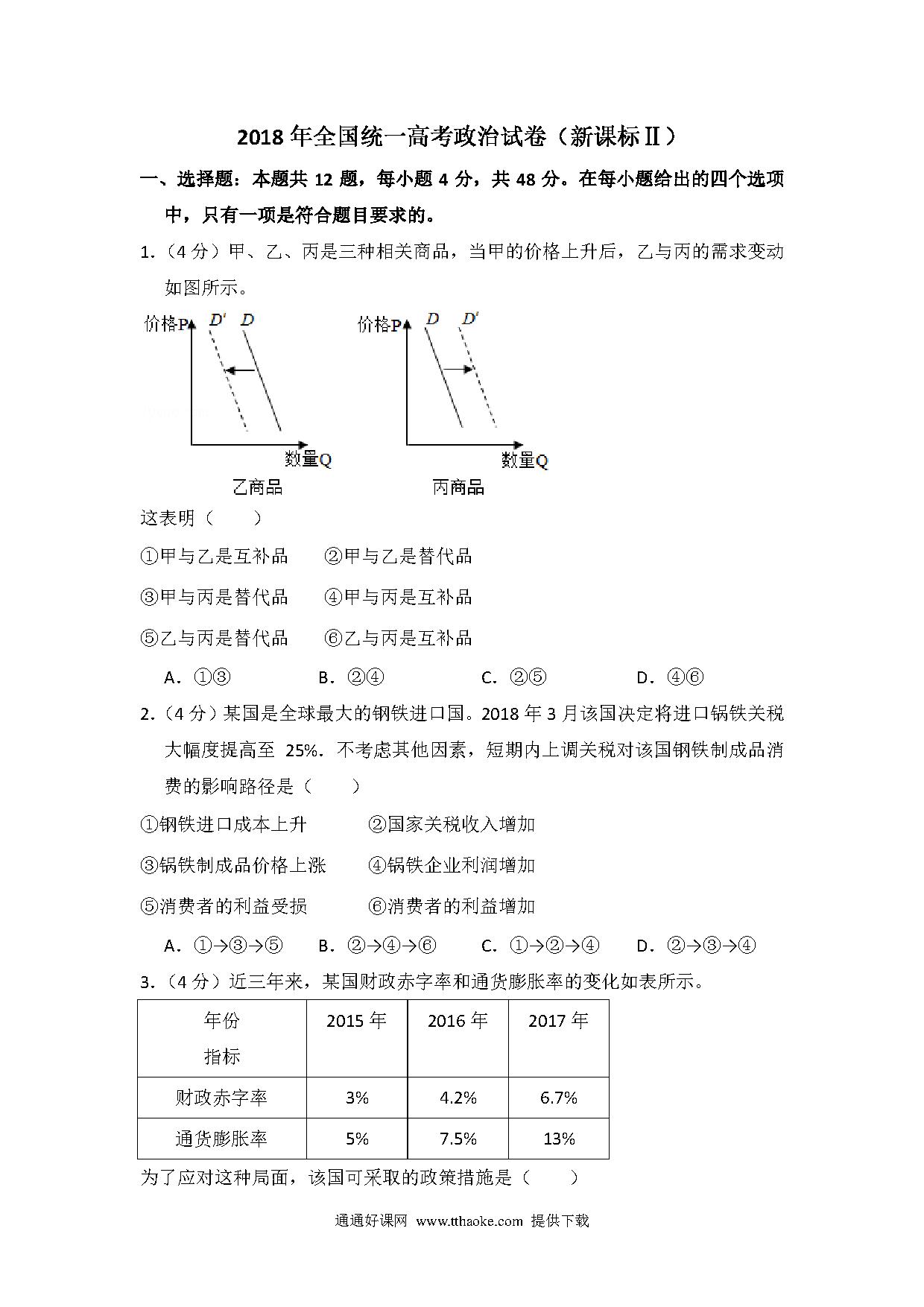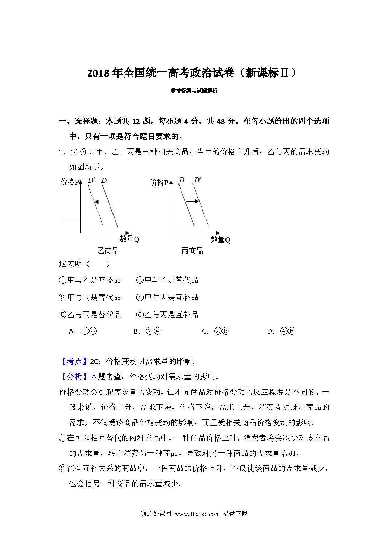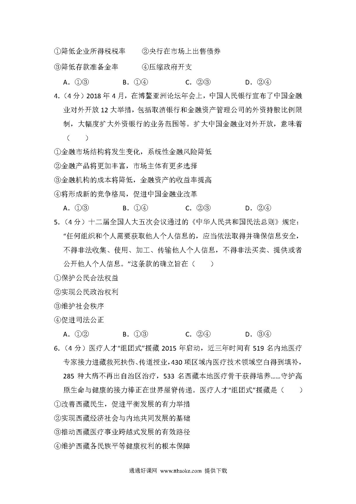 2018年全国统一高考政治试卷(新课标ⅱ)(含解析版).pdf