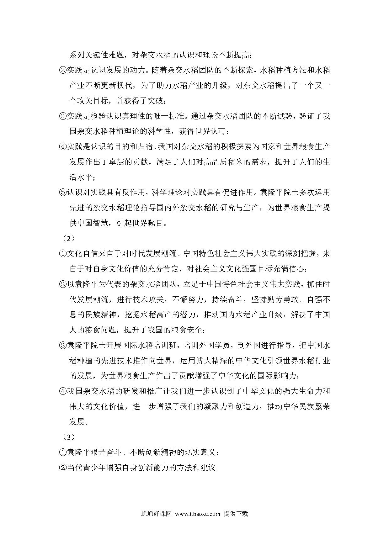 2023年高考新课标卷(五省)政治真题(原卷版)