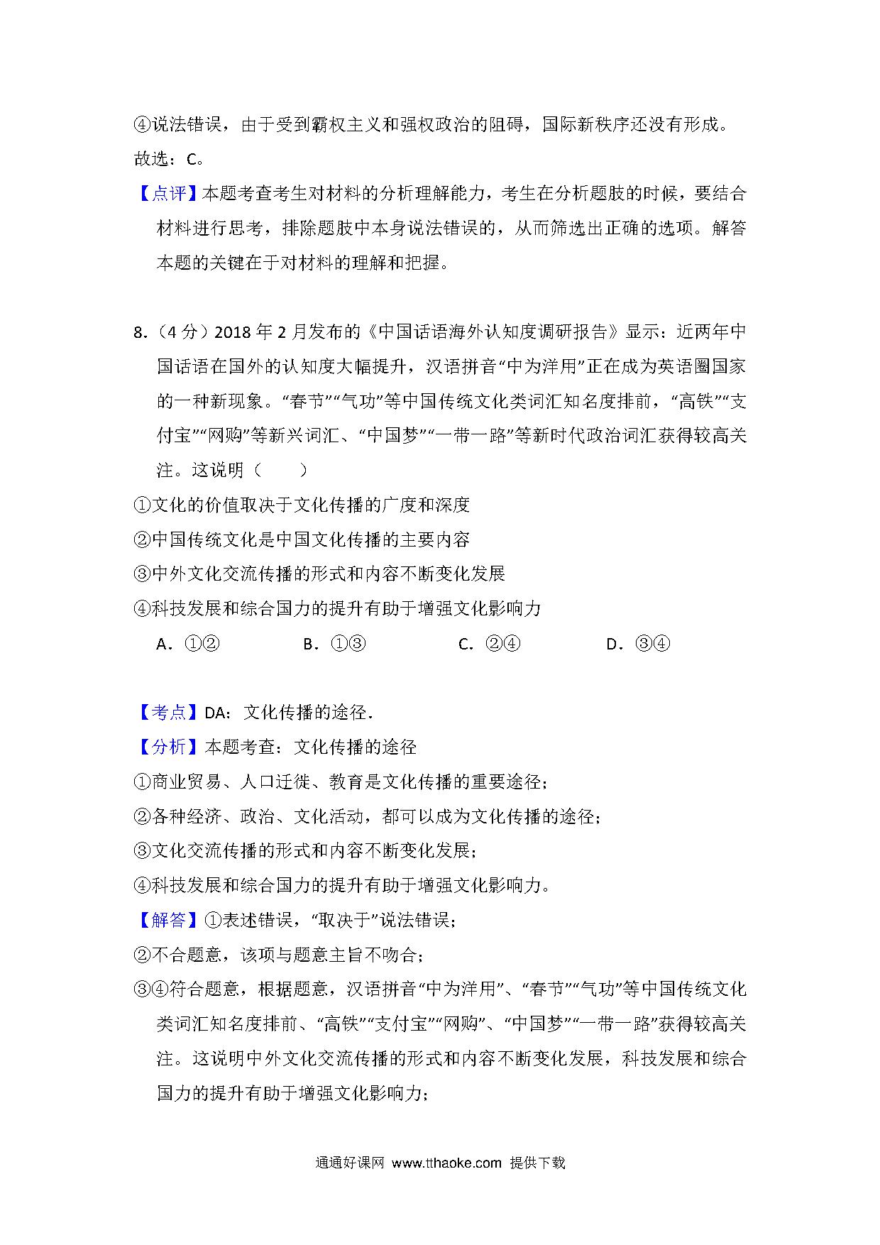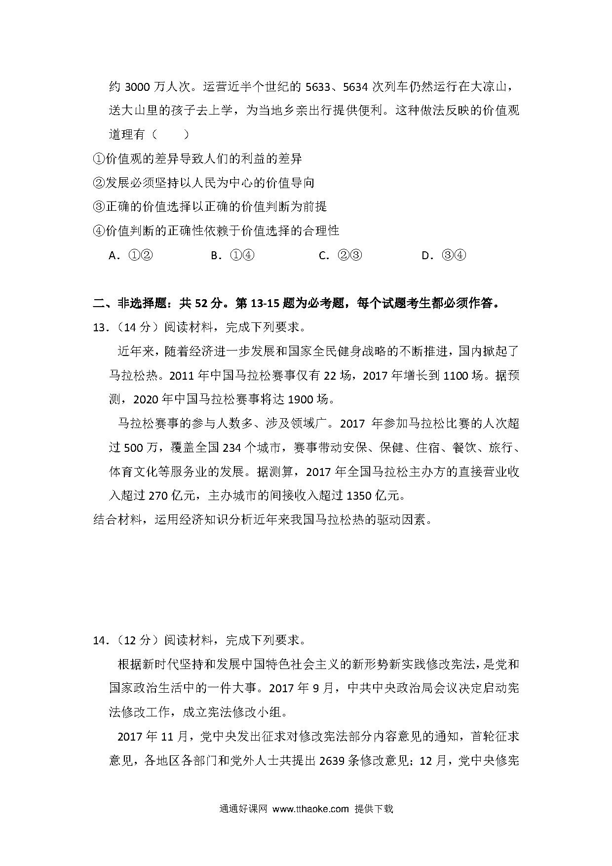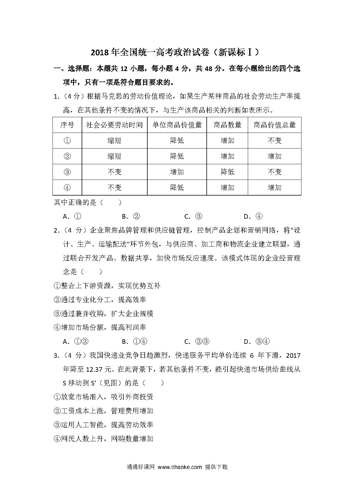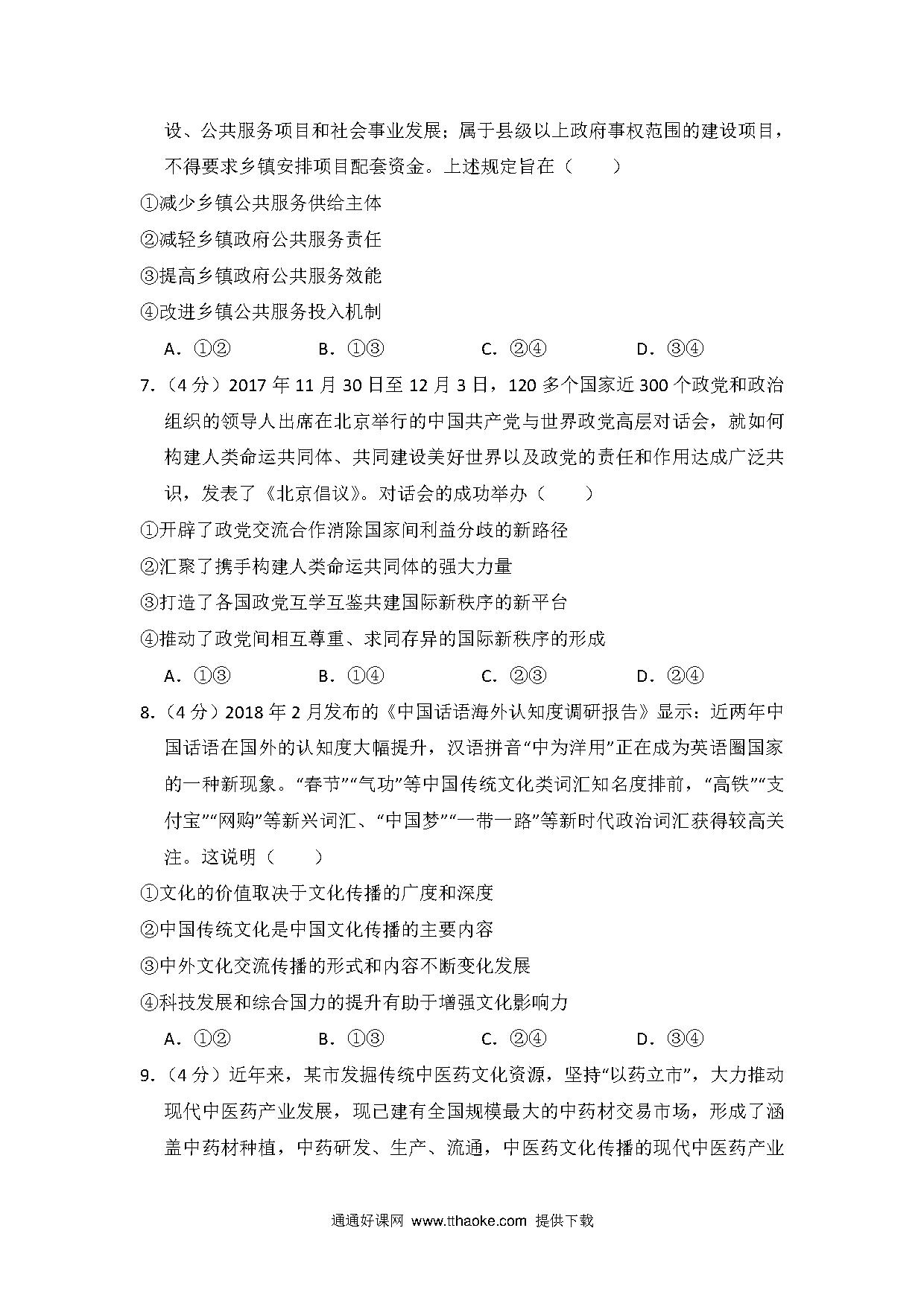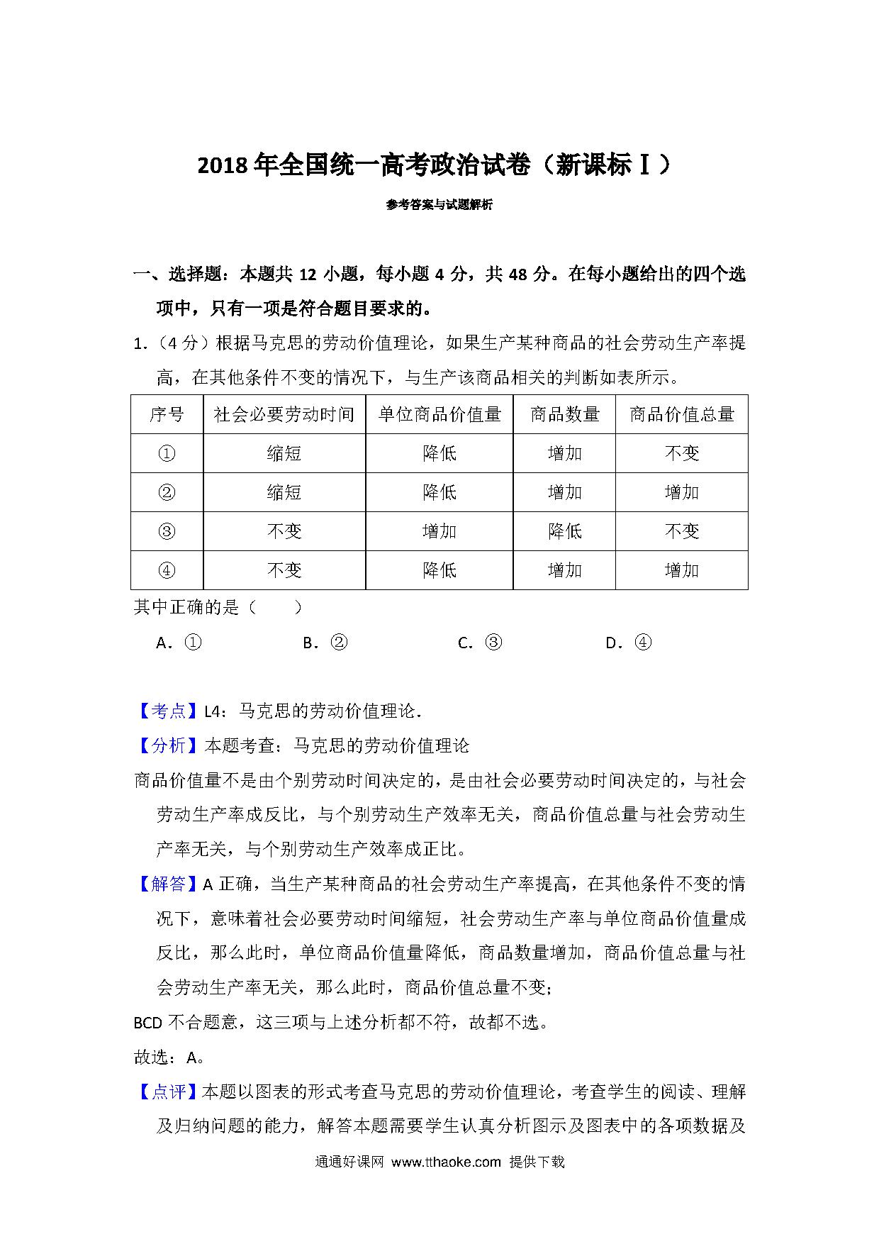 2018年全国统一高考政治试卷(新课标ⅰ)(含解析版).pdf