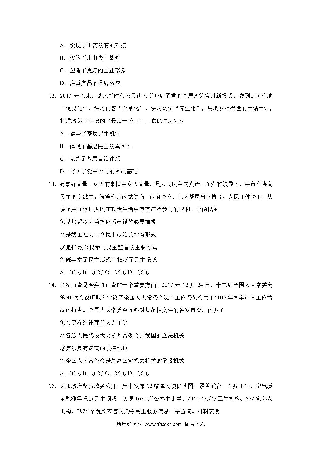 2023年高考新课标卷(五省)政治真题(原卷版)