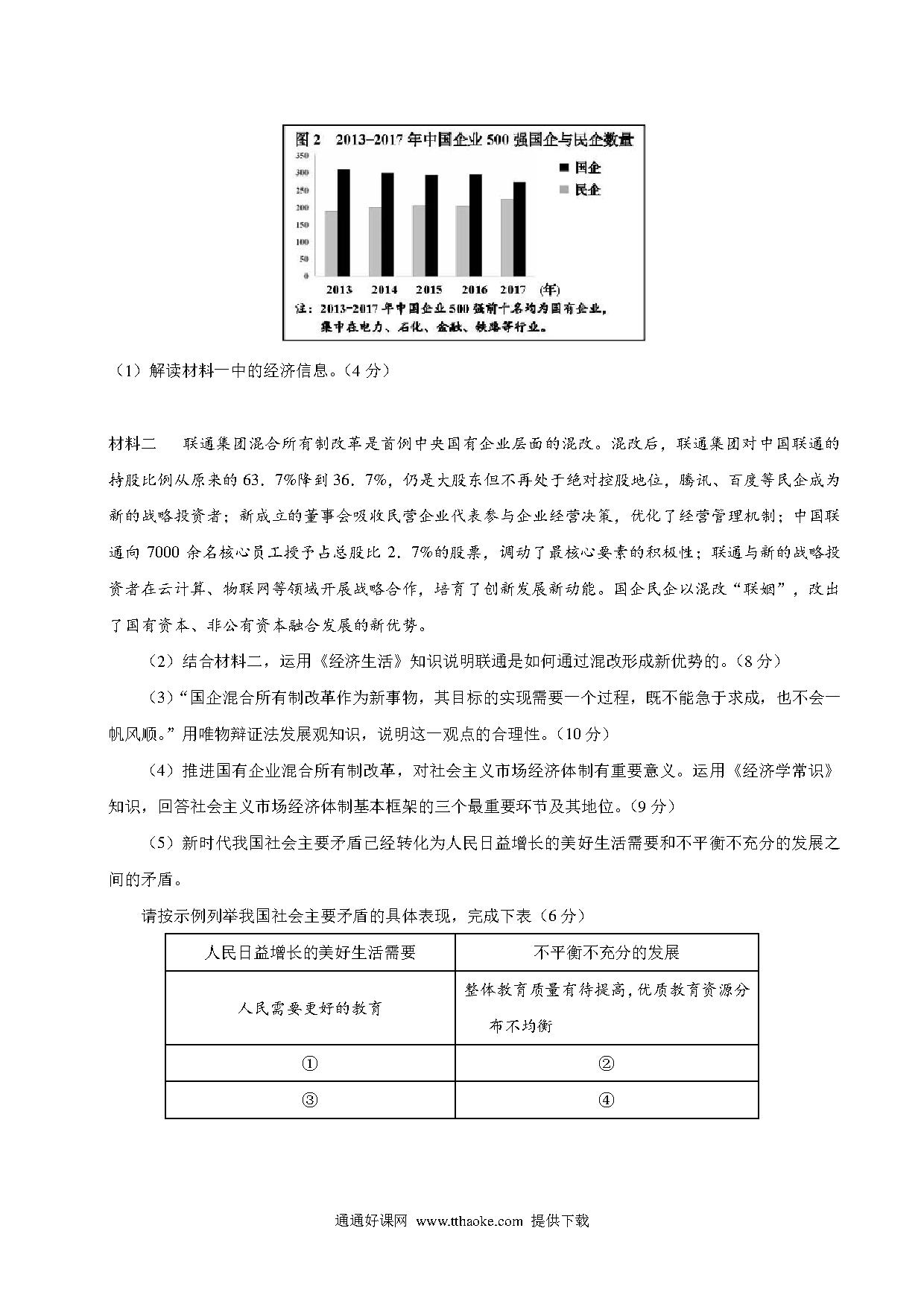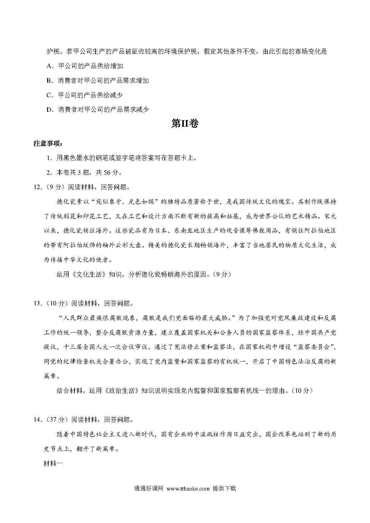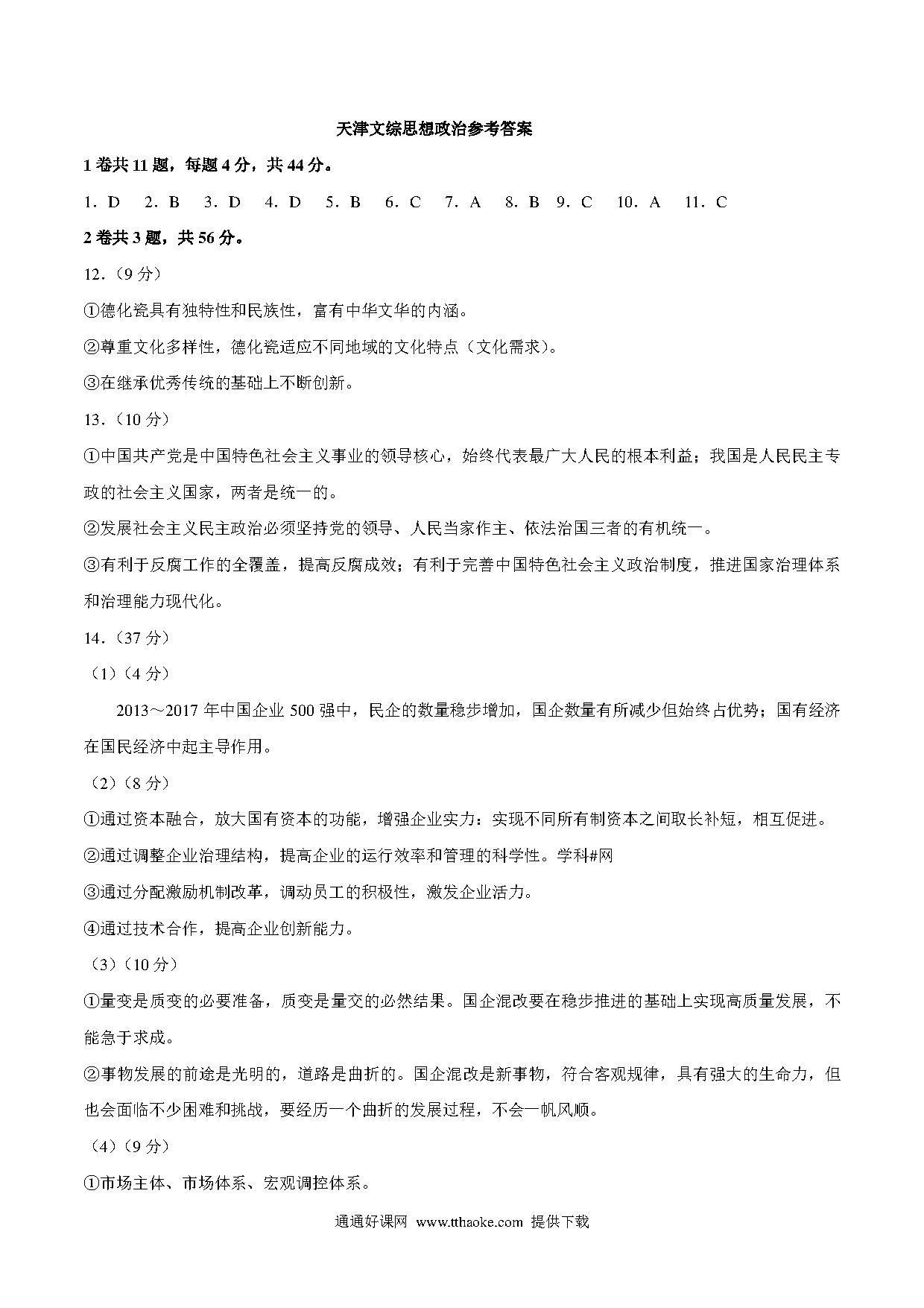 2018年高考试题(天津卷)文综政治(word答案).pdf