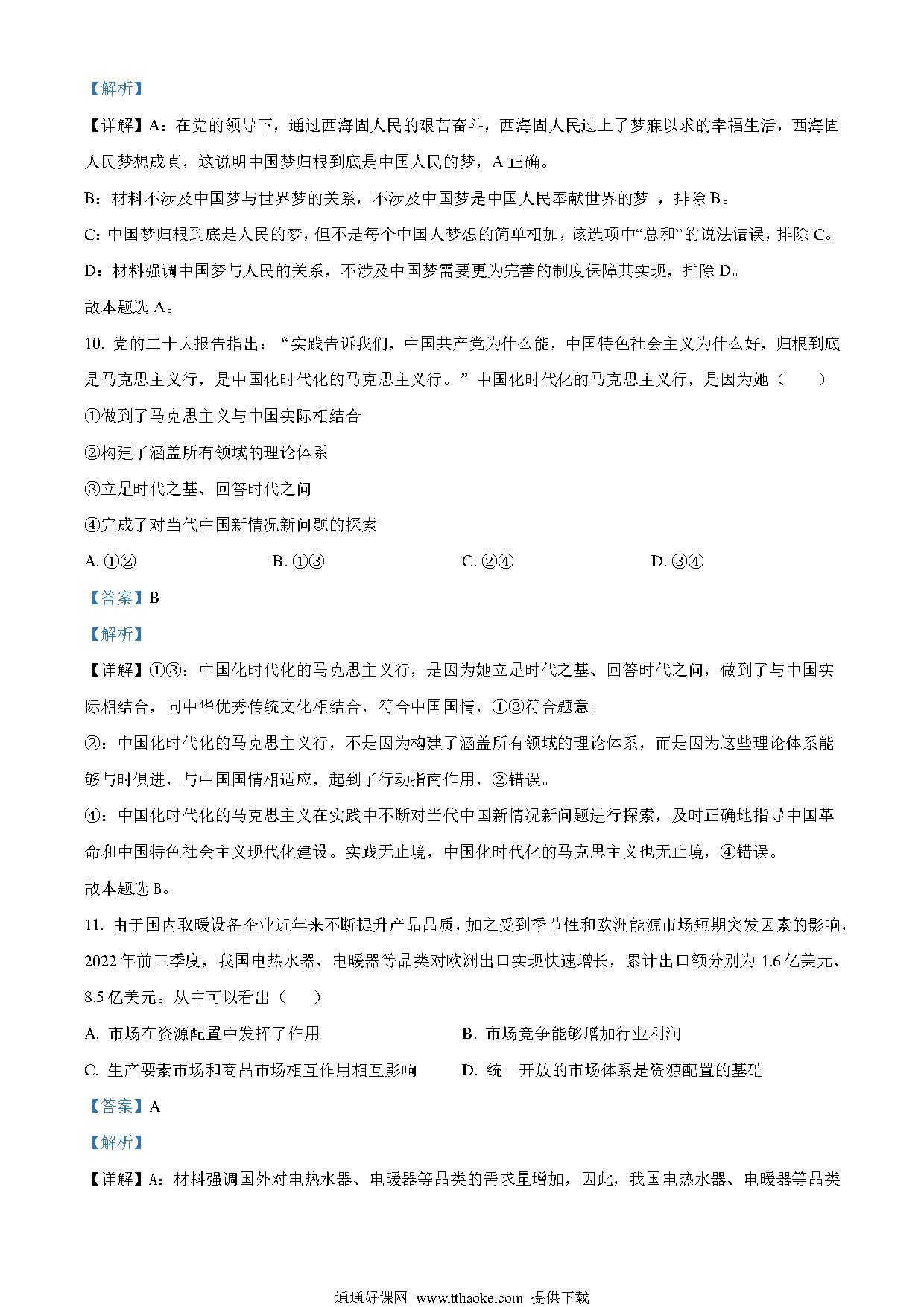 2023年1月浙江省普通高校招生选考科目考试思想政治试题(解析版).pdf