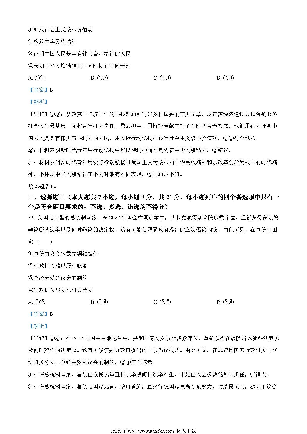 2023年1月浙江省普通高校招生选考科目考试思想政治试题(解析版