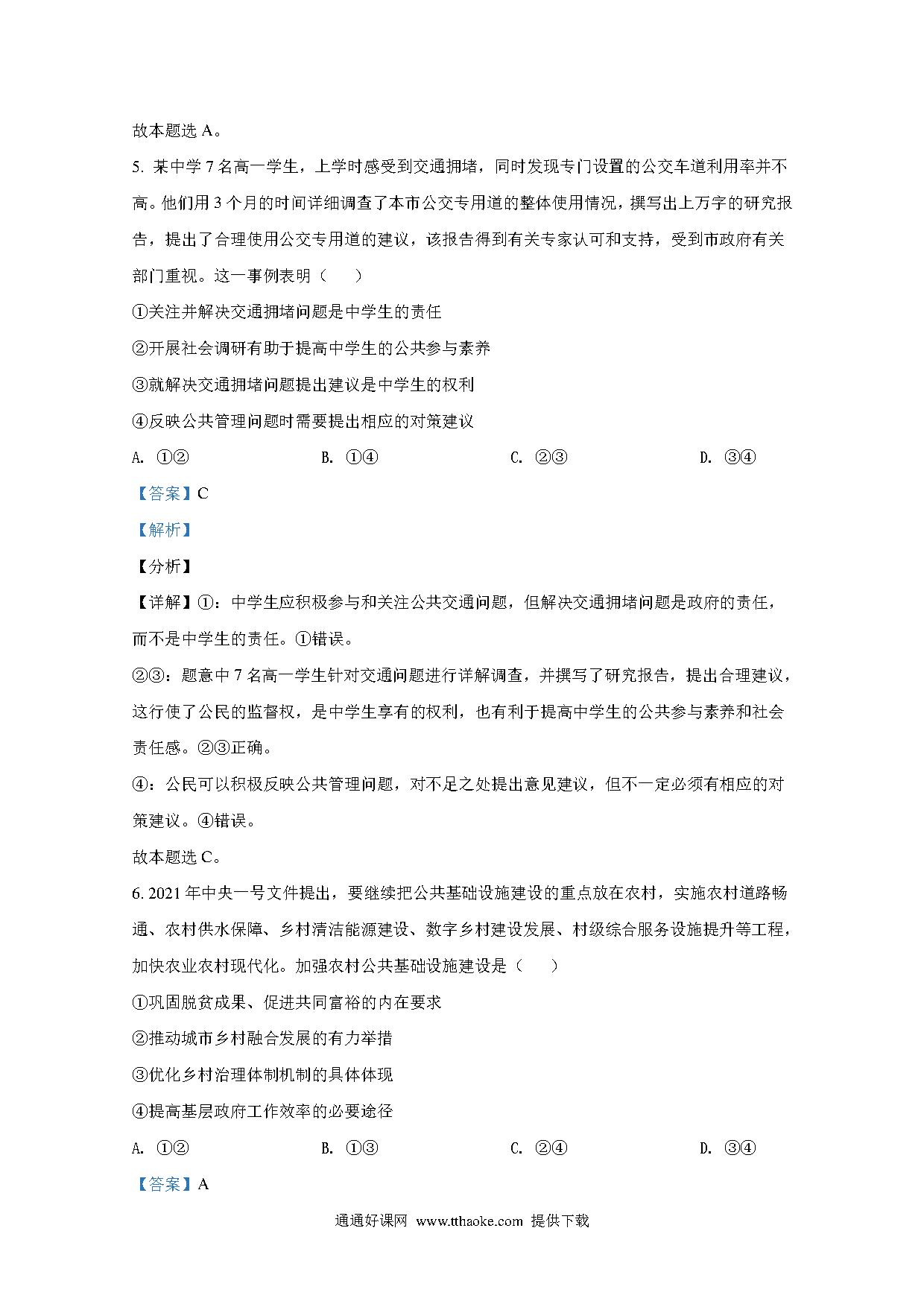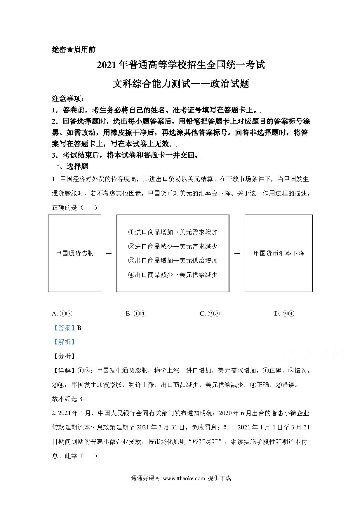 2021年全国统一高考政治试卷(新课标ⅰ)(含解析版).pdf