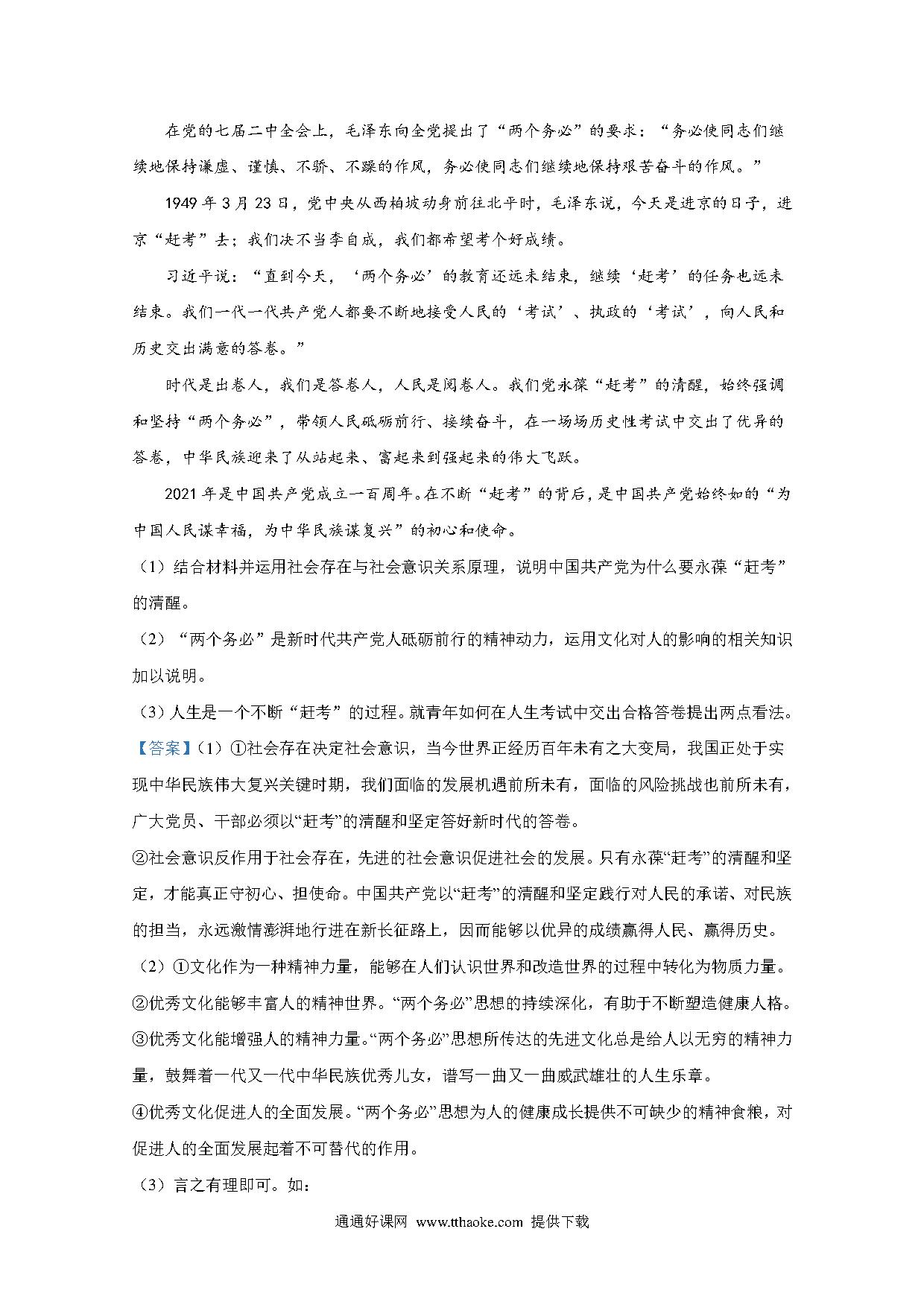 2021年全国统一高考政治试卷(新课标ⅰ)(含解析版)