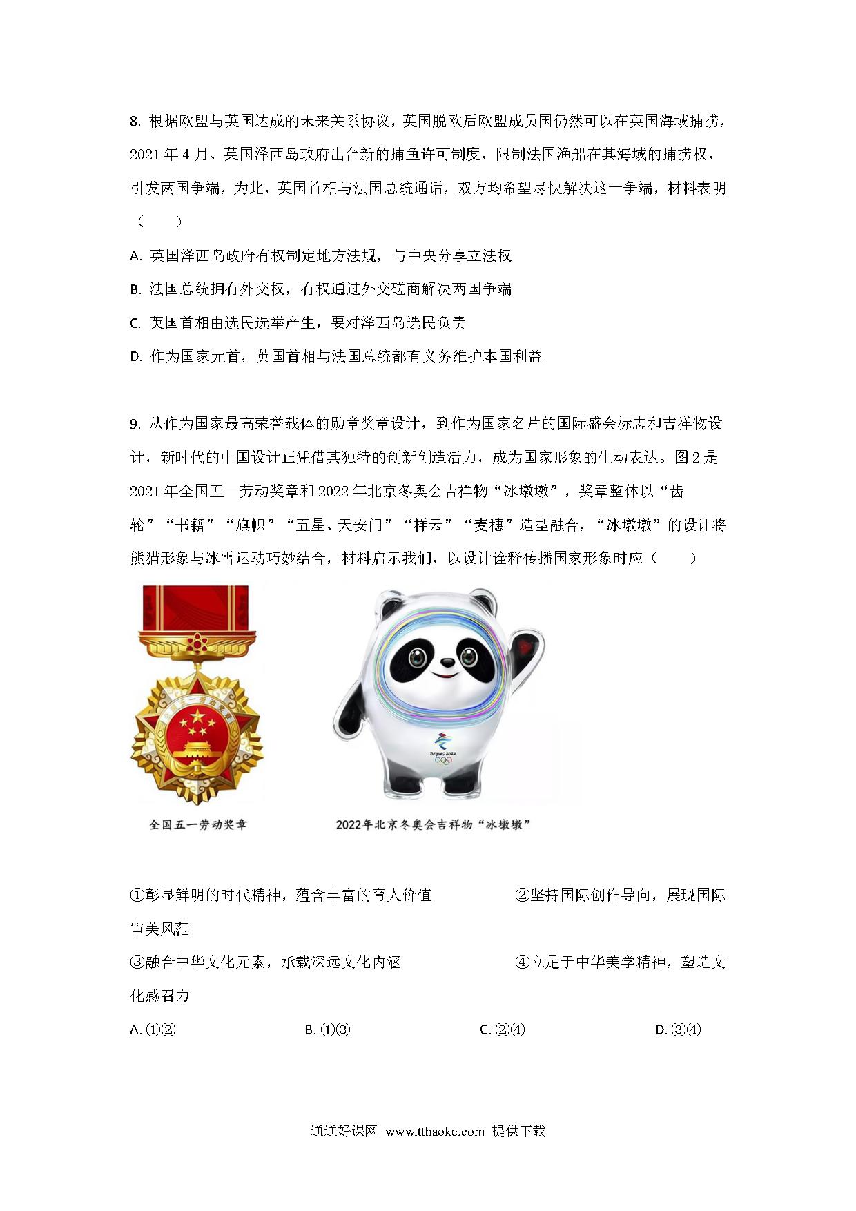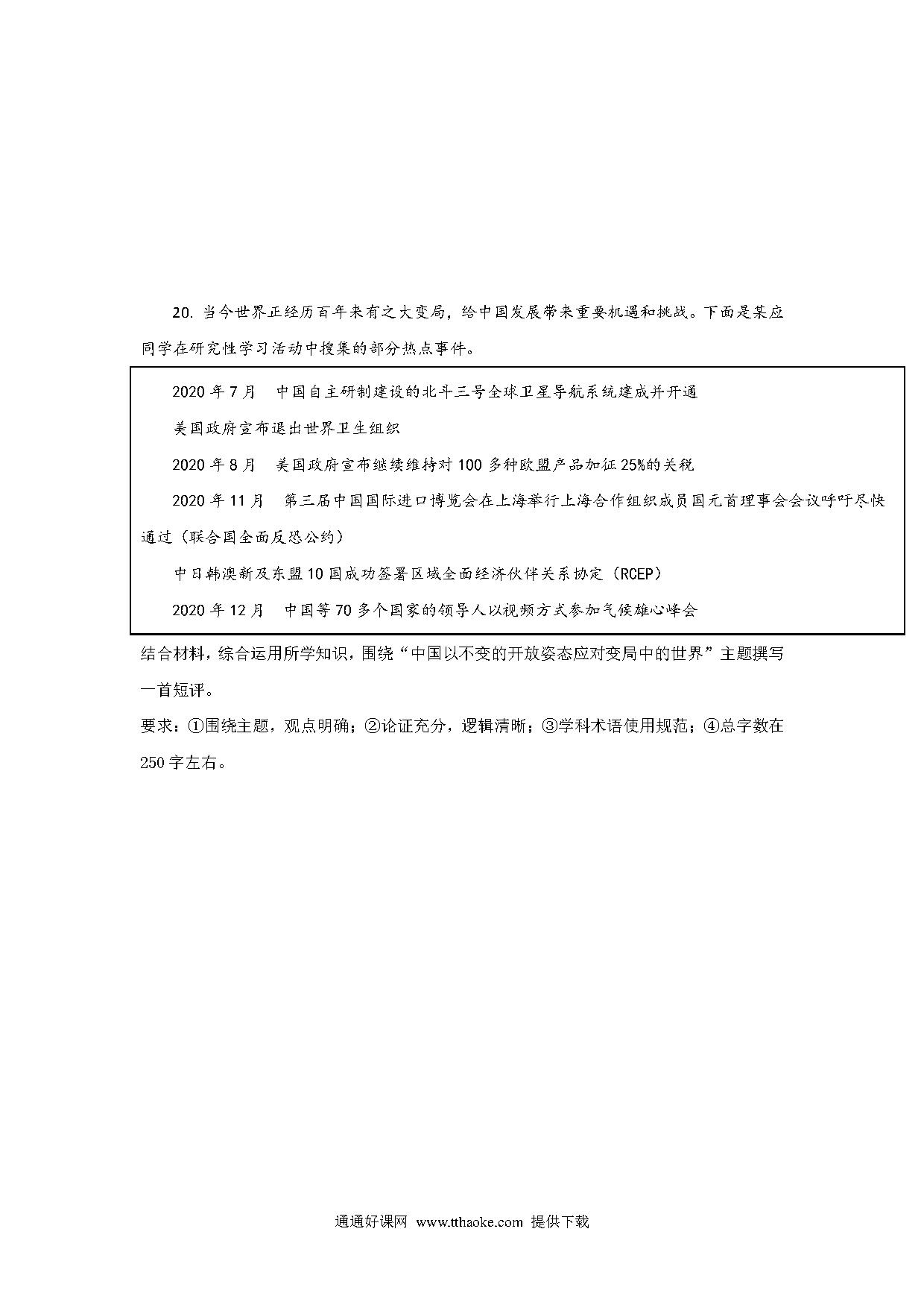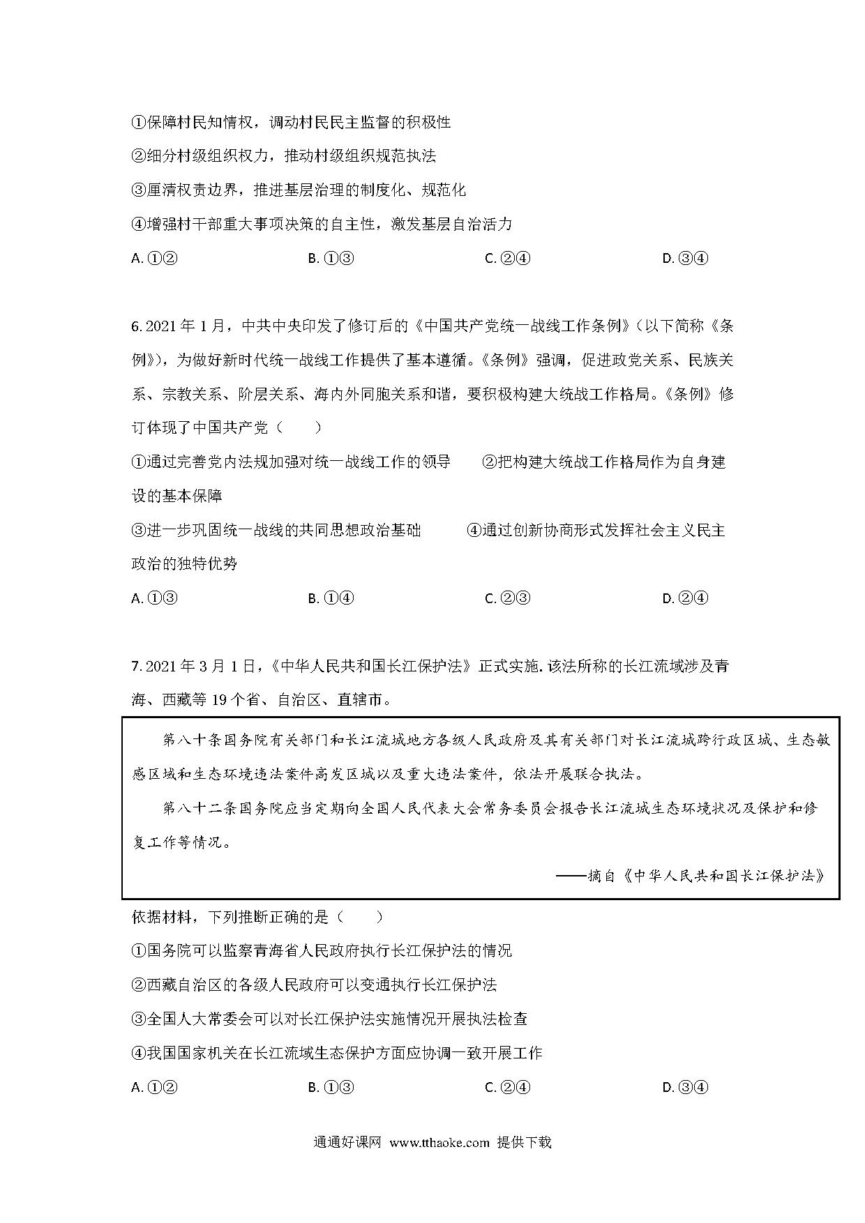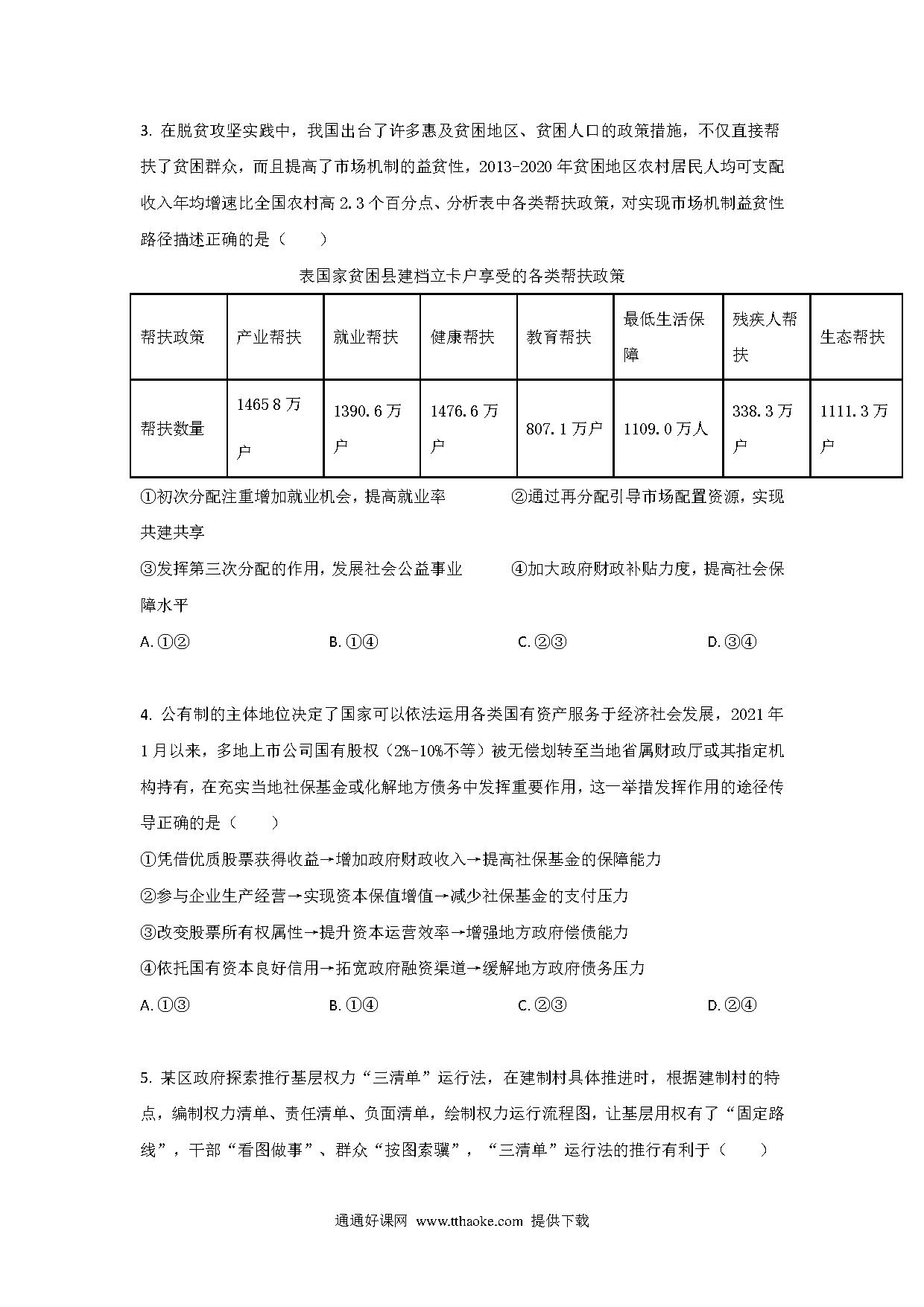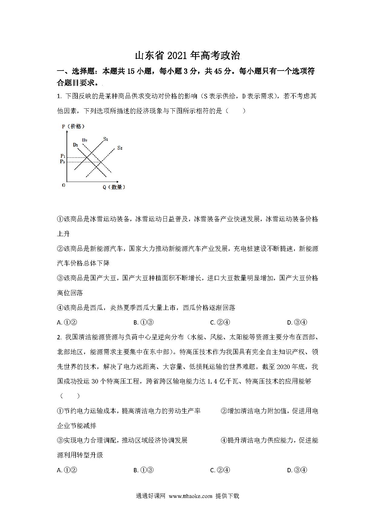 2021年高考真题政治(山东卷)(原卷版).pdf