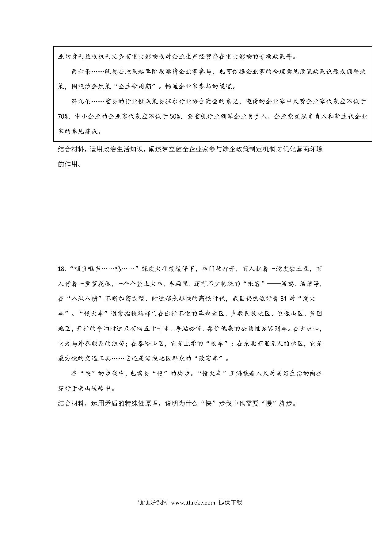 2023年高考新课标卷(五省)政治真题(原卷版)