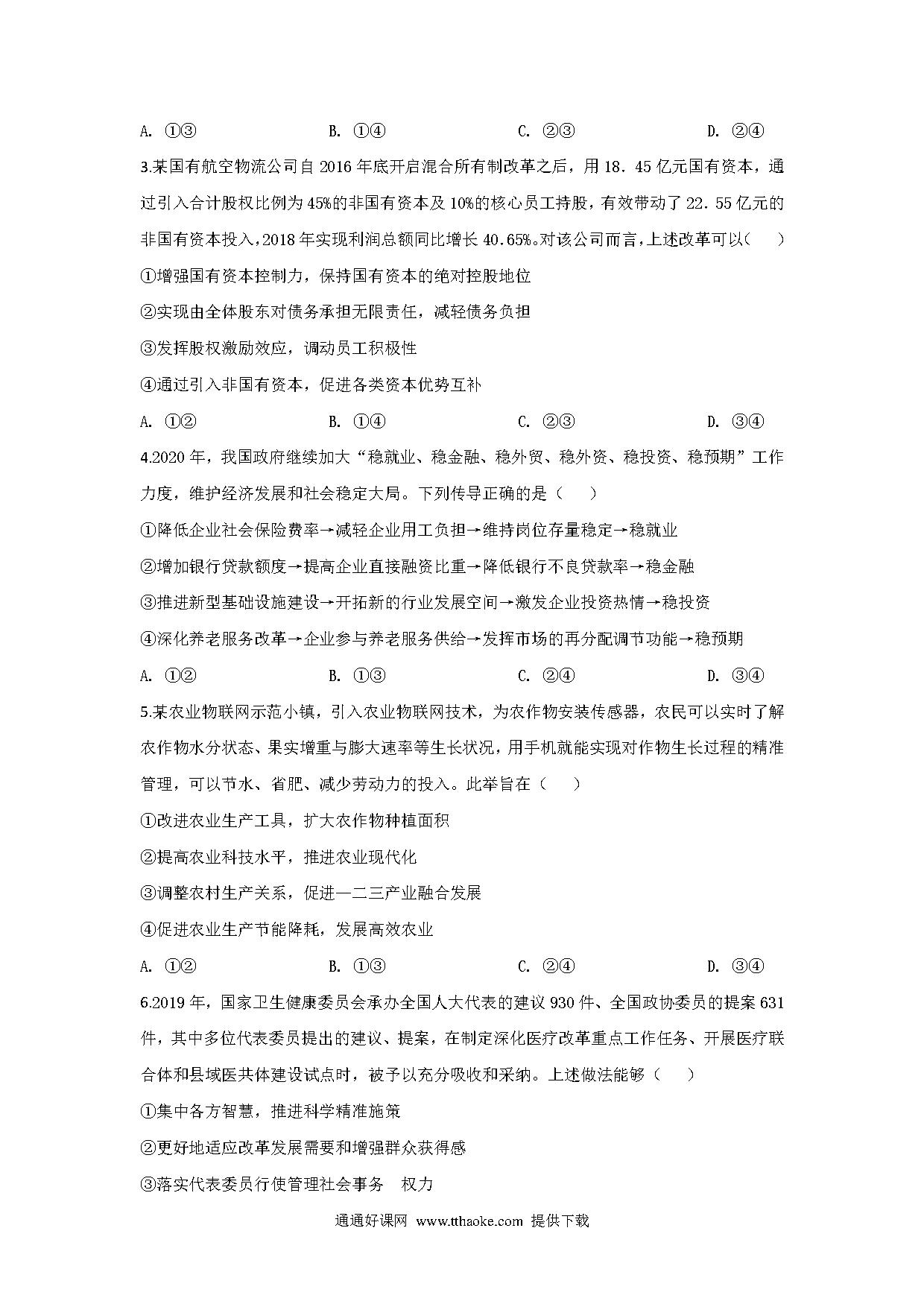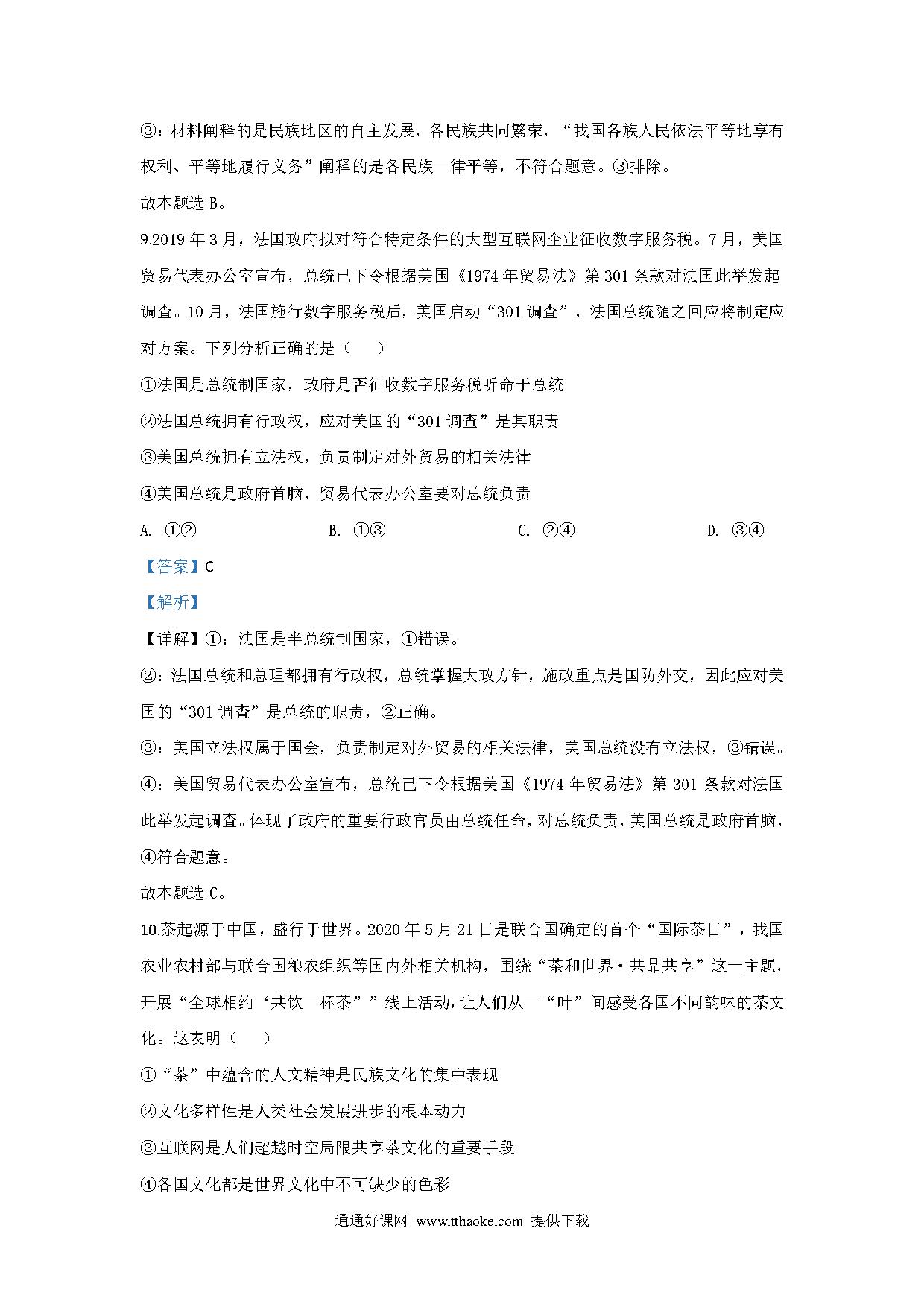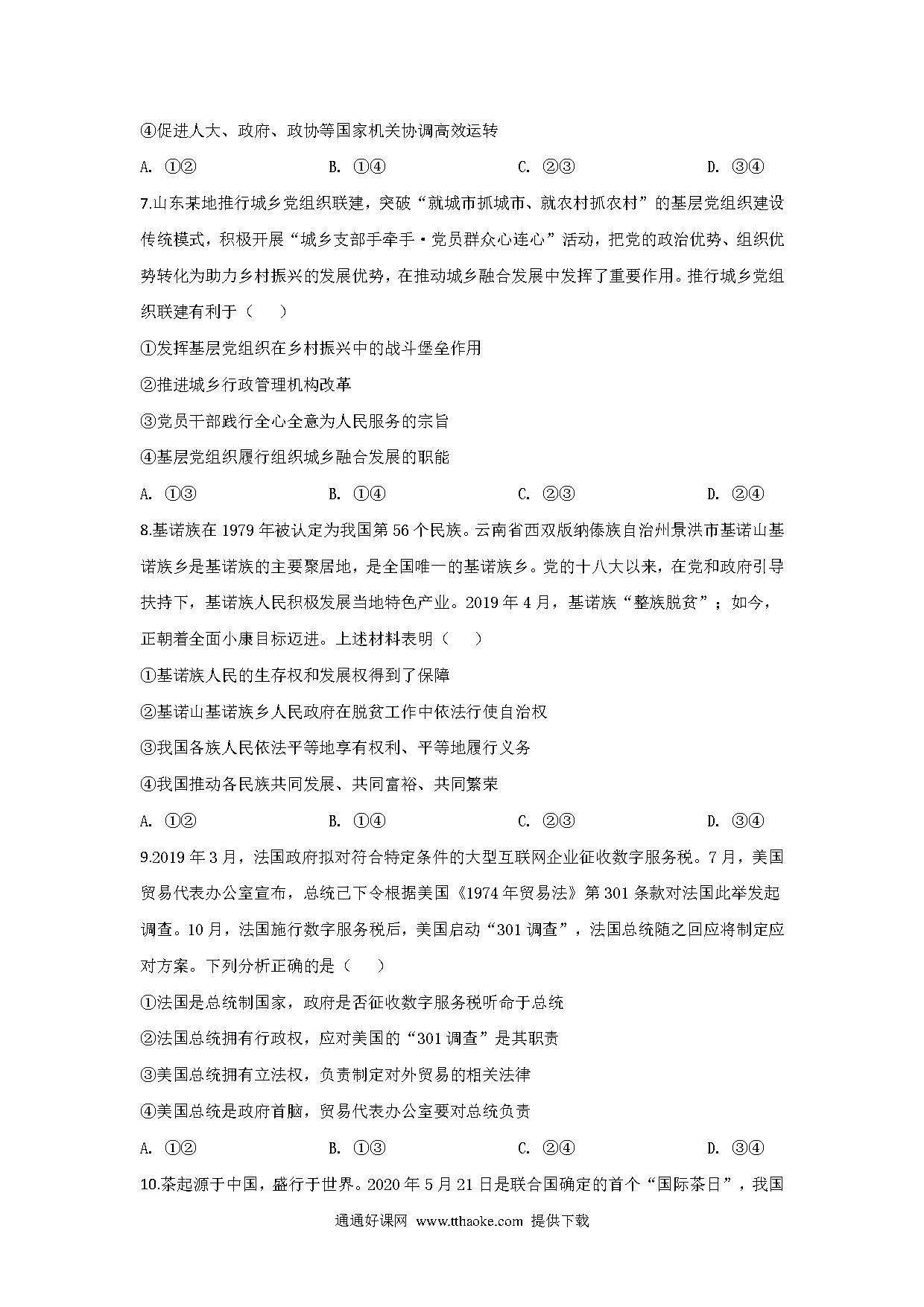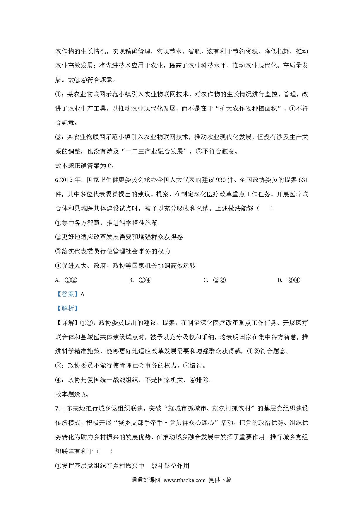 2020山东高考文综政治试题及答案.pdf