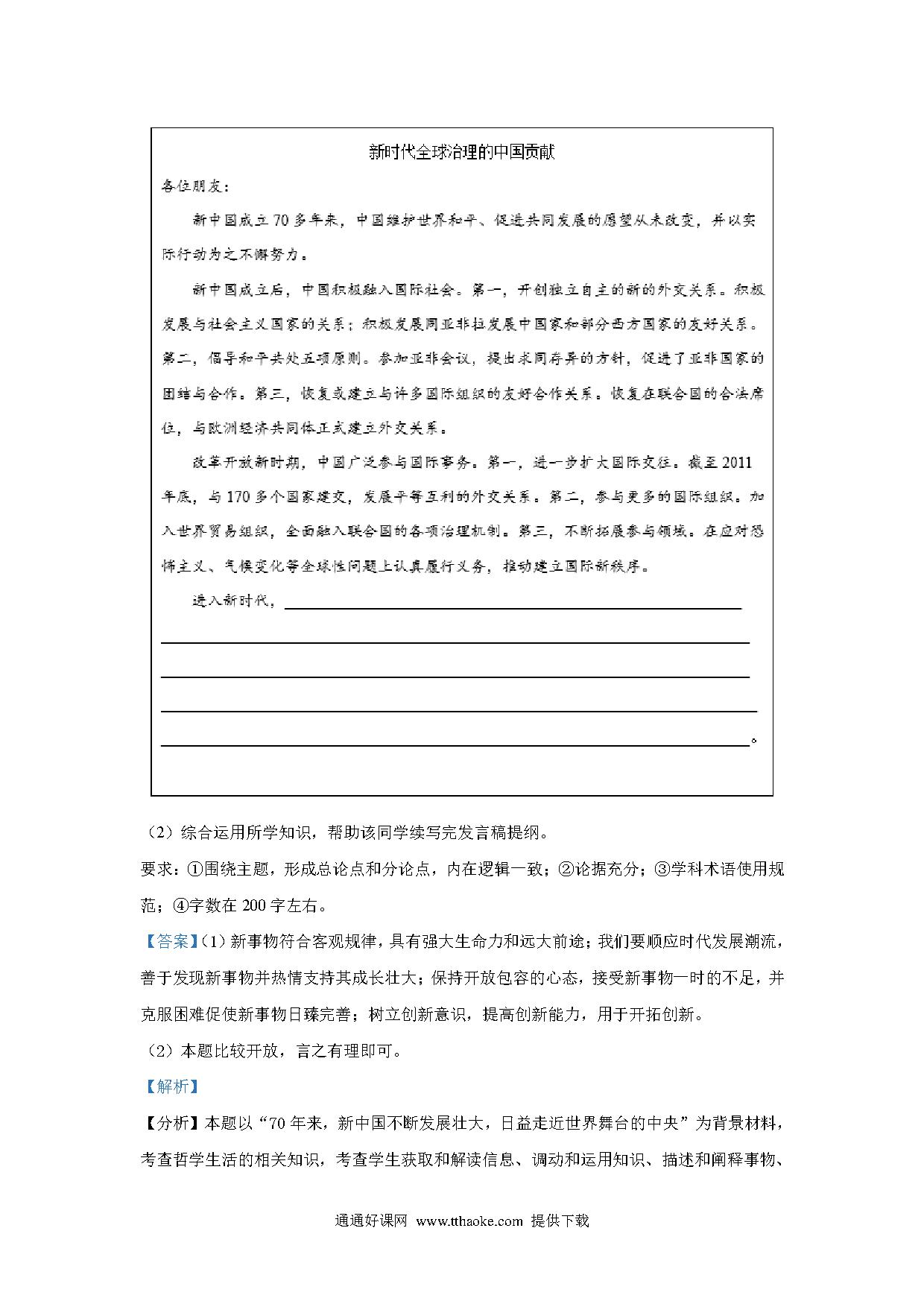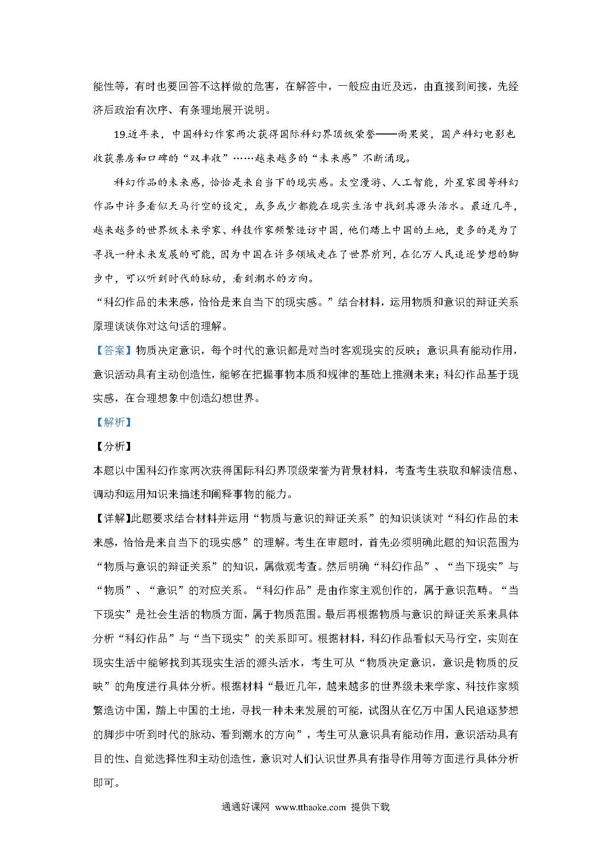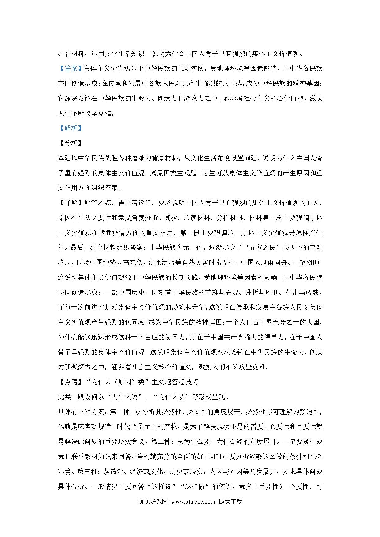 2020山东高考文综政治试题及答案