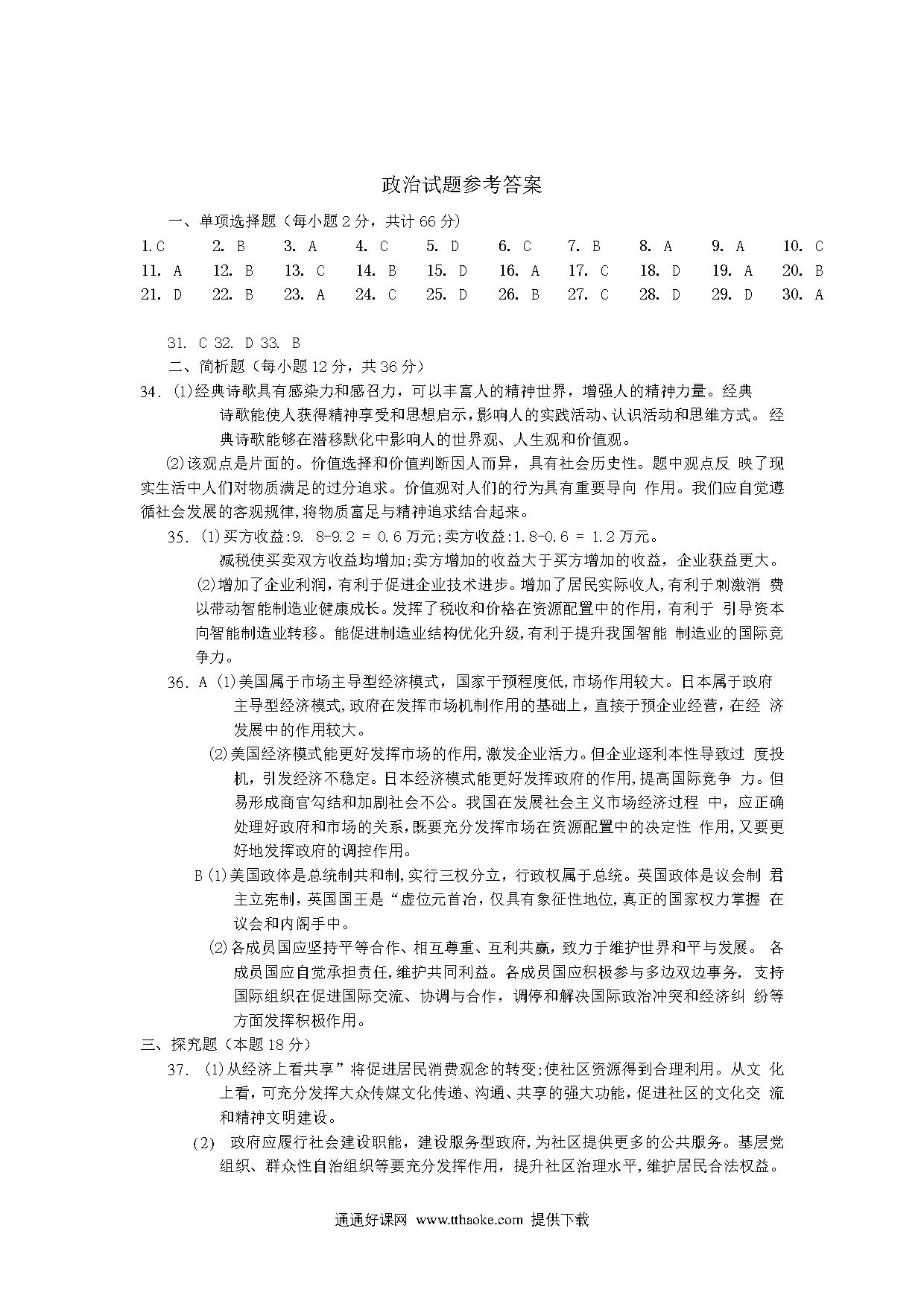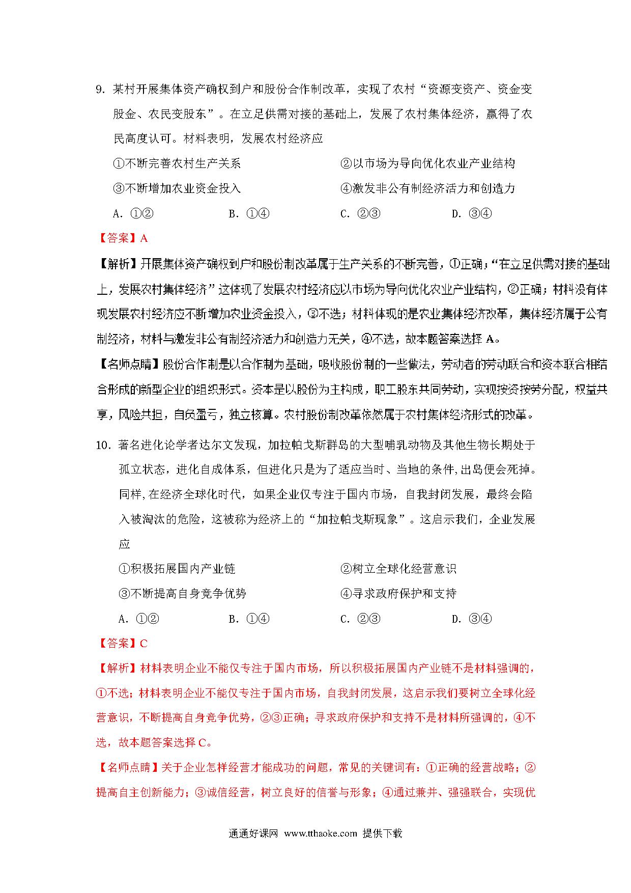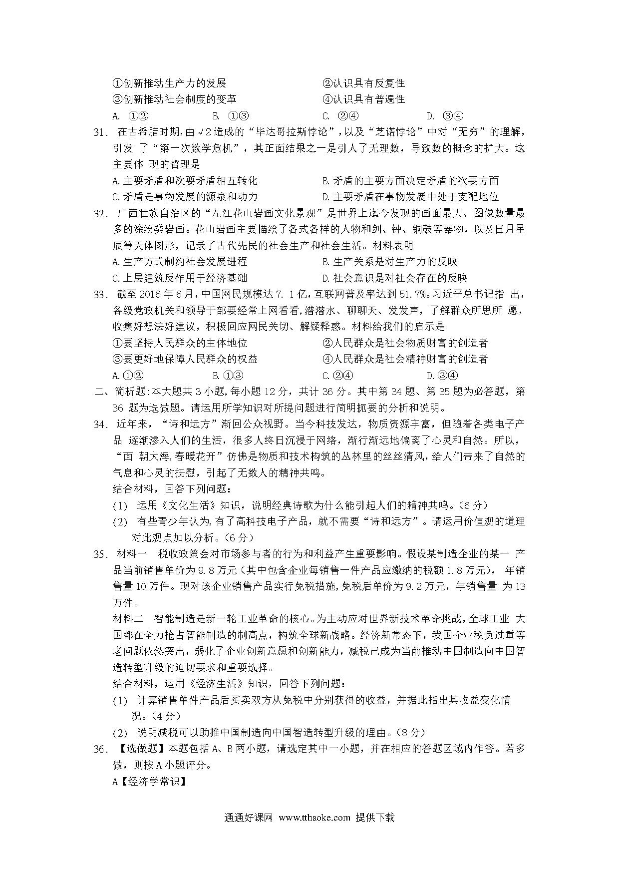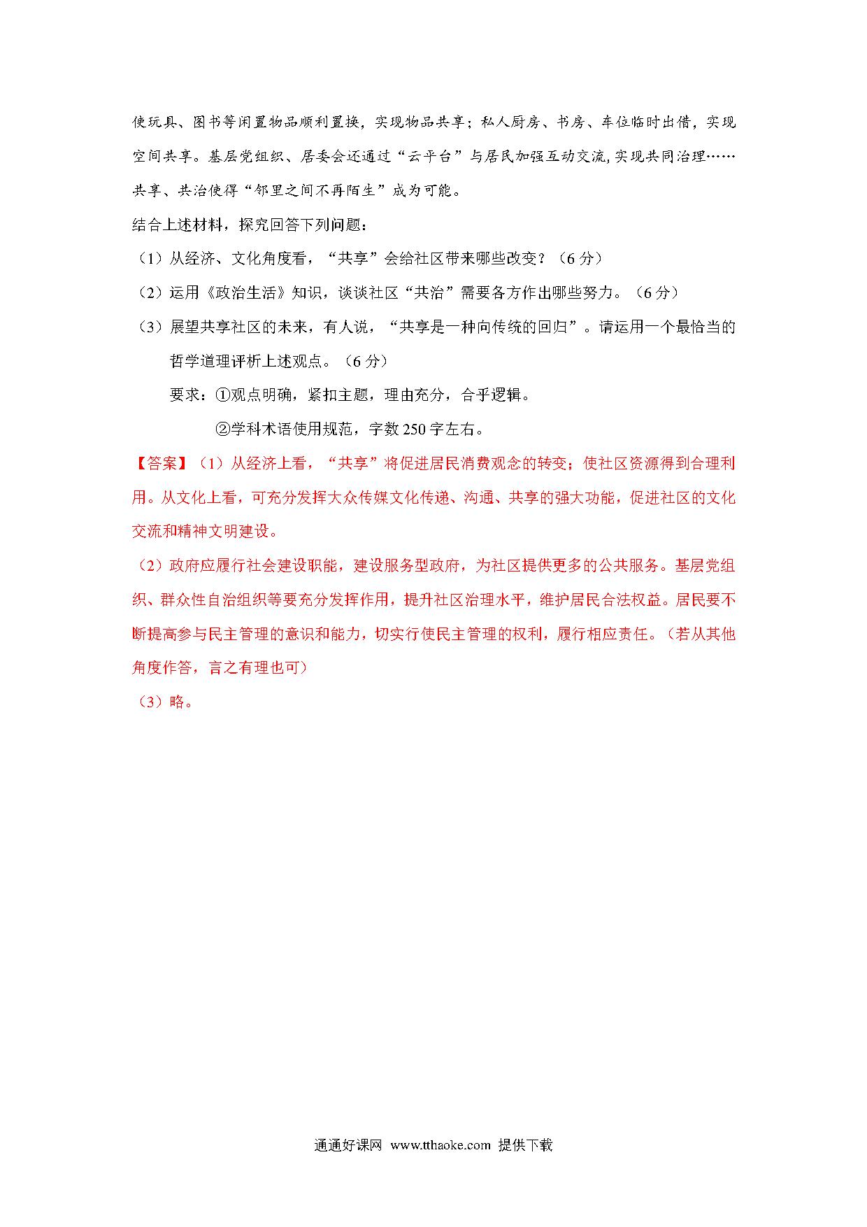 2023年高考新课标卷(五省)政治真题(原卷版)
