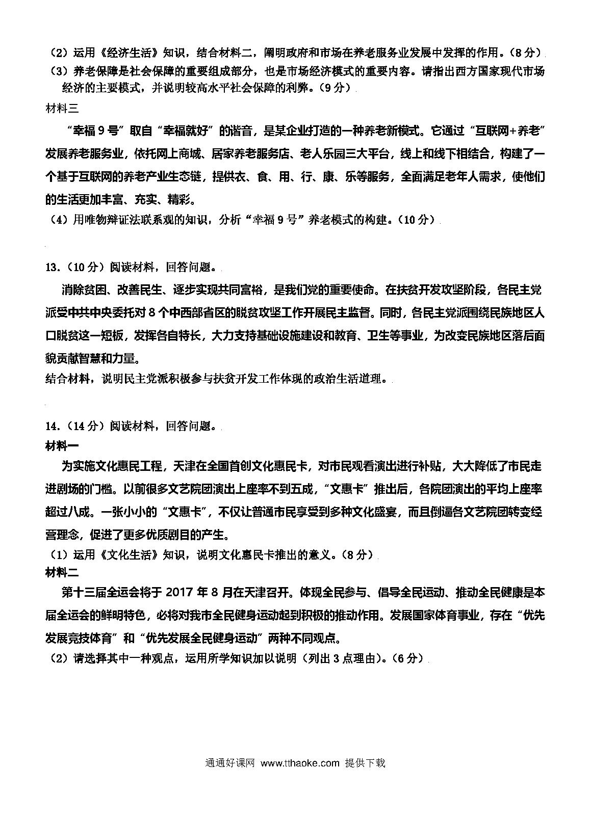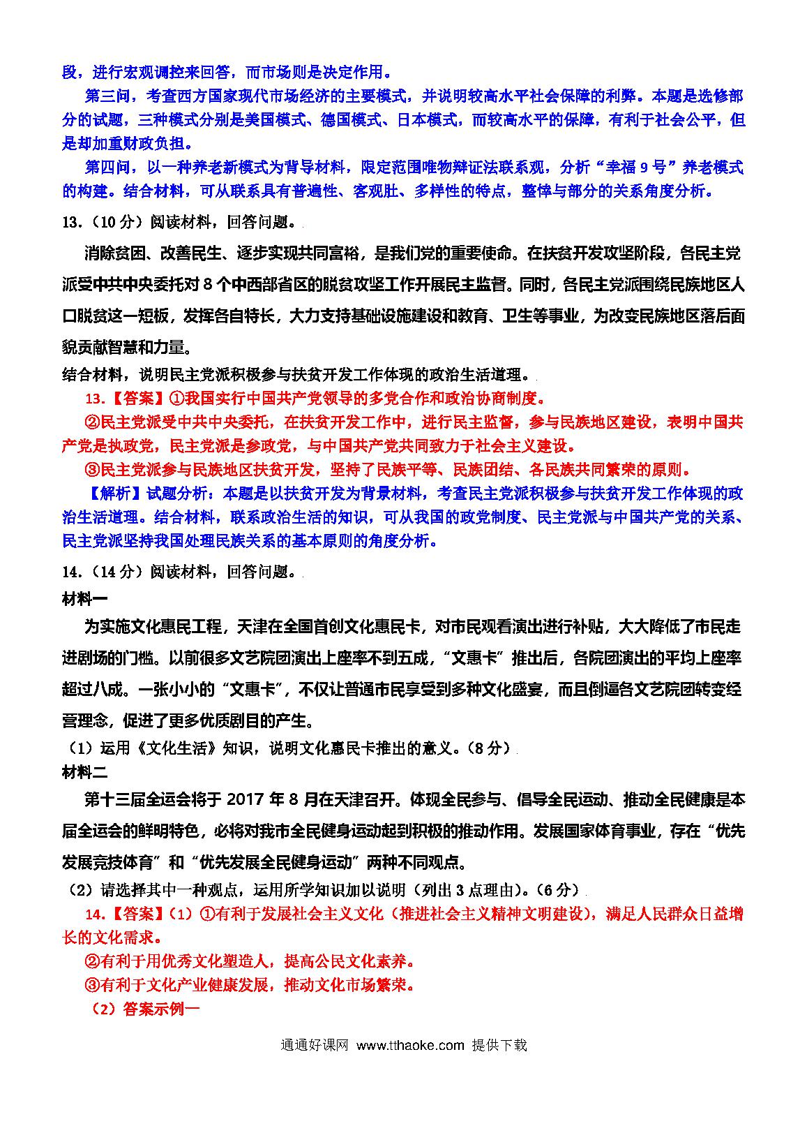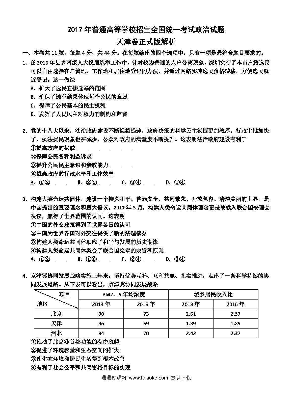 2017年高考试题(天津卷)文综政治(word答案).pdf