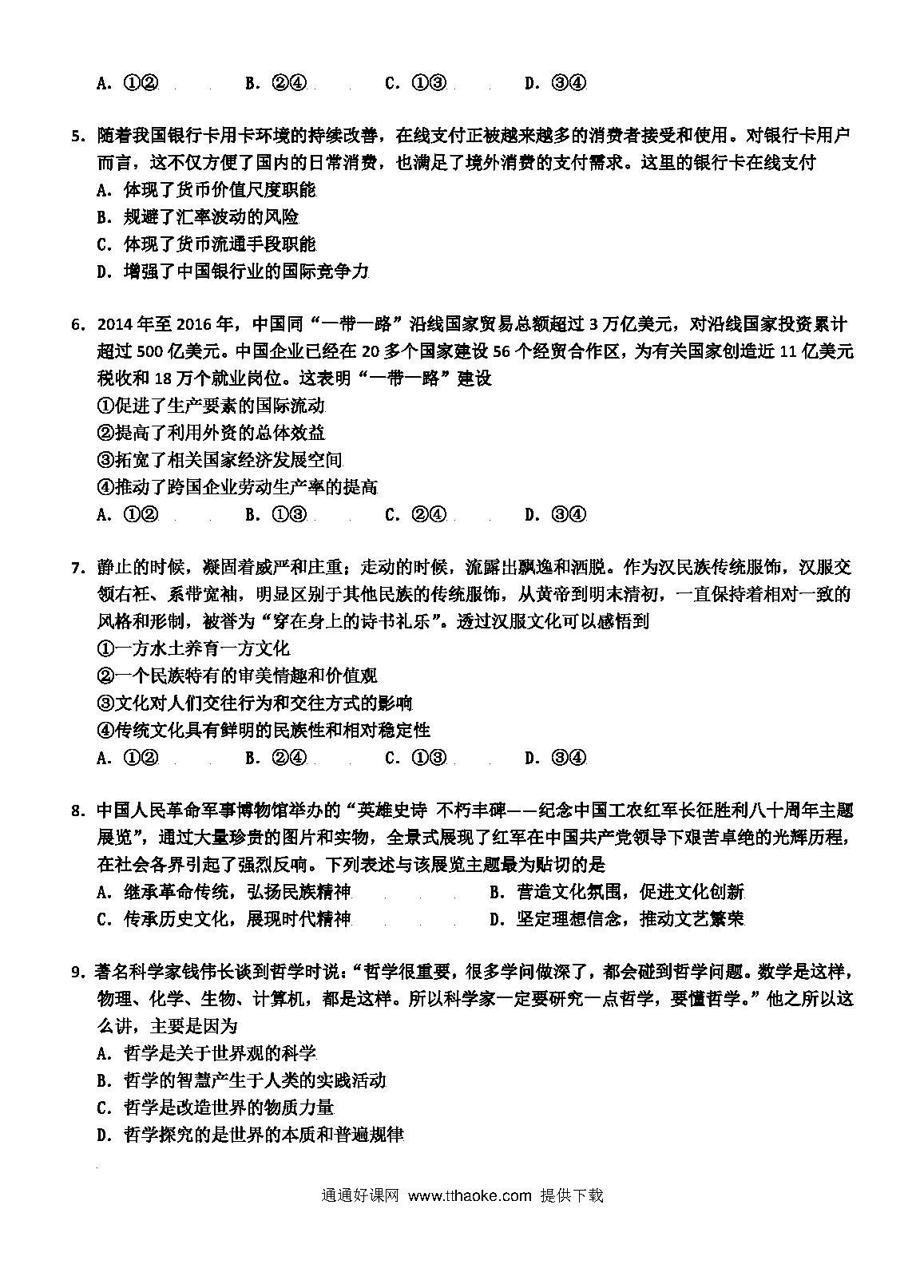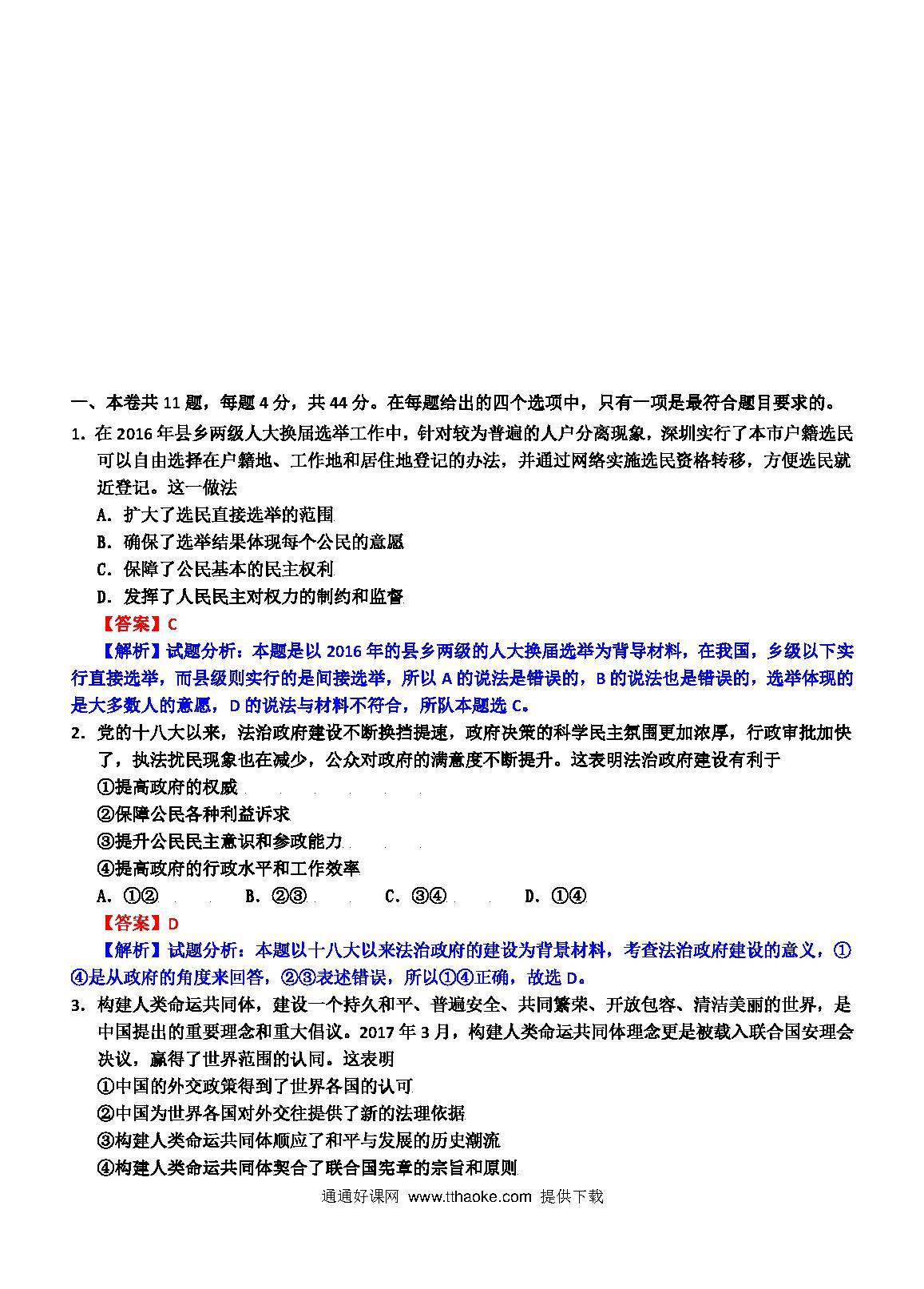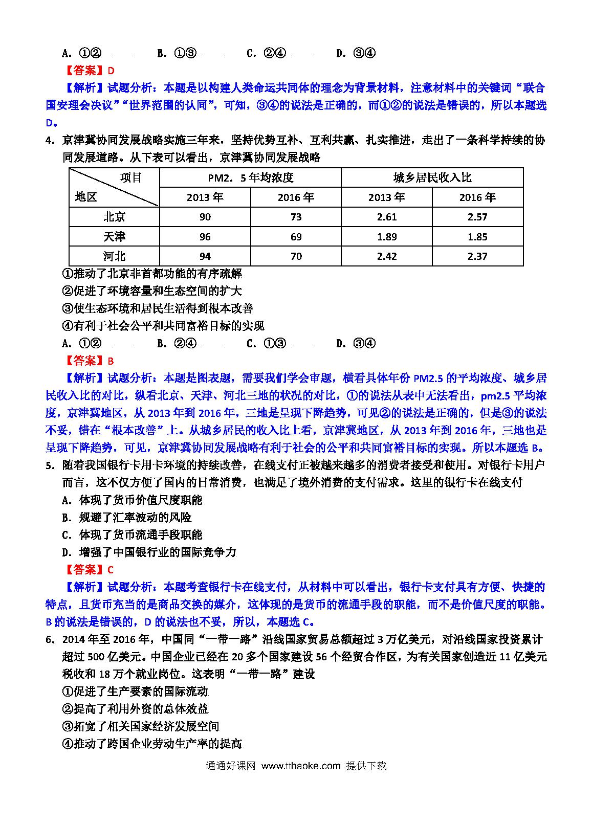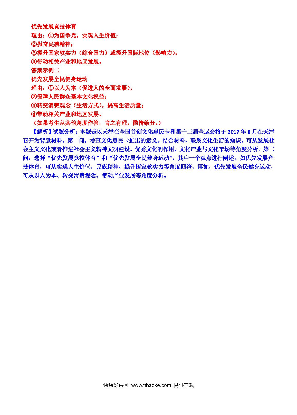 2017年高考试题(天津卷)文综政治(word答案).pdf