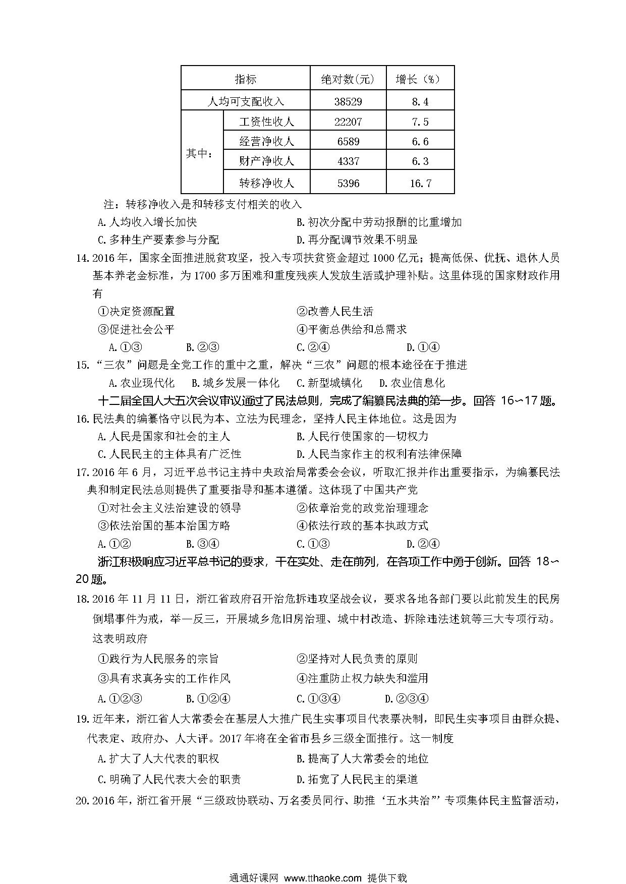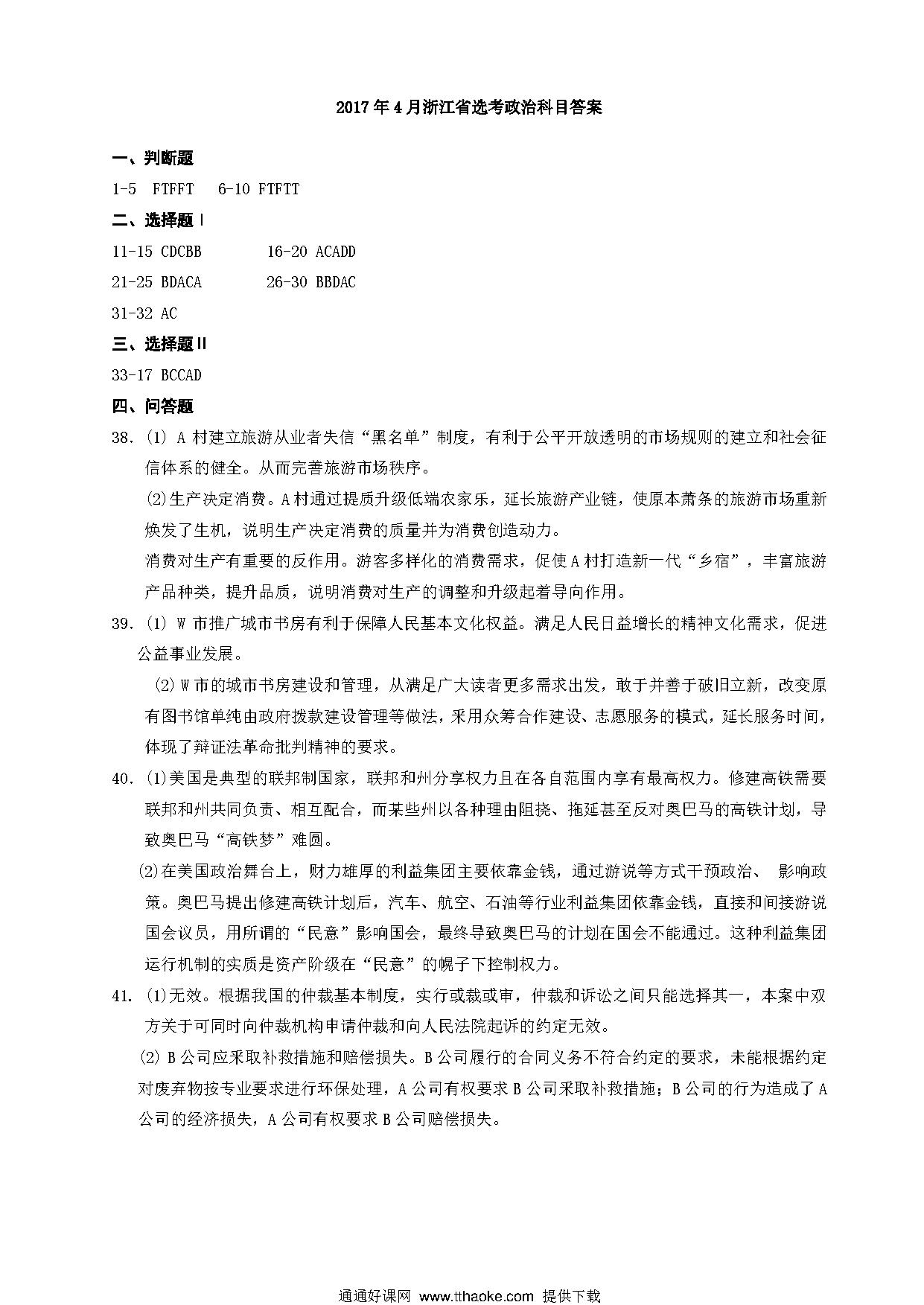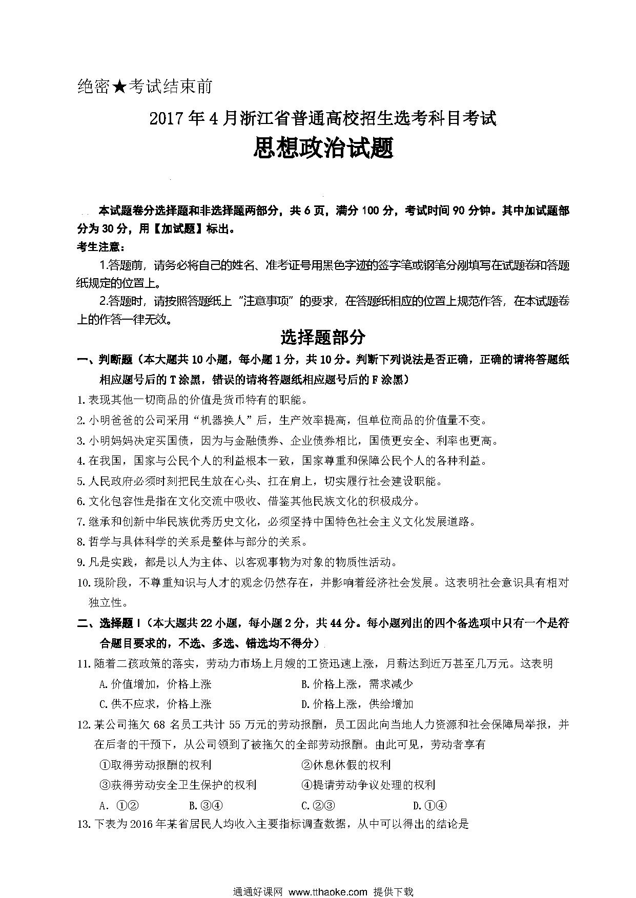 2017年4月浙江省选考政治试卷(含答案).pdf
