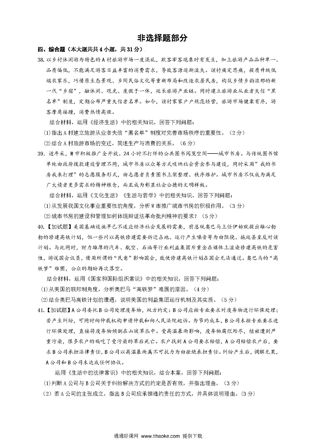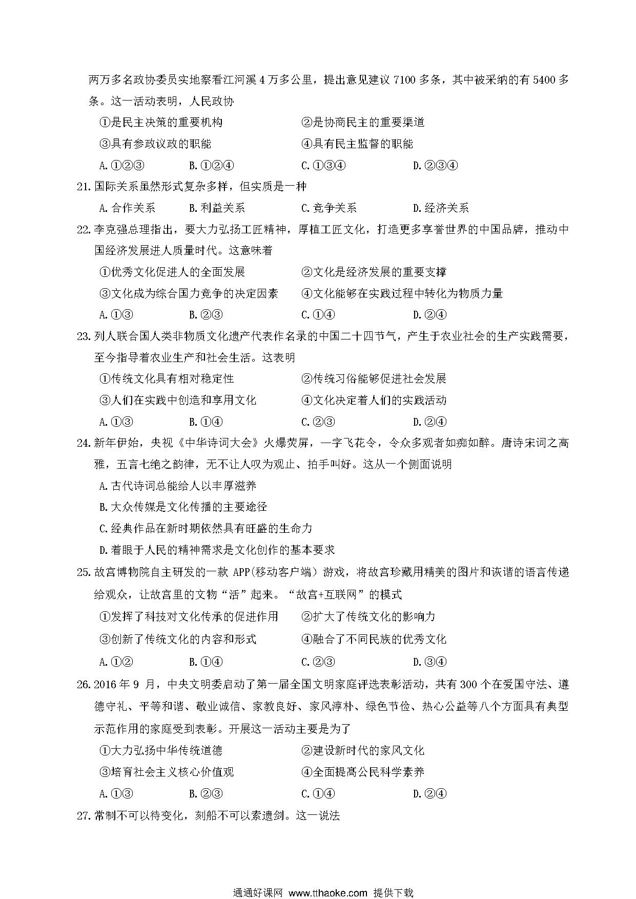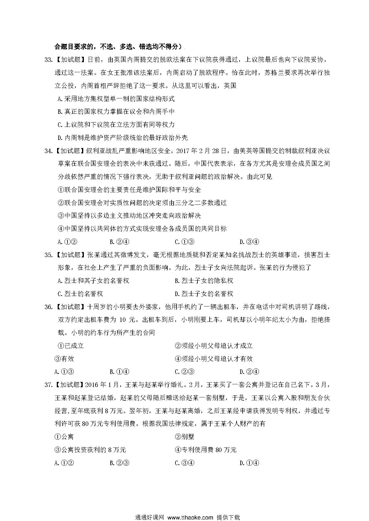 2017年4月浙江省选考政治试卷(含答案).pdf