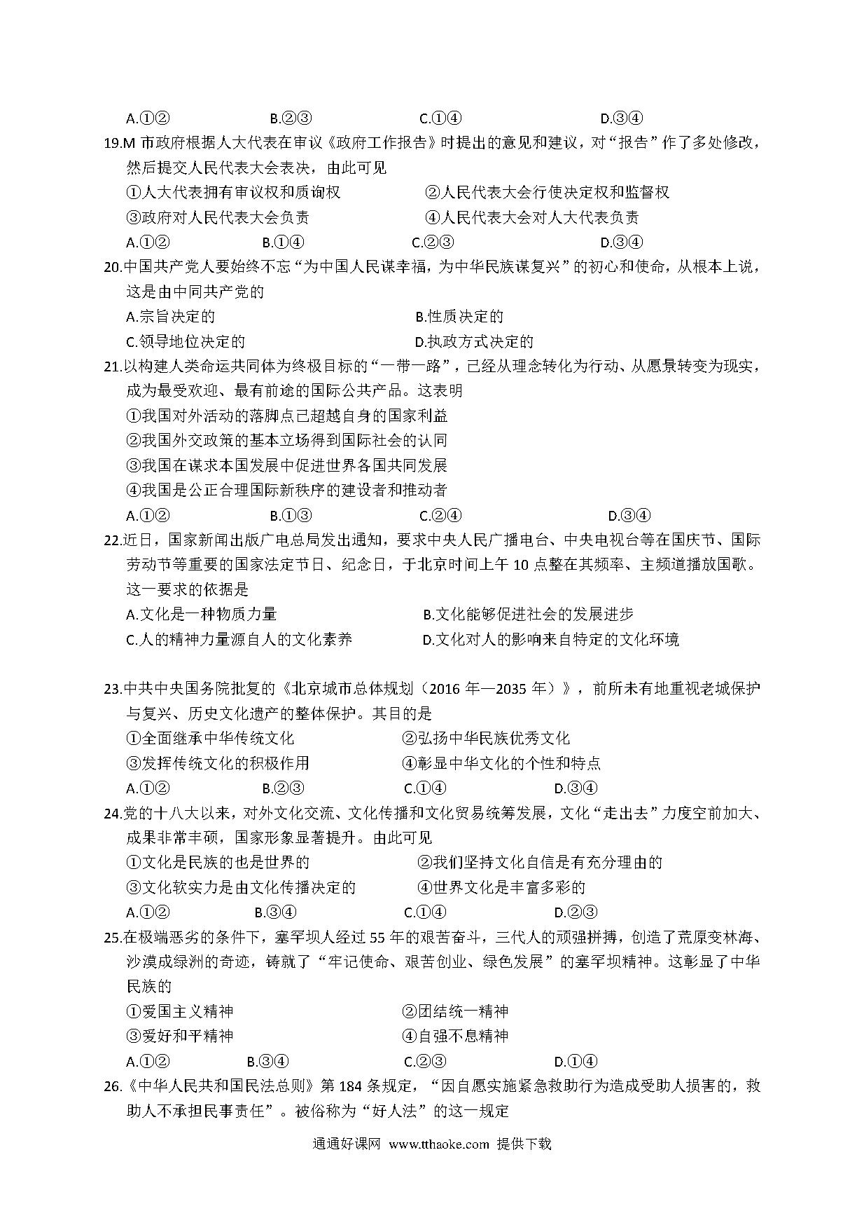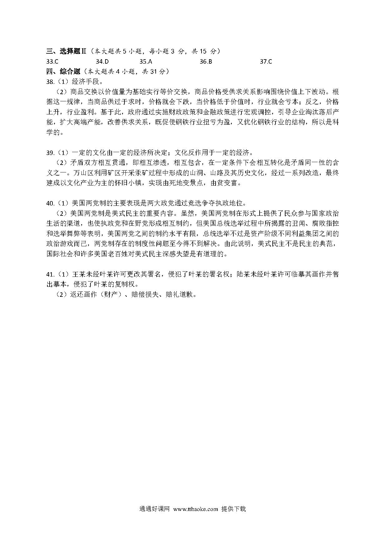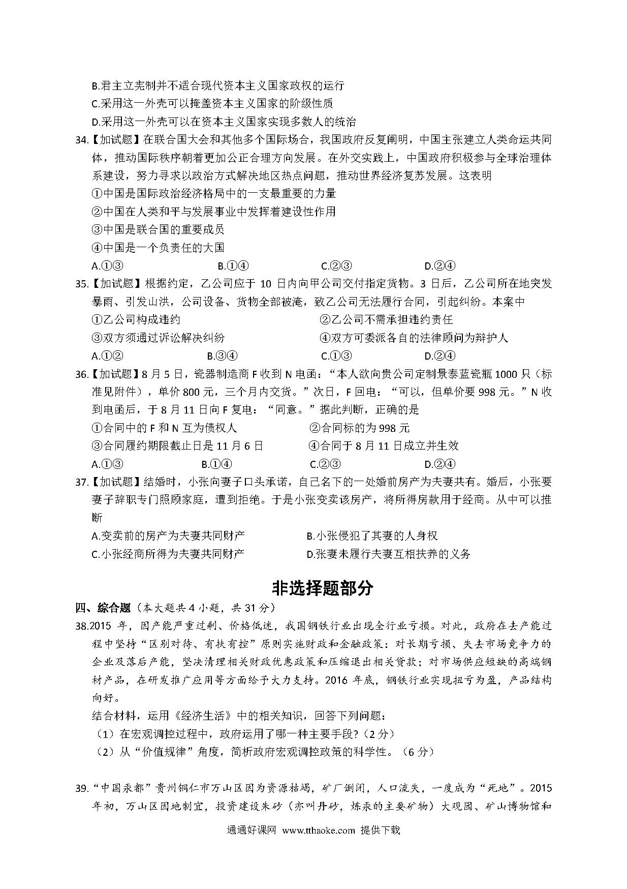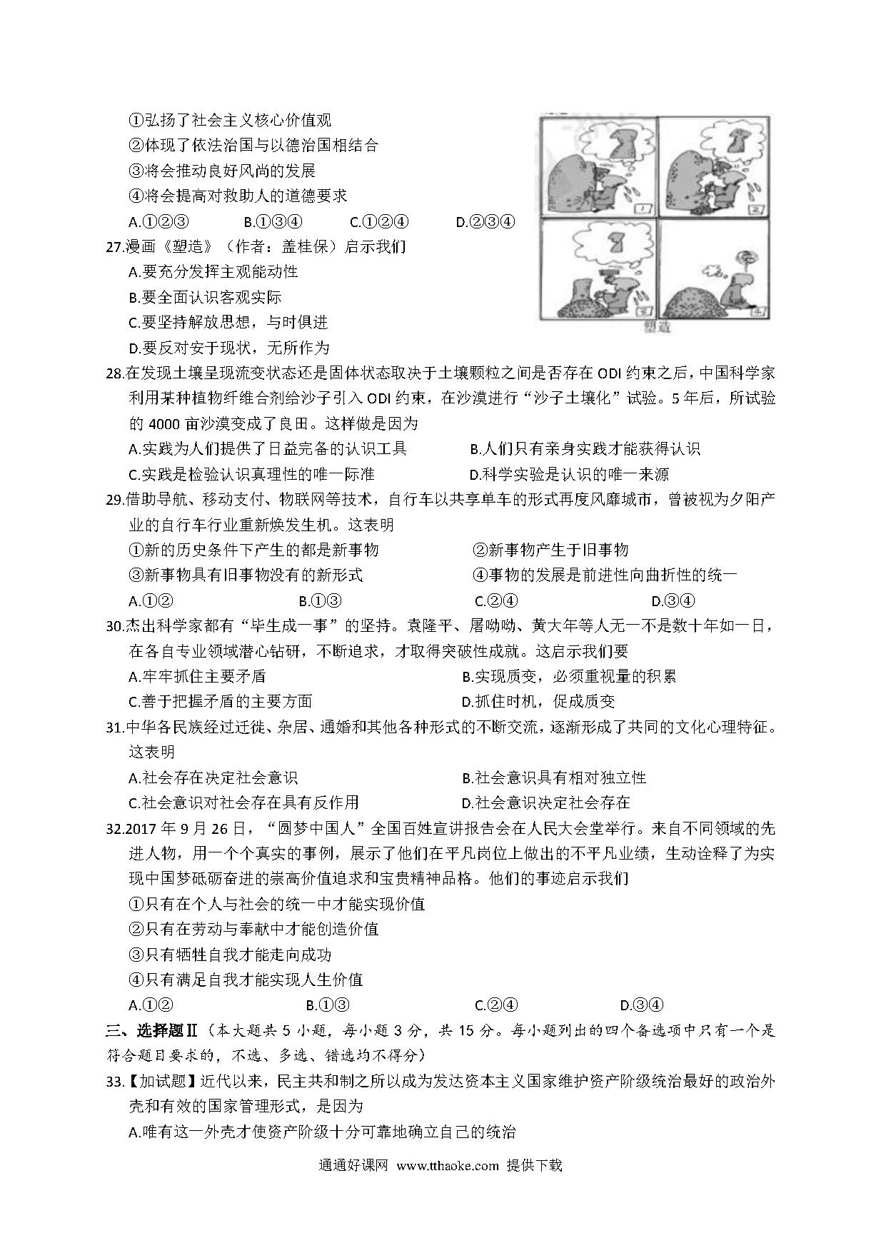 2017年11月浙江省选考政治试卷(含答案).pdf