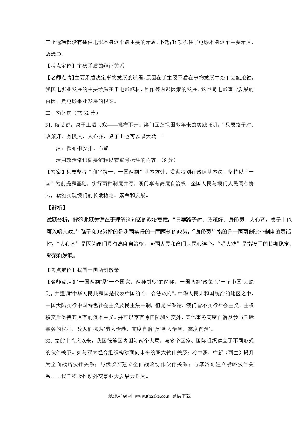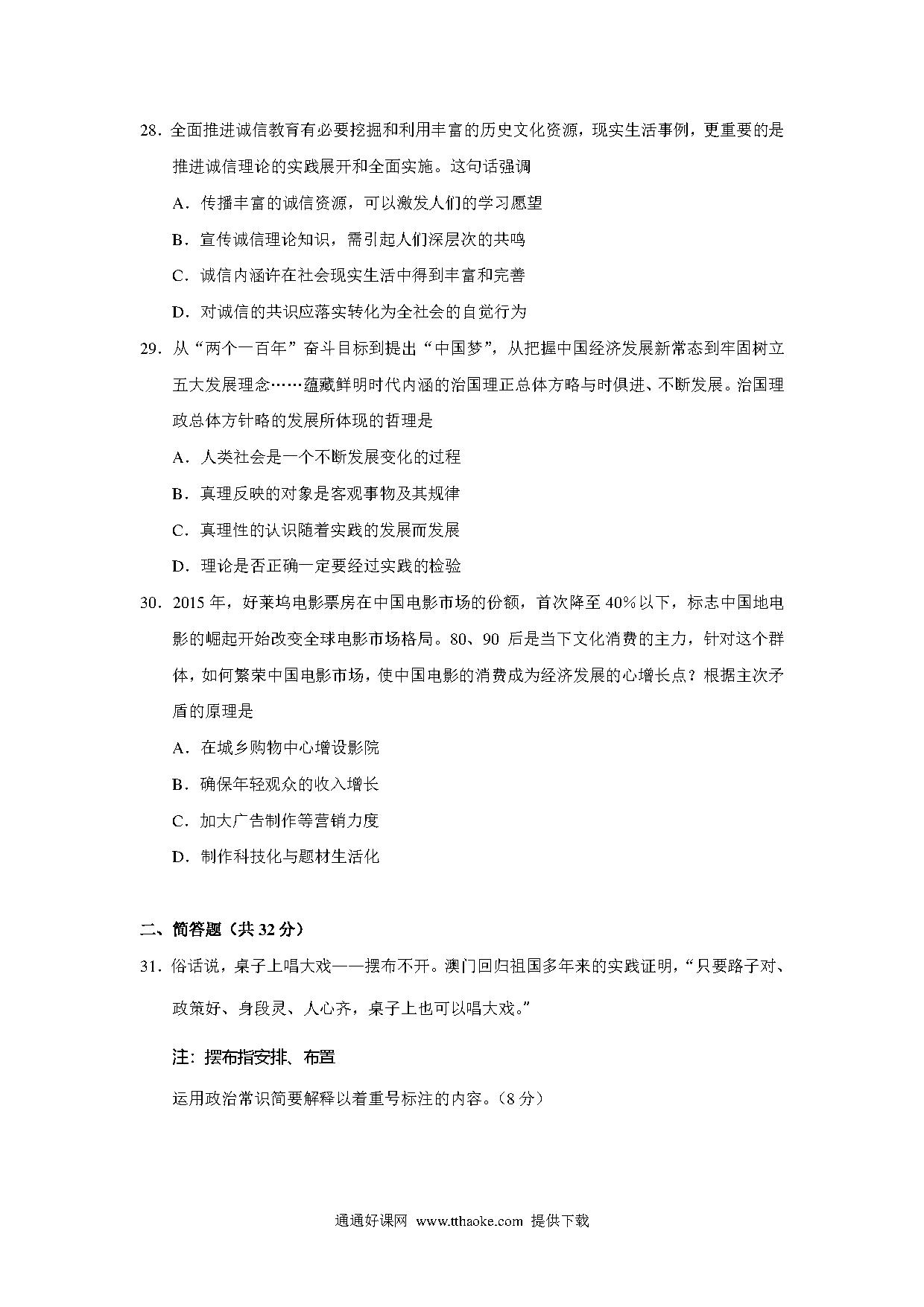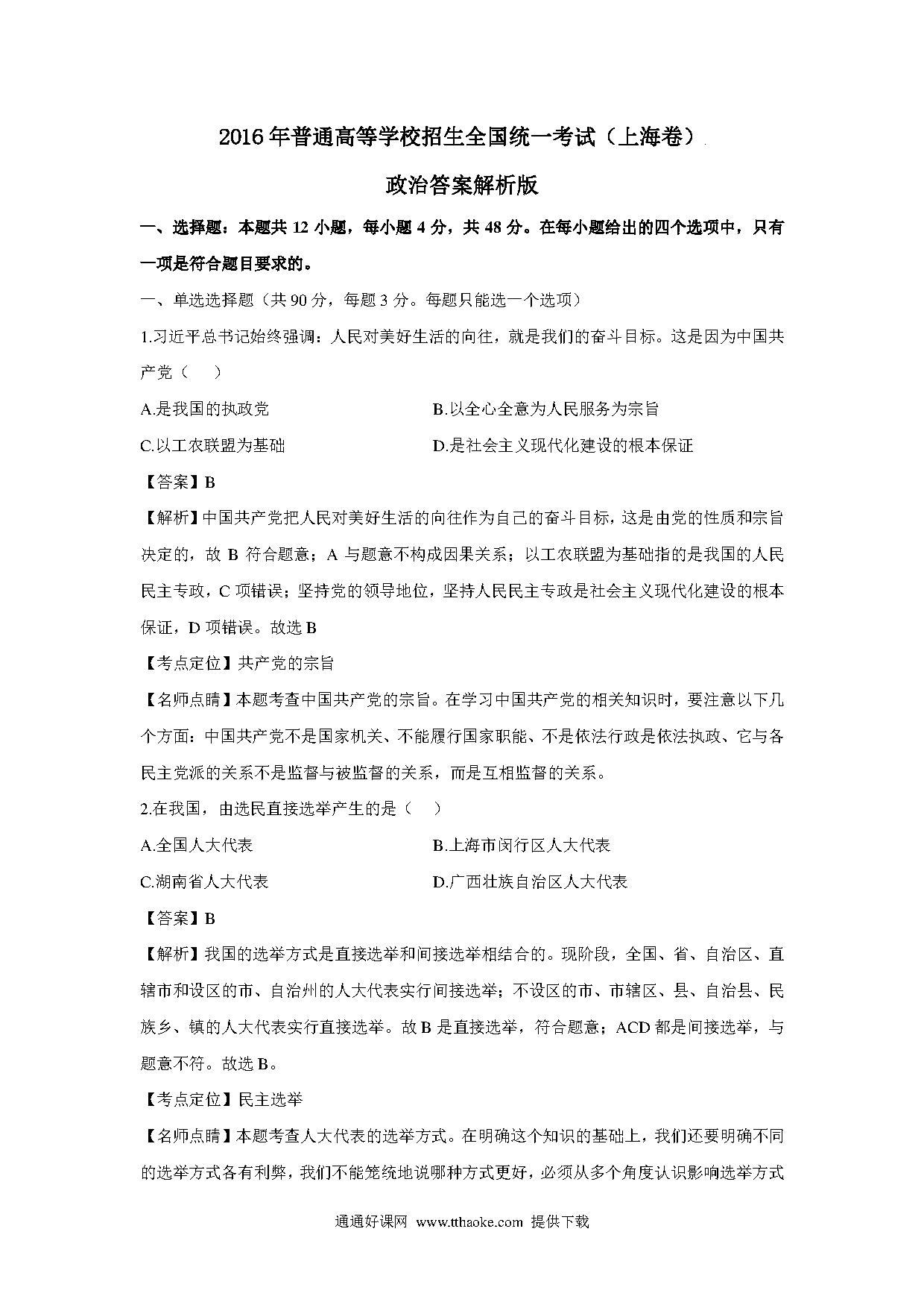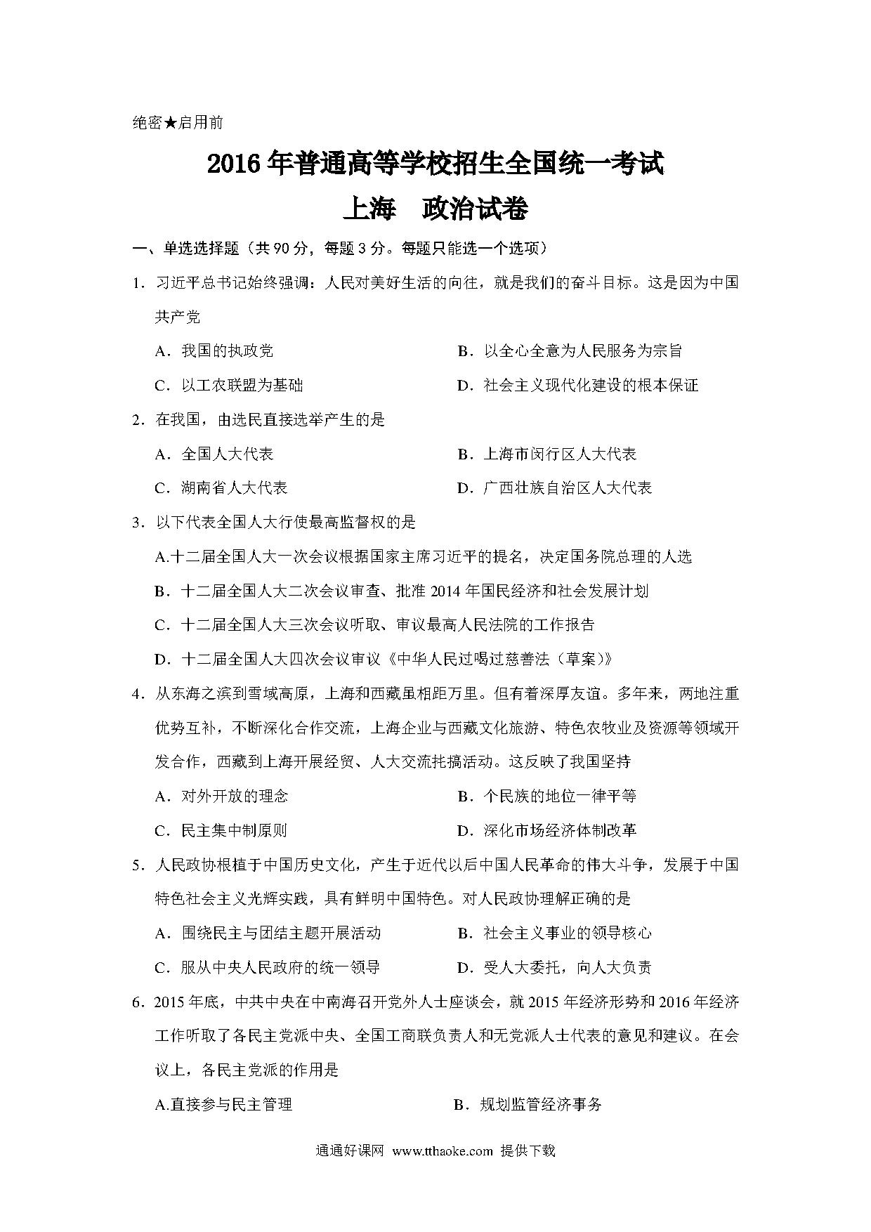 2016年上海市高中毕业统一学业考试政治试卷(word解析版).pdf
