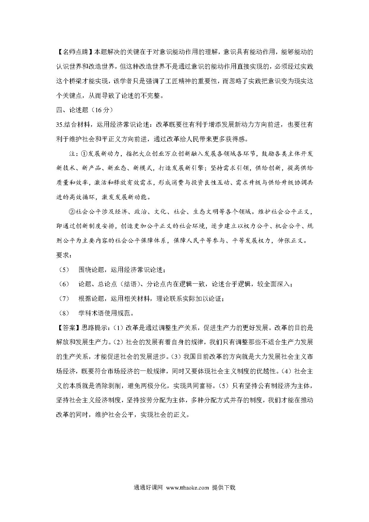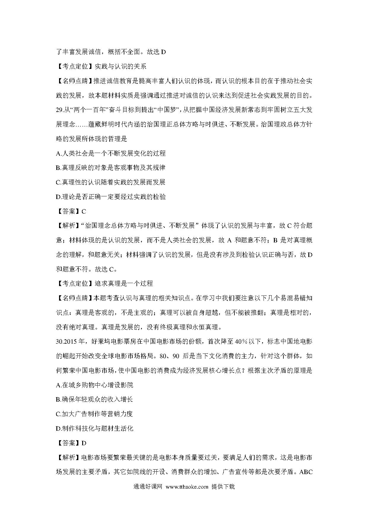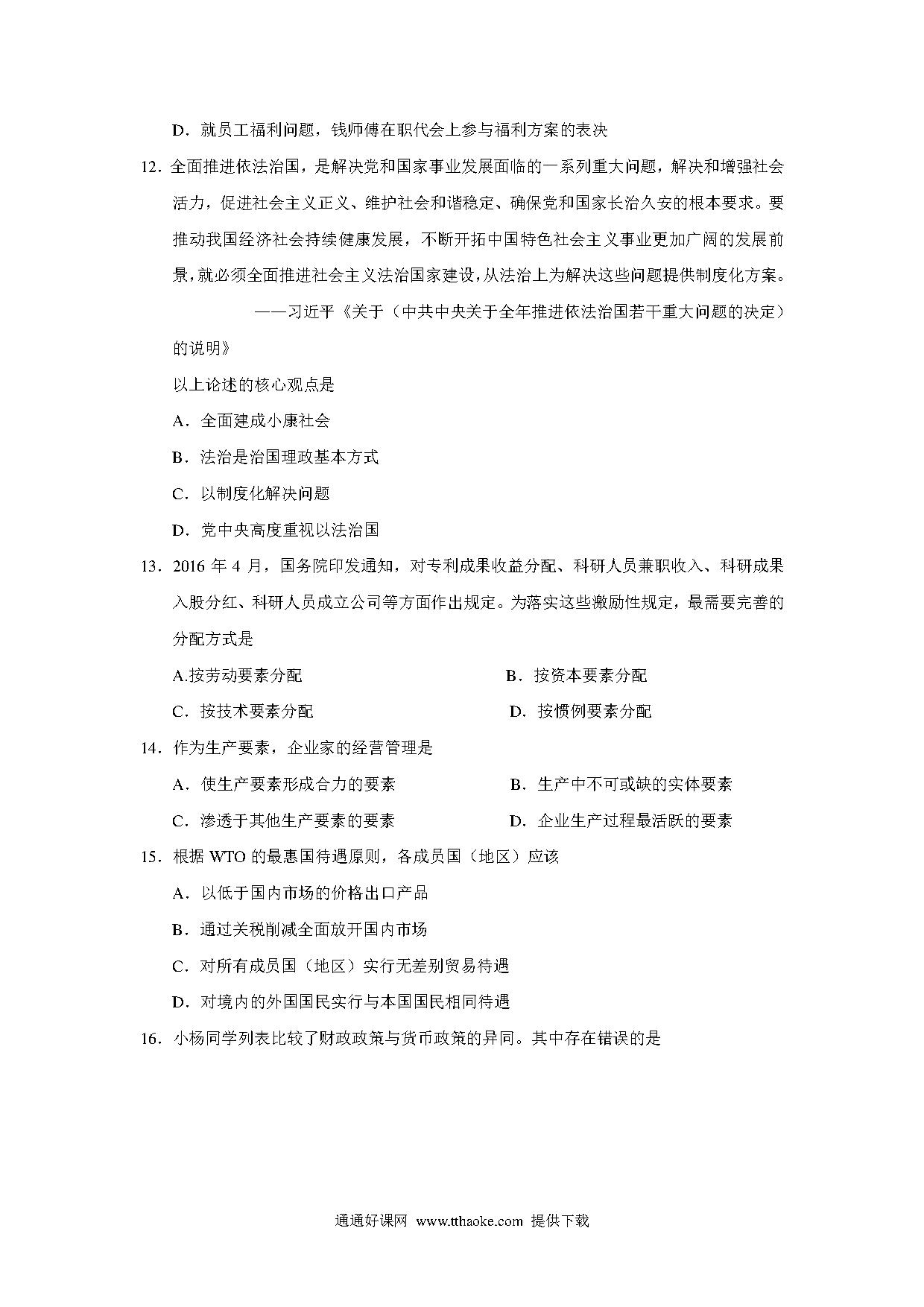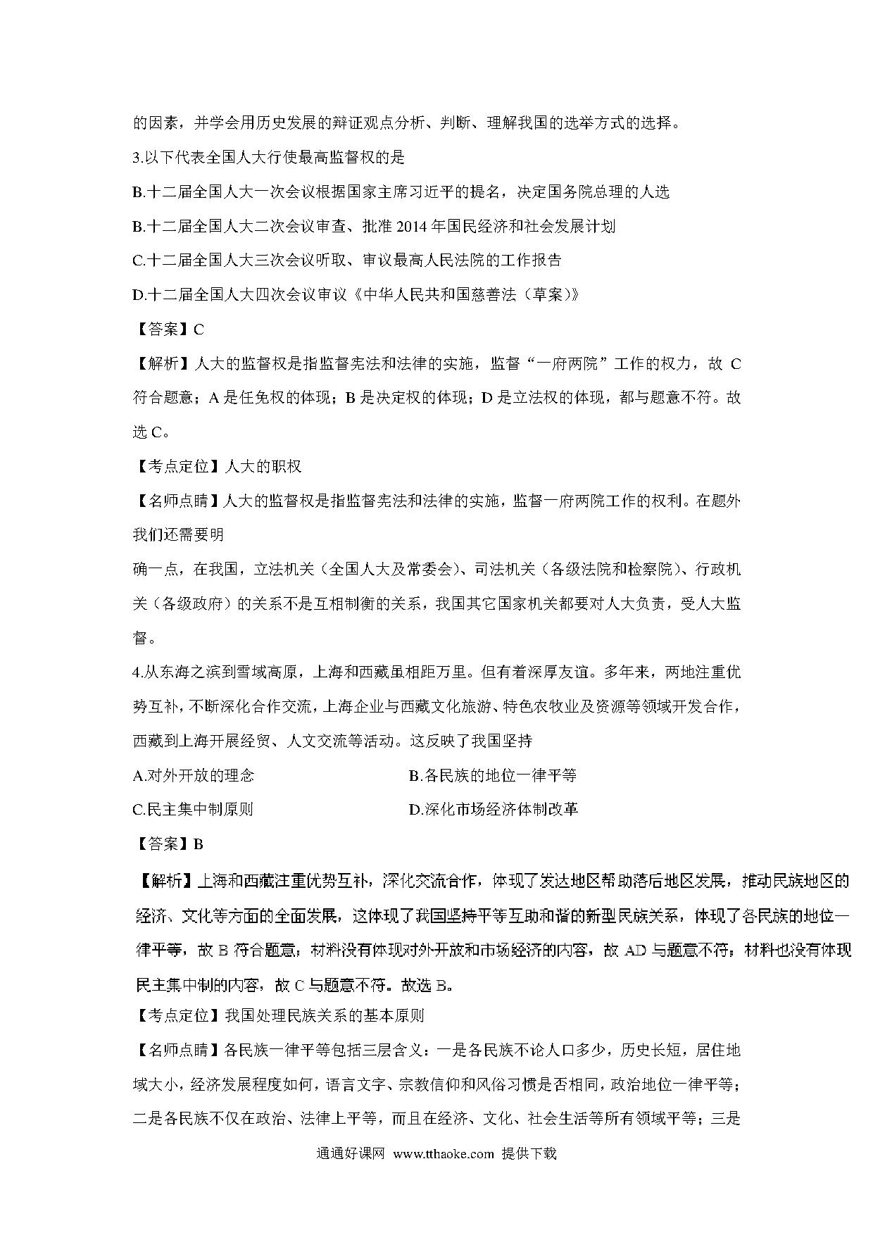 2016年上海市高中毕业统一学业考试政治试卷(word解析版).pdf