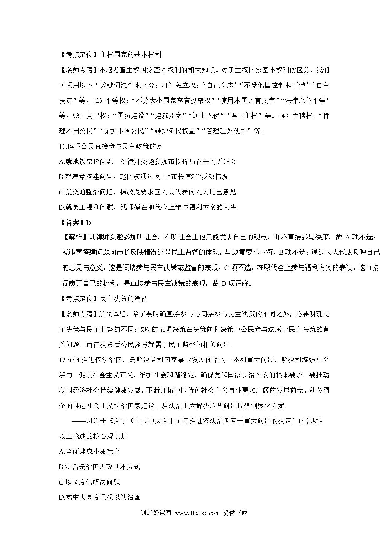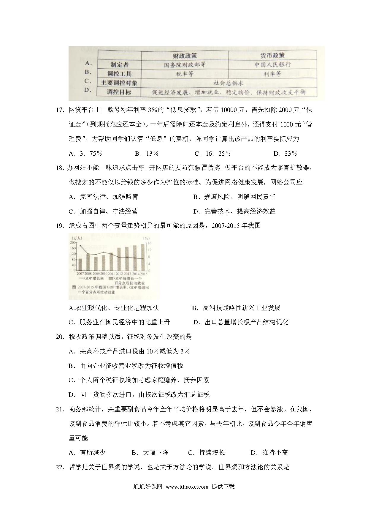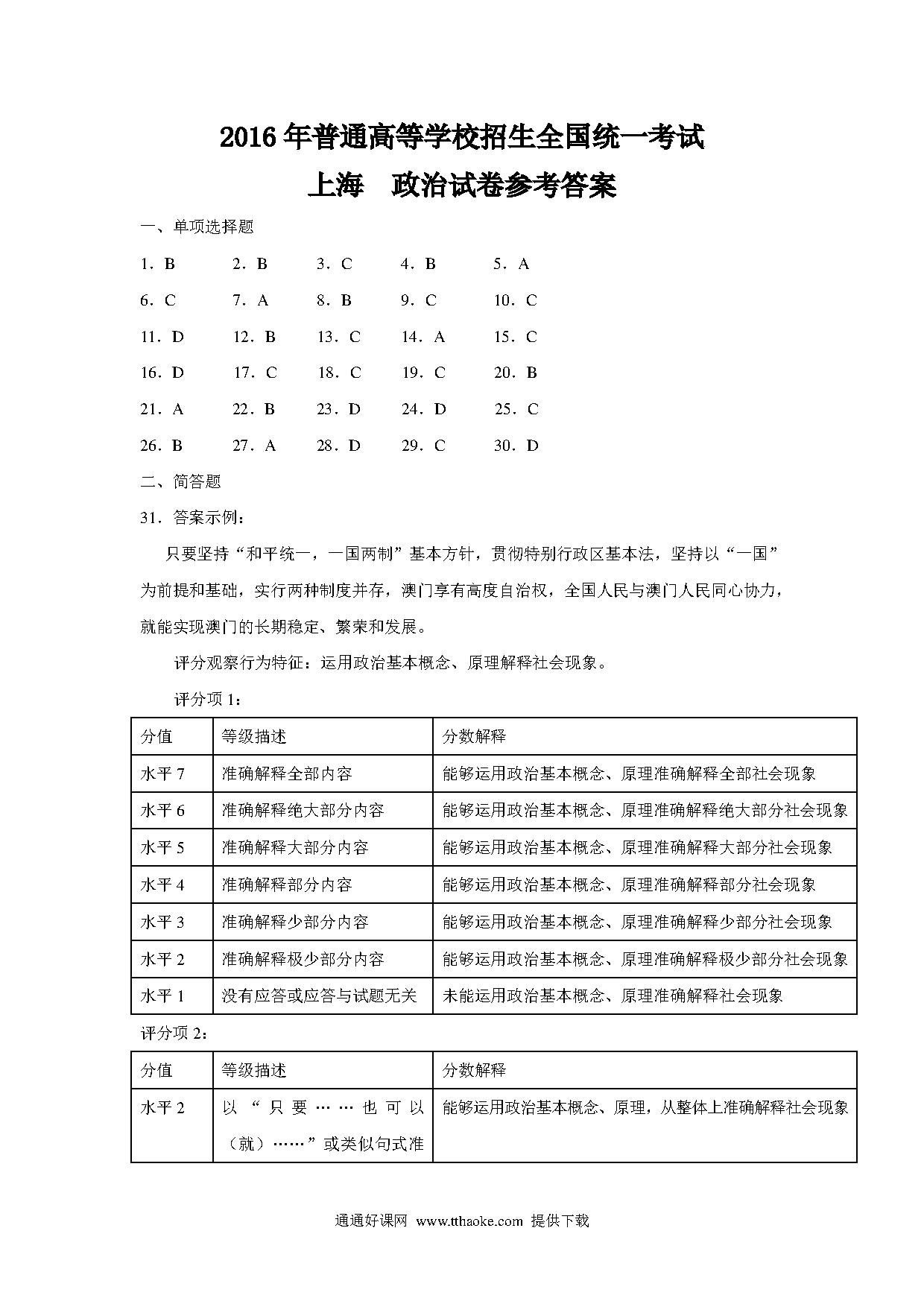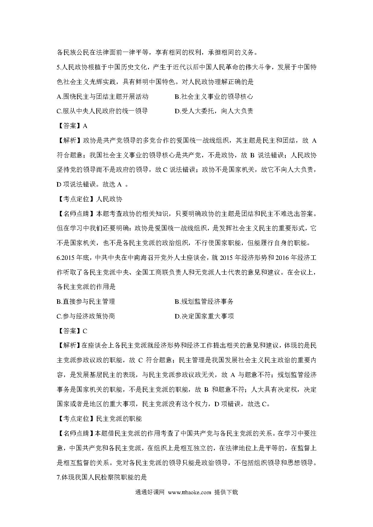 2016年上海市高中毕业统一学业考试政治试卷(word解析版).pdf