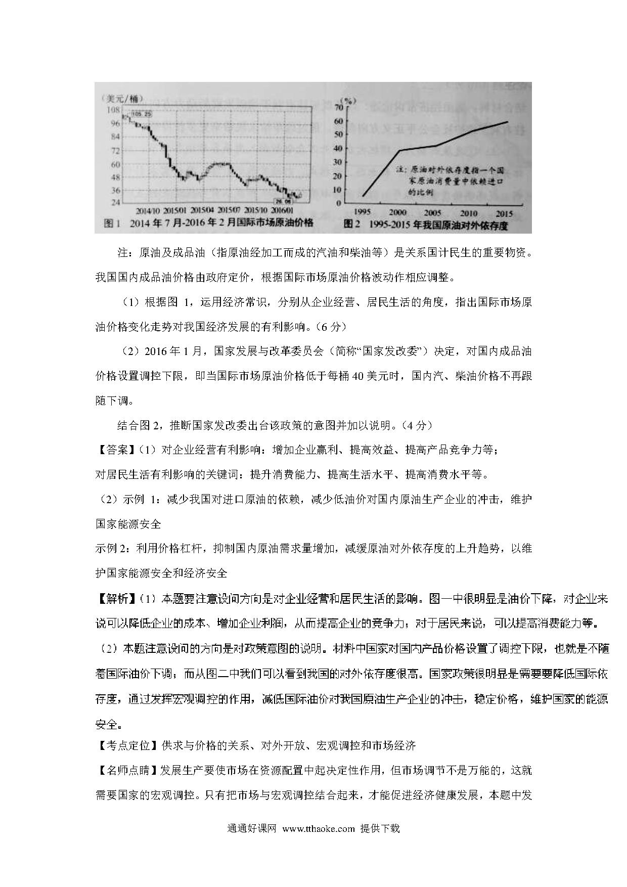 2016年上海市高中毕业统一学业考试政治试卷(word解析版)