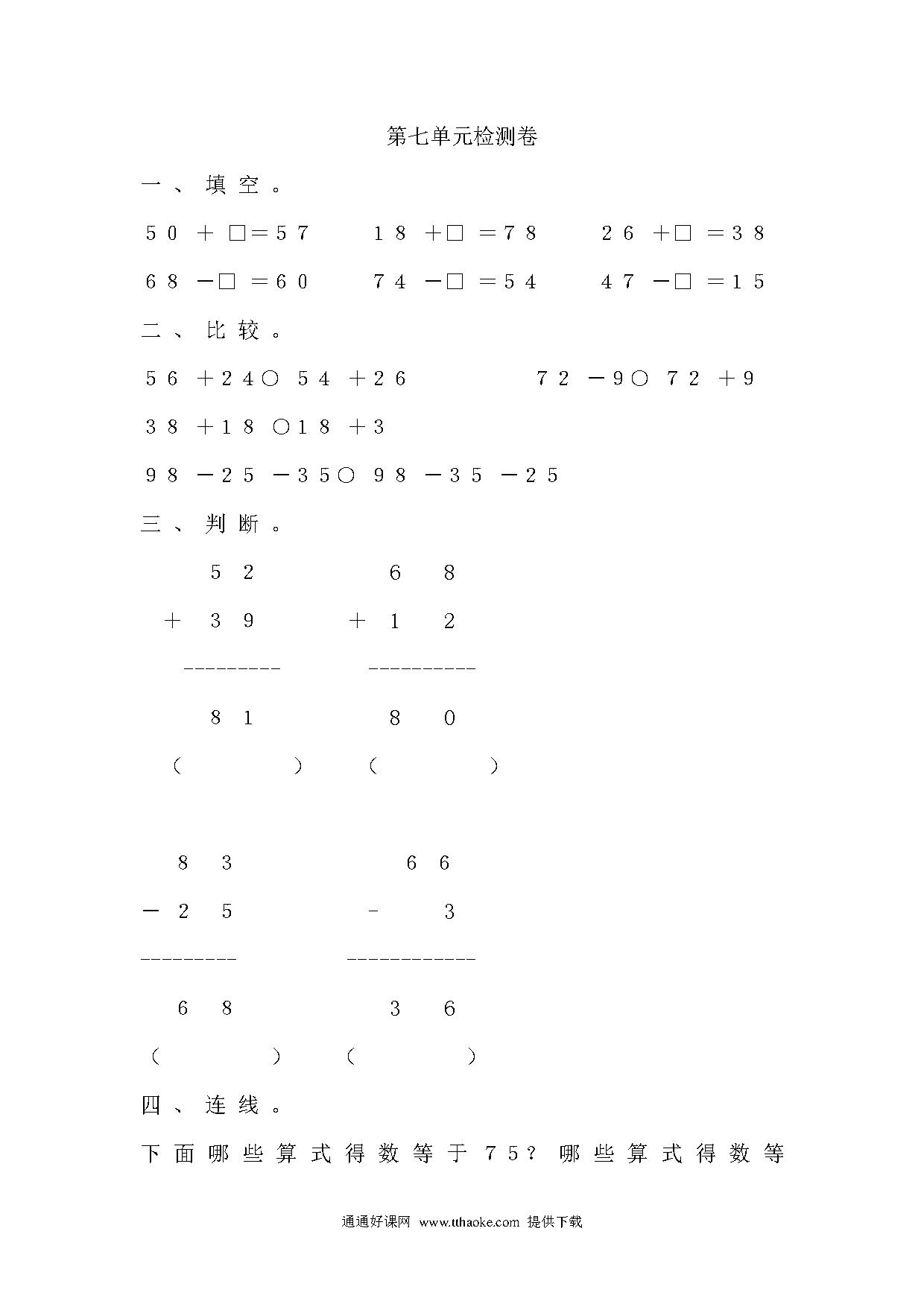 人教版一年级数学下册思维训练题免费下载打印