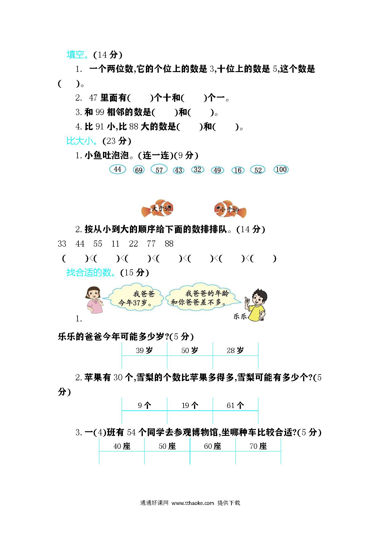 2023年苏教版一年级数学下册期末测试卷可下载打印(附答案)