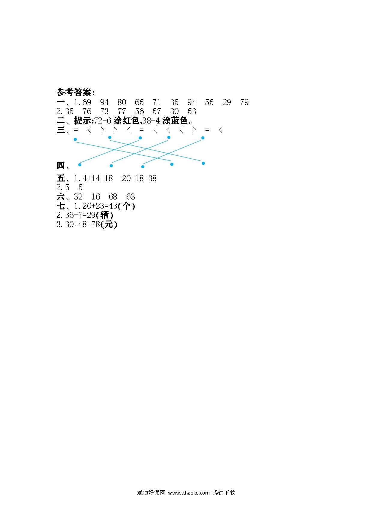 2023人教版一年级数学下册期末综合复习题免费下载打印(附答案)